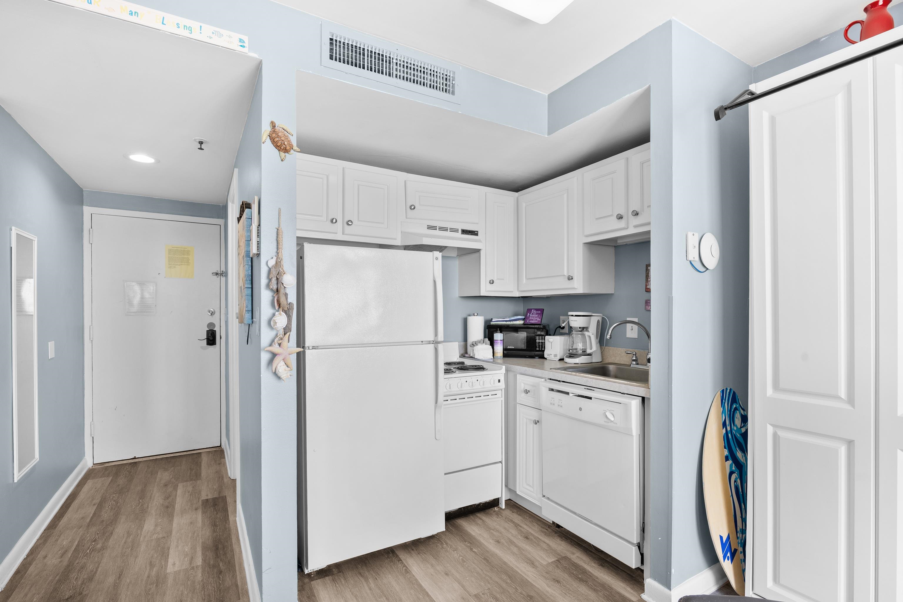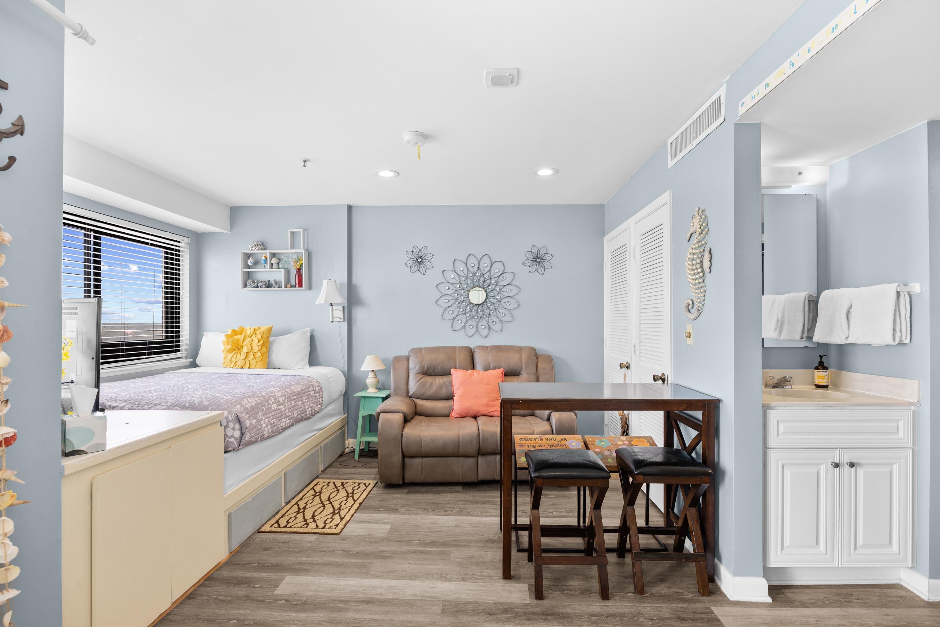 Enjoy stunning ocean views from this beautifully furnished 10th floor efficiency unit in the gated community at the Myrtle Beach Resort. This well maintained unit features two beds and a full kitchen complete with refrigerator and stove--perfect for personal use and rental income. With a good rental history already in place, this property is an excellent investment opportunity or beach getaway. Myrtle Beach Resorts offers an impressive array of amenities including indoor and outdoor pools, lazy river, splash pad, fitness centers, steam room and sauna, tennis courts, bocce ball, pickleball courts, a playground and more. On-site you'll find shops, oceanfront bar and grill with volleyball courts. Ideally located just minutes from dining, golf courses, shopping and entertainment--this is coastal living at its best.