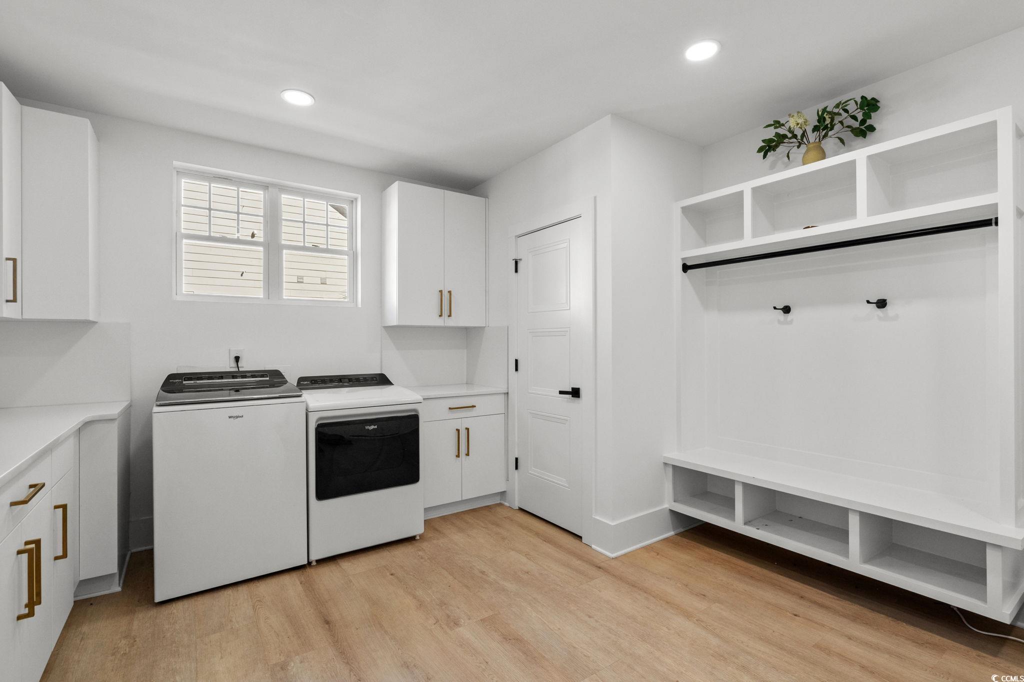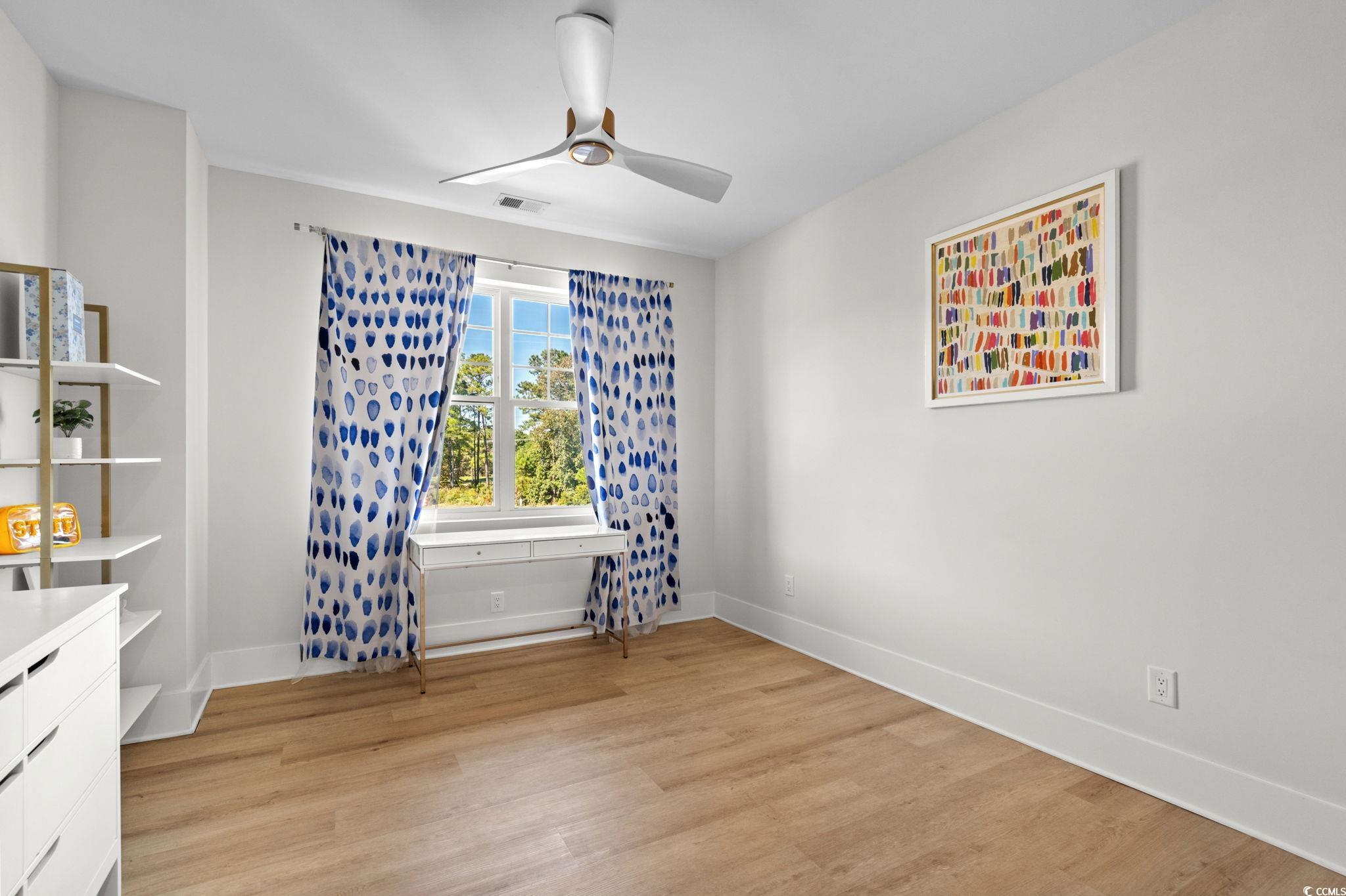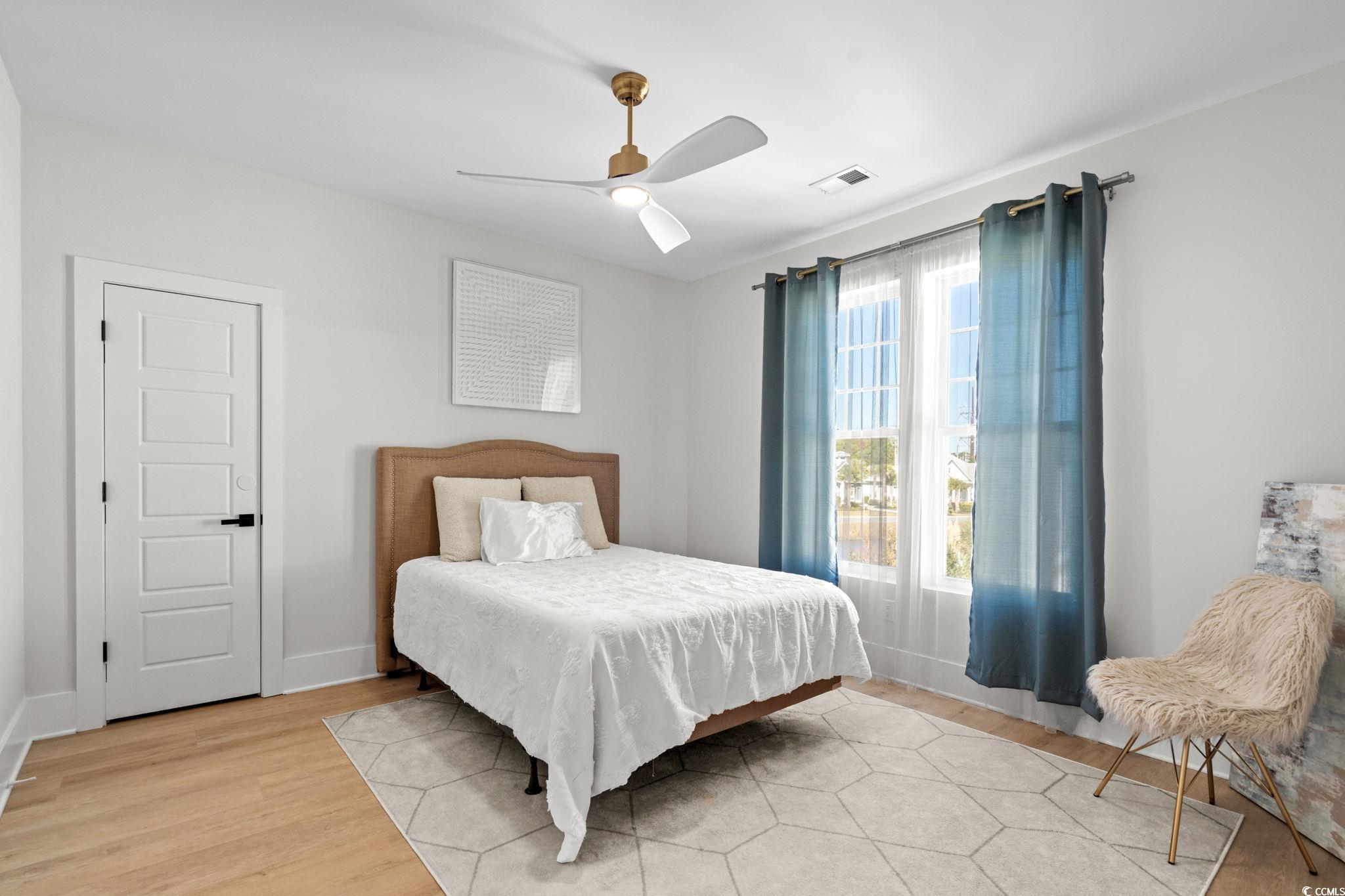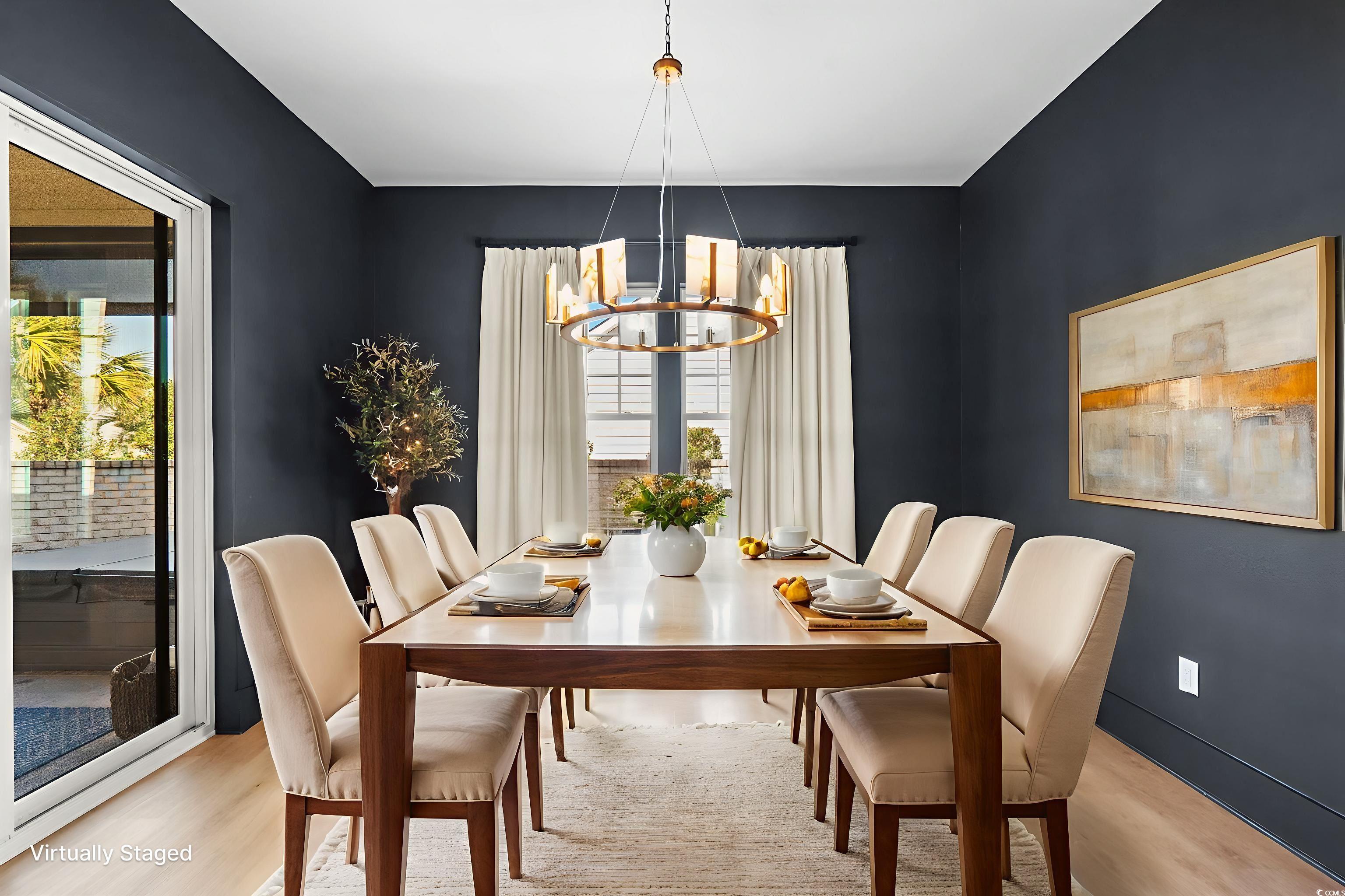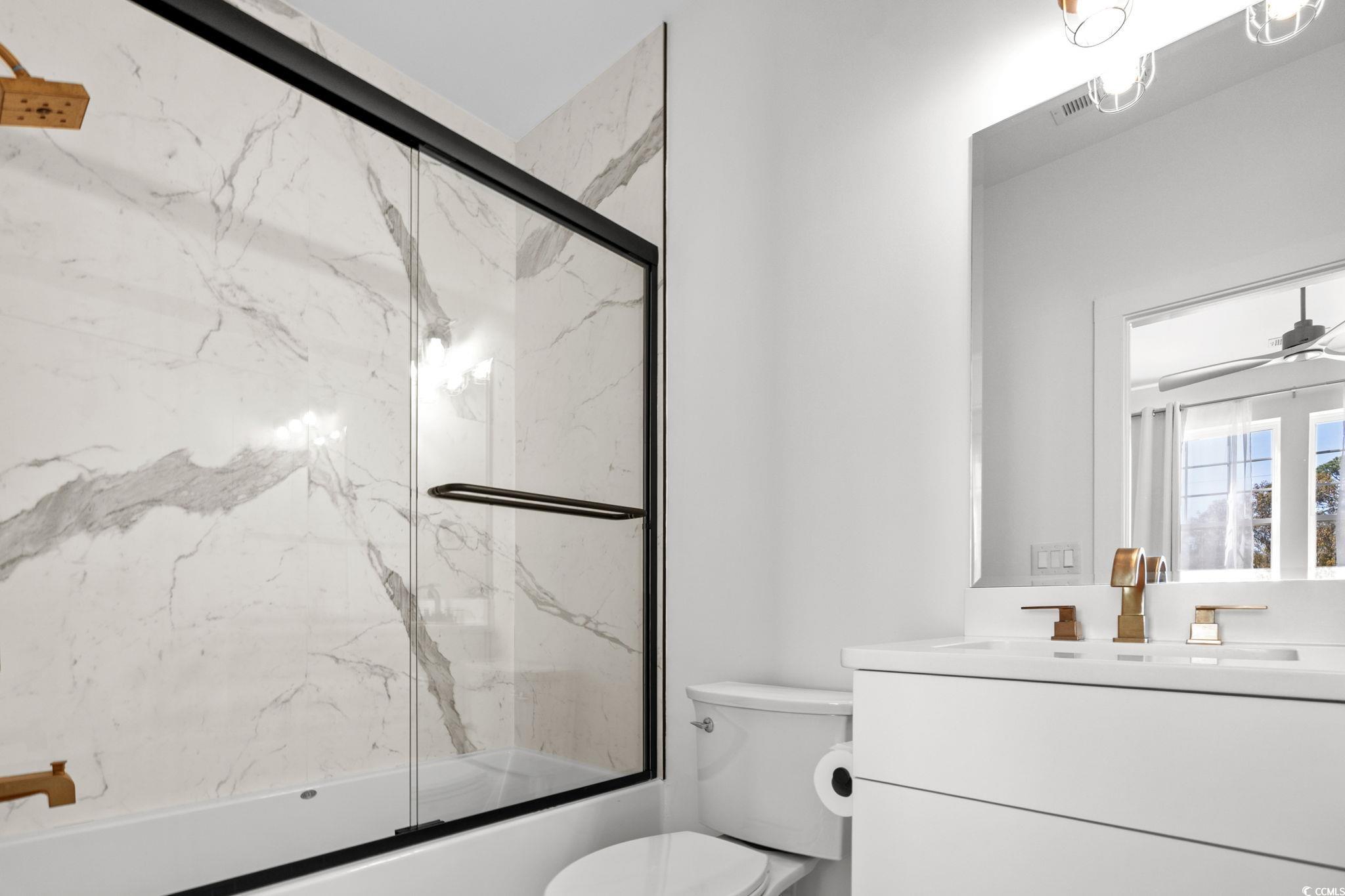 Situated in the prestigious and historic Pine Lakes Country Club, this custom-built residence blends timeless architecture with modern sophistication. Every detail reflects quality craftsmanship, from the soaring ceilings and expansive windows to the marble fireplace that anchors the grand living area. The designer kitchen is both striking and functional, featuring sleek white cabinetry, quartz countertops, and a bold navy island accented with gold hardware. Professional-grade stainless appliances, double ovens, a pot filler, and a walk-in pantry create the perfect balance between elegance and practicality. The primary suite on the main level offers a tranquil retreat with a spa-inspired bath, freestanding tub, spacious shower, and dual vanities. Upstairs, four additional bedrooms and three full baths provide comfort and flexibility. The fifth bedroom is exceptionally large, allowing for a private living area, home theater, fitness space, or multi-use room. The covered patio opens to a beautifully landscaped yard, ideal for relaxing or entertaining. Located minutes from the beach, fine dining, shopping, and entertainment, this home embodies the best of luxury living in one of Myrtle Beach’s most distinguished communities.