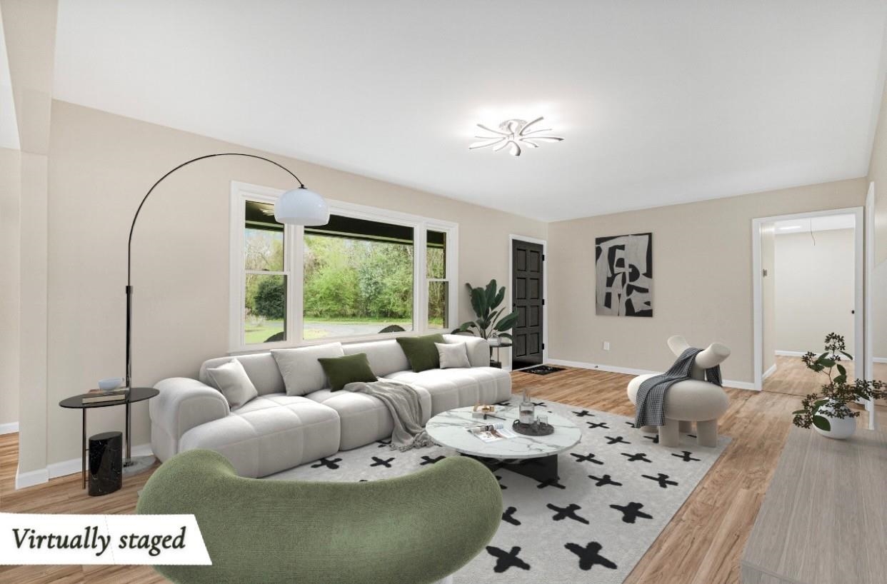 This stunning 3-bedroom, 2-bath home has been completely remodeled from top to bottom and is move-in ready! With a recently installed roof and HVAC in 2025 and a hot water heater from 2022, all the major systems are practically brand new. As you step inside, you are greeted by a bright living room with a triple front window accent that fills the space with natural light. The living room flows seamlessly into the kitchen, creating a welcoming space for gatherings and everyday living. The kitchen features a stainless-steel Frigidaire stove and dishwasher, a deep stainless-steel sink, two-tone quartz countertops, an oversized island, easy-close cabinetry, PVC backsplash that is water and heat-proof, pendant lighting, and a double window overlooking the front yard. The family room offers an electric fireplace, an oversized closet with a barn door, and a sliding glass door leading to the patio, perfect for indoor-outdoor living. New pan lights brighten the space, and there's plenty of storage throughout. The laundry room features washer and dryer hookups and extra cabinets for storage. The master suite is a private retreat with an oversized closet featuring plenty of shelving and rod hangers, and a master bath with a vanity and a tiled shower with built-in storage. The hallway bathroom is a decently sized full bath with a vanity and a tub/shower combo, providing ample space for family or guests. The two additional bedrooms include spacious closets. The home also includes a full-length attic with lighting for extra storage and a garage with a new garage door and secondary entry into the home. Luxury laminate flooring runs throughout the entire home, tying the spaces together and adding a modern, cohesive feel. This home has been given extraordinary care and attention to detail, making it truly move-in ready. Don't miss your chance to own this beautifully remodeled home that blends modern updates with comfort and functionality!