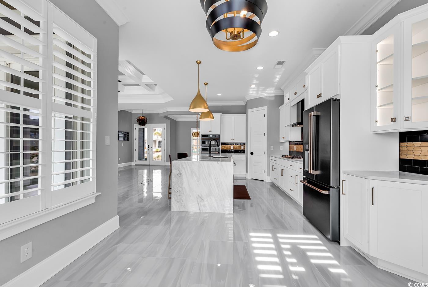 Immaculate low country custom build home located within the gated Waterside Point community in Del Webb Grande Dunes. This one is almost 4000 square feet under roof and situated perfectly on an oversized corner lot. In mint condition, and offering 3 br plus 2.5 bath and office as well as an amazing theater room with leather recliners and an impressive Sonos sound system, this home combines all the upgrades, modern luxury with functional design, making it perfect for both entertaining and everyday living. Step into an open floor plan featuring coffered ceilings, porcelain tile, a spacious family room with a stunning fireplace, a dream kitchen with plenty of cabinets, a waterfall island, gas cooktop and special matte black appliances. Outside you can relax on the covered porch, entertain guests and family or just chill and watch the sunrise on most any day. Make sure this one is on your list to view, you will be impressed. Residents of Waterside Edge enjoy access to Del Webb’s world-class amenities, including an indoor heated pool, a resort-style outdoor pool, a full-time activities director, pickleball, tennis courts, bocce ball courts, a fitness center, a fire pit, walking trails, and day docks for fishing or boating. Lawn care is also included. Grande Dunes is a 2,200-acre, amenity-rich development offering lifestyle opportunities unrivaled in the market. Owners enjoy exclusive access to the exquisite Ocean Club, featuring fine dining, oceanfront pools, meeting rooms, beach amenities, and spaces for events. The community also offers two prestigious 18-hole golf courses—the public Resort Course and the semi-private Members Club, designed by Nick Price. Other notable features include a 126-slip deep-water marina and a state-of-the-art Har-Tru tennis facility. Grande Dunes is conveniently located in Myrtle Beach, just minutes from shopping, dining, and the Grand Strand Medical Center. Come live the Grande Dunes lifestyle! Contact the listing agent for more information and to schedule a viewing.