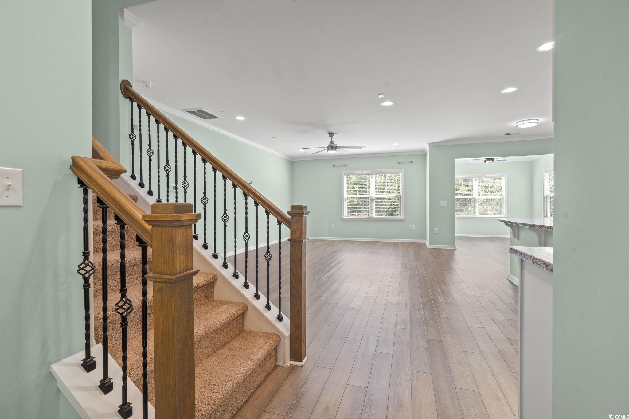 This turn-key, move-in ready two-story home offers thoughtfully designed living spaces and all of the upgrades you've been searching for, including brand new flooring and carpeting! Seller added all options for the largest Hartwell offered with the 4-foot Great Room extension and added sunroom. Freshly painted with brand-new carpet in the primary suite, this home combines comfort, style, and modern convenience in every room. Step through the foyer into a flexible front room with elegant French doors – perfect as a private office or study. Crown molding flows throughout the entire main level, adding a polished touch. A convenient half bath, coat closet, and spacious laundry room are tucked just off the hallway. The expansive living room has been extended four feet beyond the original builder's design and is pre-wired for surround sound – creating an inviting, open space perfect for entertaining or relaxing. It seamlessly connects to the dining area, kitchen, and a stunning added sunroom filled with natural light. The kitchen boasts ample cabinetry, a large island, walk-in pantry, and an electric range (with a gas line already in place if preferred). Smart thermostats are integrated into the home's security system, allowing you to control comfort and peace of mind with ease. Tucked away on the main floor is a spacious primary bedroom with a private bath – boasting a double sink vanity, linen closet, large walk-in closet, and a 5ft custom step-in shower. Upstairs, you'll find two additional bedrooms, a full bath, and a generously sized family room offering flexibility for a game room, media space, or second living area. Both of the bedrooms are pre-wired with indoor speakers, perfect for a private listening space or home theater setup. Outside, enjoy a 12x12 patio, a 4-zone WiFi-enabled irrigation system on its own water meter with two additional hose spigots, and a driveway that has been widened by two feet on each side, providing extra parking and ease of use. The home is also equipped with a whole-house gas-powered generator connected wirelessly for peace of mind, a whole-house surge protector, a tankless gas water heater, and a Healthy Climate Carbon Clean Filtration HVAC system for superior indoor air quality (A/C is electric, heat is gas). The garage features a wireless opener for modern convenience, and glass panels to convert the garage into another entertaining space. Whether you're looking for functionality, technology, or beautifully finished spaces, this home delivers it all. Be sure to ask your agent for the full list of upgrades – this is a rare opportunity to own a home that checks every box! Measurements are not guaranteed. Buyer is responsible for verifying.