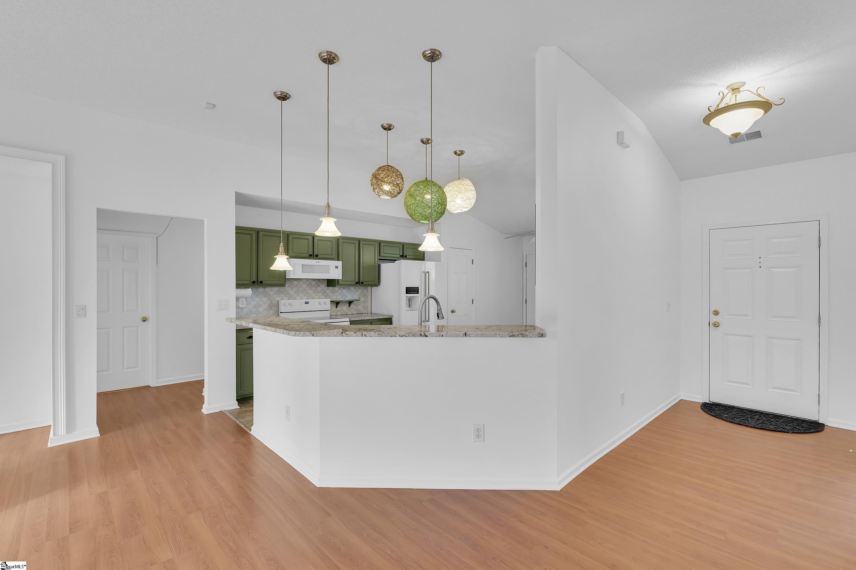 Revis Falls in Simpsonville, SC offers the perfect blend of convenience and quiet living—just minutes from Five Forks, the shopping and dining along Woodruff Road, and the business corridors off Highway 101. This nearly 2,000 sq. ft. ranch home sits at the end of a cul-de-sac, providing privacy and minimal traffic. Inside, you’ll find a spacious primary suite featuring an en-suite bathroom and a generous walk-in closet. The living room offers a cozy wood-burning fireplace, large windows with views of the fenced-in backyard, and direct access to the patio. The updated kitchen includes matching white appliances, a high bar for casual dining, and a bright breakfast nook. In addition to two secondary bedrooms and a guest bathroom, the home includes a versatile office/den with a closet—ideal for work, hobbies, or additional guest space. Recent owner updates include new carpet throughout, fresh interior paint, and a brand-new washer and dryer that convey with the sale. An extra-long driveway leads to the spacious two-car garage. Lovingly maintained and move-in ready, this home is a wonderful opportunity for today’s buyer.