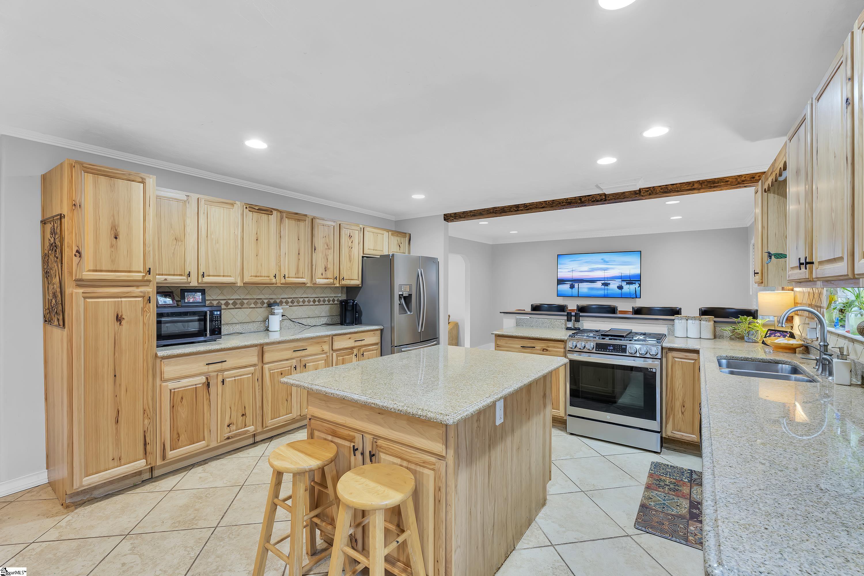 Tucked into the established and peaceful Northwood Hills community, this home offers the kind of lifestyle buyers are searching for, like quiet evenings, space to spread out, and unbeatable convenience to some of the Upstate's most loved destinations. Located just minutes from charming Downtown Travelers Rest, Furman University, and Downtown Greenville, you can enjoy coffee shops, restaurants, trails, and entertainment, then come home to a neighborhood that feels calm, established, and welcoming. Backing to spacious private land, the backyard offers an added sense of privacy and a peaceful natural backdrop, where you can hear the crickets at night, take in the surrounding nature, and still enjoy clear views of the stars, all while being just minutes from everything Greenville and Travelers Rest have to offer. Set on over half an acre, this property gives you the kind of space that’s getting harder to find with room to breathe, spread out, and actually enjoy where you live. The fully fenced backyard is built for real life, whether that means dogs running laps, kids playing until sunset, or hosting friends without feeling crowded. The patio becomes a natural hangout spot for slow mornings, casual dinners, and evenings that stretch a little longer than planned. Up front, the wide driveway offers plenty of space for multiple vehicles, guests, or weekend toys without the daily shuffle. Inside, this home tells a story of flexibility, comfort, and opportunity. The split-level design creates natural separation while still feeling connected, making it ideal for multi-generational living, extended family, hobby space, or simply giving everyone room to breathe. Hardwood floors add warmth and character, while the updated kitchen and bathrooms blend modern convenience with timeless style. As you enter, a striking stone accent wall creates a welcoming focal point and sets the tone for the character you’ll find throughout the home. The kitchen offers granite countertops and abundant cabinetry, providing both beauty and functionality for everyday living and entertaining. Upstairs, one of the primary suites offers double closets and a full bath, along with two additional bedrooms and another full bathroom. The lower level expands the living possibilities with a large recreation or gathering space, perfect for movie nights, game days, hobbies, or hangout space. A second primary suite with a large walk-in closet and full bathroom makes an ideal private retreat for guests or multi-generational living. An additional bedroom and spacious walk-in laundry room add even more functionality. The lower level also features exterior access, allowing easy entry for guests, family members, or flexible living arrangements. This neighborhood also features a large saltwater pool and clubhouse, along with walkable streets that make everyday living both convenient and connected. This is more than just a home, it’s a place where multiple chapters of life can happen under one roof, all while being close to everything that makes the Upstate special.