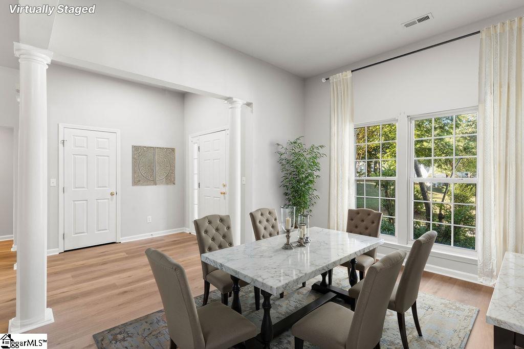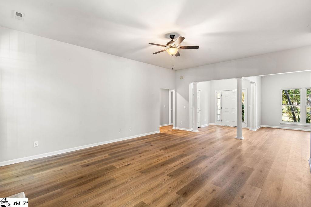 Tucked at the end of a quiet cul-de-sac, this single-level 4 bedroom, 2 bath home sits on a generous 0.40-acre lot with quick access to both Five Forks and downtown Simpsonville. Recent updates make it truly move-in ready: brand-new LVP flooring throughout, fresh interior paint from top to bottom, and quartz kitchen countertops that elevate everyday living. The layout is a true split floor plan—placing the private primary suite on one side of the home and three comfortable secondary bedrooms on the other—creating ideal separation for guests, kids, or a home office. Inside, daily life flows across a large living room, a dedicated dining room for gatherings, and a well-sized kitchen with a sunny breakfast area. There’s plenty of room to cook, dine, and unwind without feeling crowded, and the natural connection between spaces makes entertaining easy. Outdoor living shines here: start the day on the covered front porch, spend bug-free evenings on the screened-in back porch, and fire up the grill on the adjacent deck. With nearly half an acre, the lot provides space for play, gardening, pets, or future enhancements—while the cul-de-sac location keeps through-traffic to a minimum. Convenience is the theme: minutes to shopping, dining, parks, hospitals, and schools—yet set on a peaceful street that feels worlds away. If you’ve been looking for one-level living with fresh finishes, flexible spaces, and multiple porches plus a great backyard, this Simpsonville gem checks all the boxes.