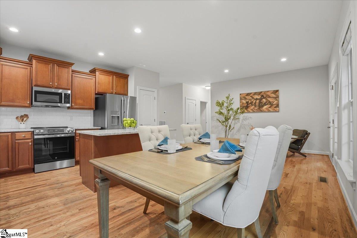 Location. Layout. Lifestyle. Beautiful 4-bedroom, 2.5-bath home in the sought-after Woods at Northcliff neighborhood of Travelers Rest! Ideally located on a quiet cul-de-sac just ¾ mile from the TR Farmers Market, Trailblazer Park, and multiple Swamp Rabbit Trail entrances—enjoy easy access to all the charm and convenience of both Travelers Rest and Greenville. A welcoming rocking-chair front porch leads into a two-story foyer and a spacious living room highlighted by a stunning custom stone wood-burning fireplace (gas hookup available). The open-concept layout flows seamlessly between the den, kitchen, and dining area—perfect for everyday living and entertaining. The kitchen features granite countertops, subway tile backsplash, full appliance package, walk-in pantry, and a large center island with space for casual dining. The main-level primary suite boasts crown molding, double closets, and an ensuite bath with dual sinks, a jetted tub, and a separate shower. Rounding out the main floor is the walk in laundry room (washer and dryer convey) with easy access to the two car garage. Upstairs, you’ll find three additional spacious bedrooms, a full bath, and a versatile flex room with a closet—ideal for a home office, playroom, or gym. Enjoy the outdoors year-round on the screened porch complete with a wood-burning fireplace or relax on the stamped concrete patio—perfect for grilling and gatherings. The wooded backyard offers privacy plus plenty of space for gardening and play. Additional highlights include a 240-volt receptacle for an EV charger and a pre-wired electrical panel for quick generator hookup, ensuring comfort and convenience in any season. As part of The Woods at Northcliff community, residents also enjoy access to shared amenities including a pool, playground, tennis and pickleball courts, basketball and volleyball courts, and scenic common areas. 6 Dunwoody checks all the boxes and more and is ready and waiting for YOU!