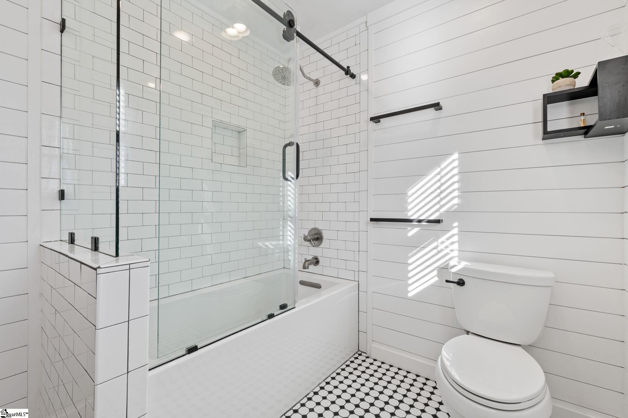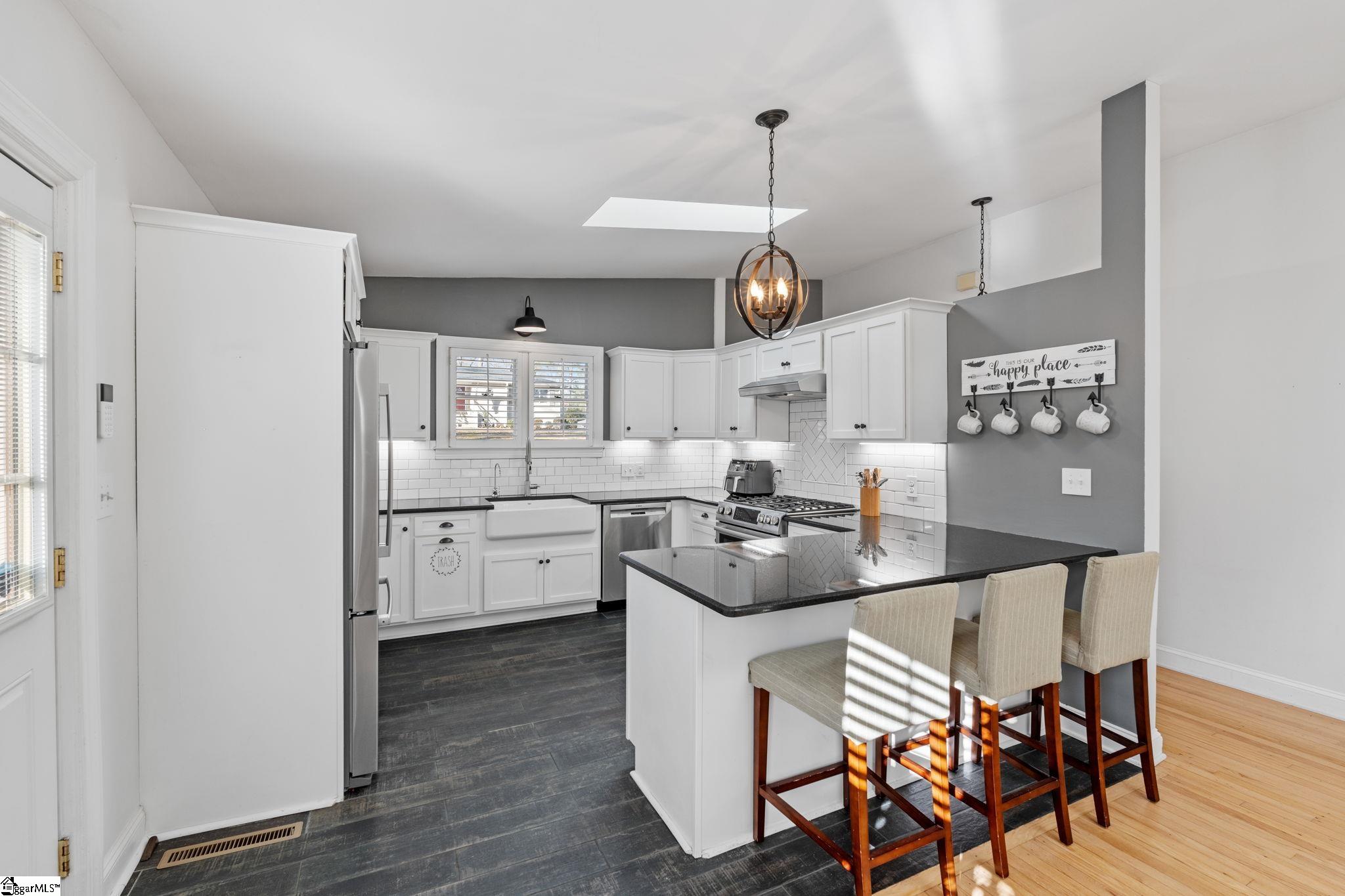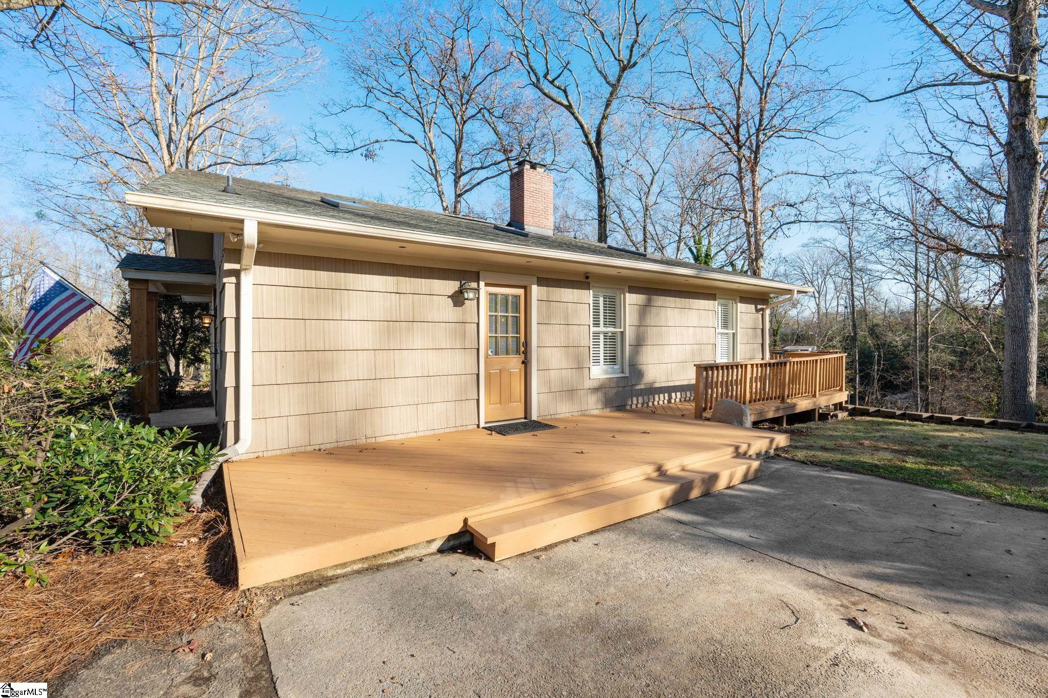 Welcome home to this charming Bungalow only 5 minutes from Downtown Greenville! Situated on a large lush lot with a creek in the back, mature trees and a walkout basement! Enjoy the freedom of NO HOA! Primary suite on main or the versatility to have primary suites on second or basement level if so desired. The current owners use the basement level/4th bedroom in basement as a second living quarters with separate entrance and full bath. This space would be perfect for in-laws, adult children preparing to spread their wings, a roommate, or just a cool place to entertain and host your friends and family! Enjoy hardwoods throughout (except in bathrooms and finished attic), an open floor plan, renovated kitchen with Bosch appliances, modern updated bathrooms, walk-in laundry room, skylights, and a large deck and stone patio for enjoying all of South Carolina’s mild four seasons! The home’s third floor is a finished attic- a perfect space for an exercise room, mancave, playroom, craft room, or even a homeschooling space or dream “pinterest” closet! Additional features include irrigation system, outdoor lighting system, and plenty of space to build your dream detached garage/workshop. Easy access to 385, 85, Haywood Road, and Woodruff Road for all your shopping and every day needs!