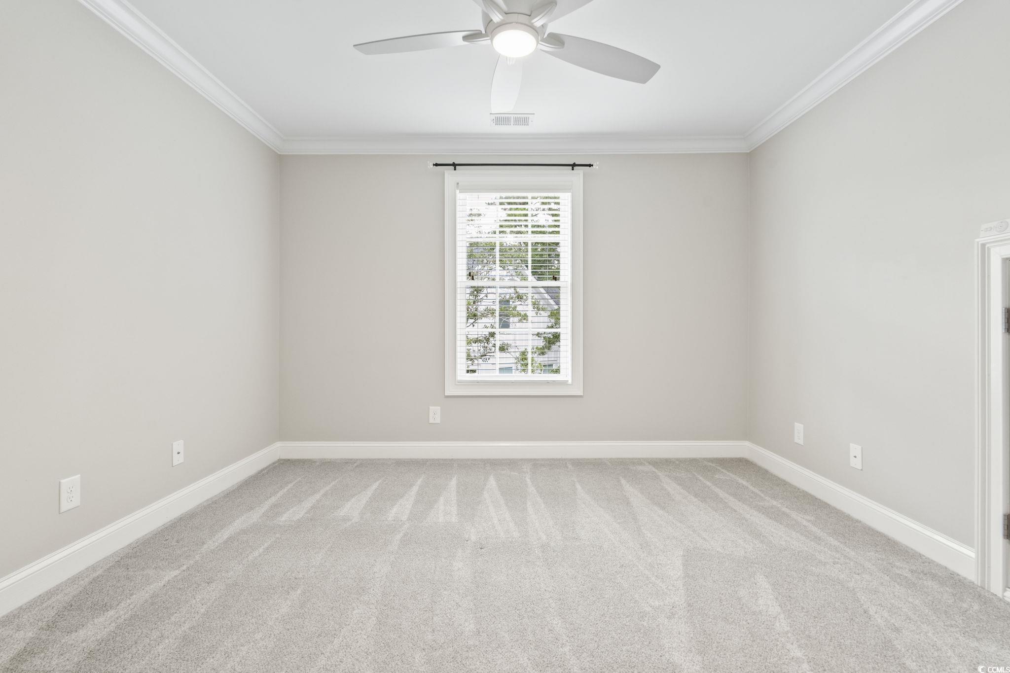 Welcome to this custom Low Country home on a quiet cul-de-sac in the gated Collins Creek Landing community. This home blends charm, comfort, and thoughtful design. The front porch invites relaxation and enjoyment of the peaceful surroundings. Inside, crown molding, custom built-ins, a hand-painted mural, and upgraded finishes are featured. The primary bedroom and ensuite, plus two more bedrooms, are on the first floor. Upstairs are a fourth bedroom, a full bath, and a spacious bonus room, which can serve as a fifth bedroom. The heart of the home connects to outdoor living, including a wood-burning fireplace on the screened porch and a brick fireplace in the backyard. Set on a private, wooded .64-acre lot, you’ll have space to enjoy the Low Country lifestyle. The home offers modern convenience and classic character. The location is private yet minutes from Murrells Inlet’s attractions. Savor fresh seafood, explore unique shops, tee off at golf courses, or visit nearby beaches. The community features a clubhouse, playground, pool, boardwalk, community boat landing, day docks, and boat storage, all with direct waterway access to the Waccamaw River.