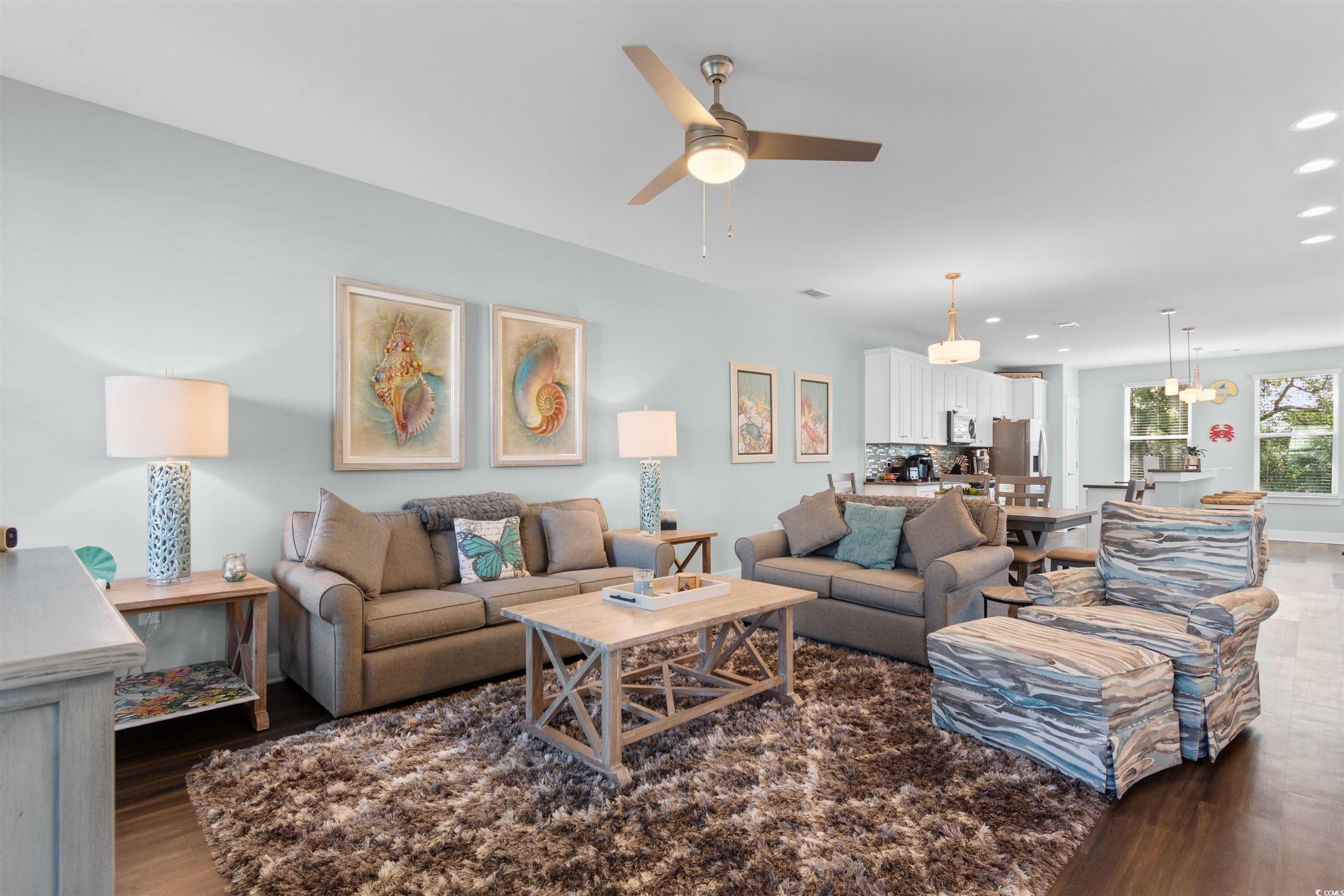 Step into coastal luxury with this elegantly furnished 3/bed-3/bath townhome in a gated community, located just minutes from the Atlantic Ocean, so have your each chairs and umbrella ready! Designed for comfort and style, this home comes complete with upscale furniture and decor, creating a move-in ready retreat. The open-concept living area flows seamlessly into a designer kitchen with premium finishes such as quartz countertops, 42-inch cabinets, gas oven, stainless steel appliances. A true gourmet chef's dream while large windows fill the living room and kitchen with natural light. The master suite serves as a true retreat, with a spacious design an refined finishes create a private retreat. The room's generous layout allows for a king bed and sitting area, while natural light highlights every detail. Two beautifully appointed guest bedrooms provide comfort and versatility - ideal for family, guest, or stylish home office. Each room is thoughtfully designed with ample closet space and a welcoming feel! The garage has plenty of space for jet skis and car! This townhome is located within minutes of the beach, shopping and dining at Barefoot Landing, golf courses, and entertainment at the House of Blues. The dream of owning this immaculate luxury townhome just 5 short blocks to the Atlantic Ocean is here!