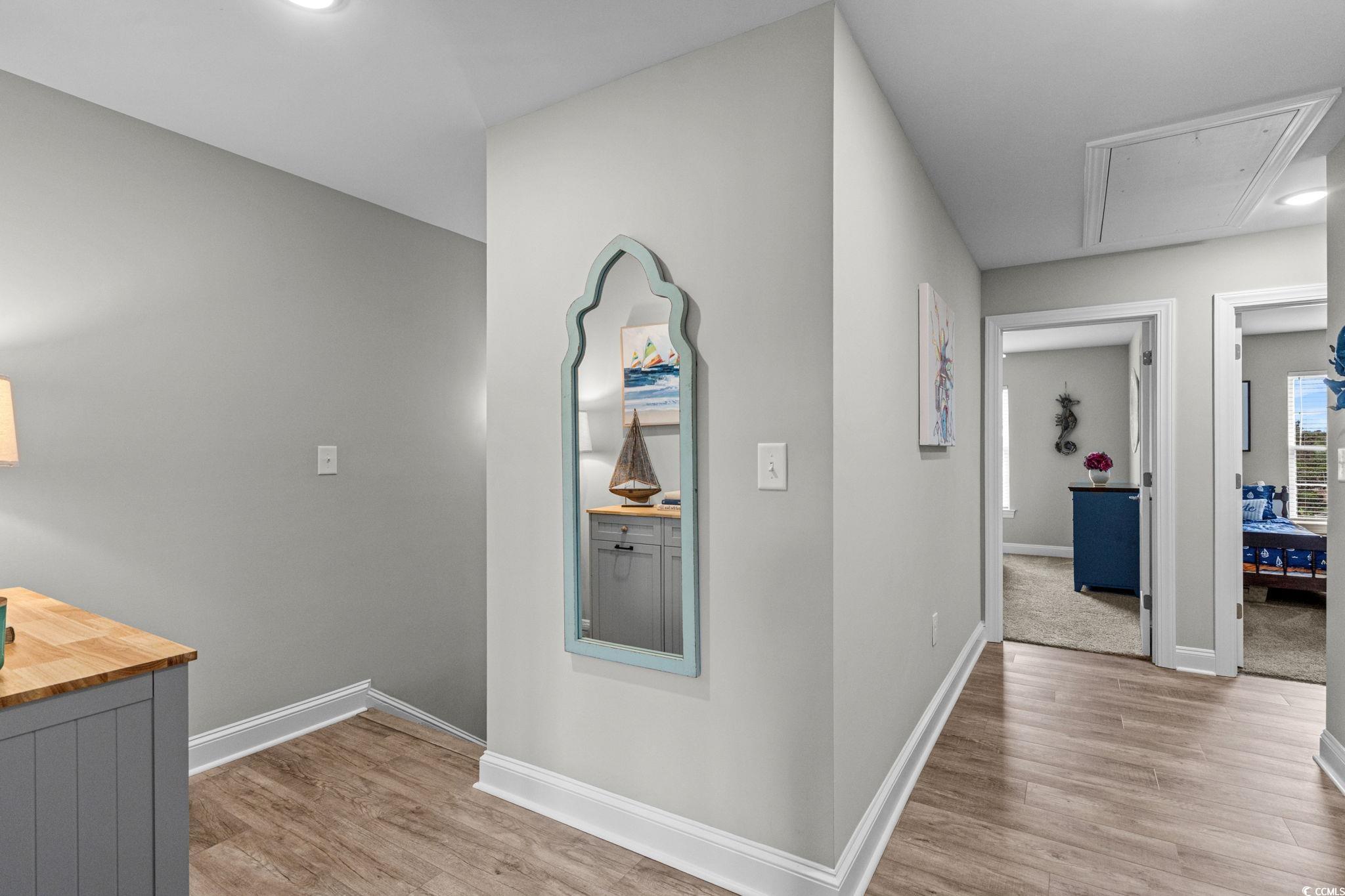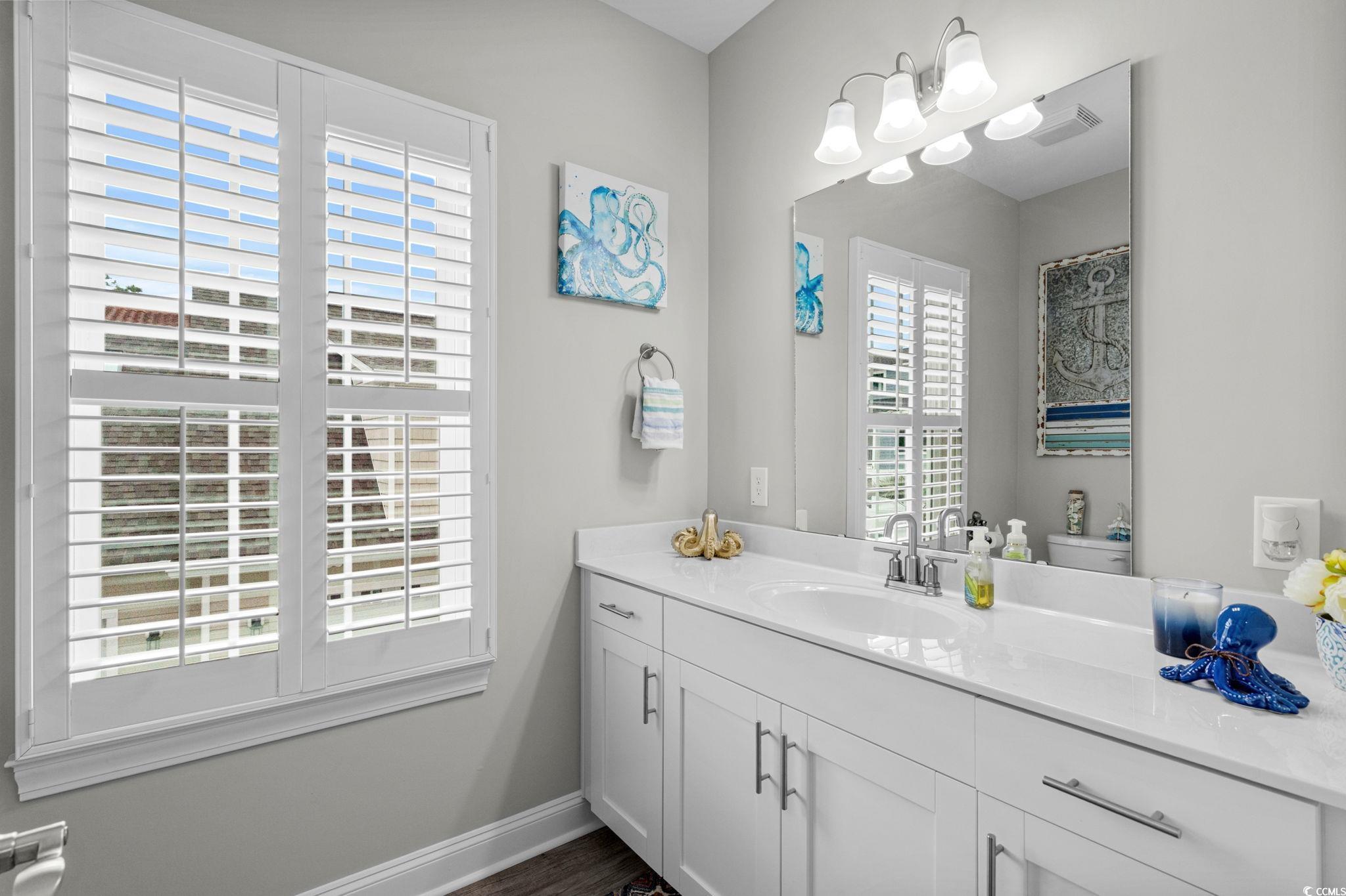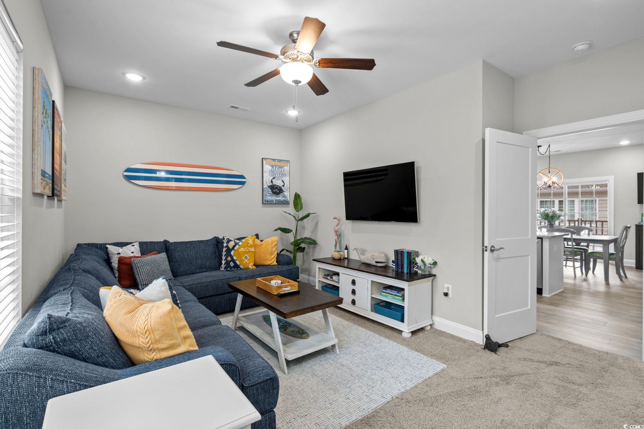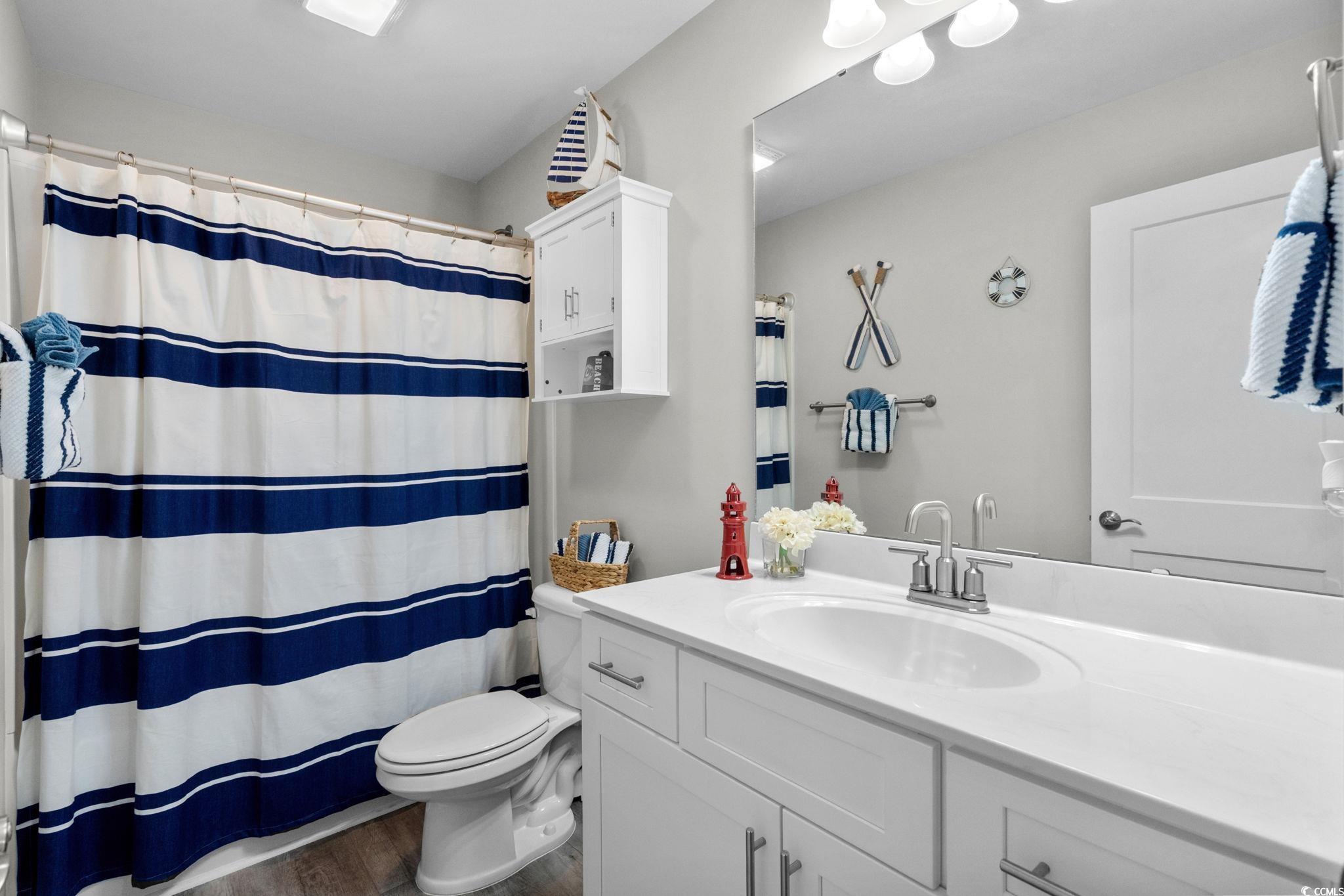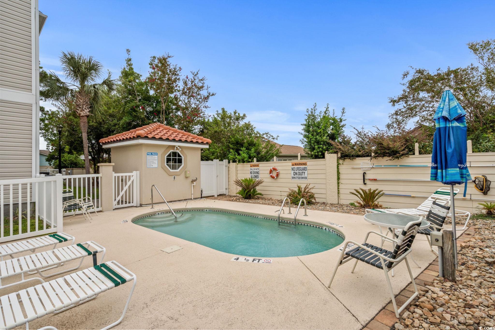 Prime Ocean Drive area location! Just a few blocks from the beach and Main Street, this stunning 4 bedroom, 3.5 bath townhouse style condo delivers the perfect blend of style, comfort, and convenience. The versatile multi-level floor plan showcases soaring 9 ft ceilings, recessed lighting and modern finishes throughout. A sparkling granite kitchen with abundant cabinetry, counter space and counter-height breakfast bar serves as the focal point, seamlessly connecting to the inviting dining and sitting areas. Additional Kitchen features include a spacious pantry, mother of pearl backsplash as well as undermount cabinet lighting. Unique to this design, there are two primary en suite bedrooms, one on the main level (currently used as a living area) and one on the top level, offering ultimate flexibility. There are also two additional bedrooms and a full laundry room on the upper level. Interior highlights include luxury vinyl plank flooring in all public and wet areas, upgraded lighting in the dining room and primary suite and exceptional storage. Plantation Shutters adorn the front windows. Outdoor living is a delight with a covered porch featuring a remote-controlled retractable screen, bluetooth-enabled speakers, upgraded lighting/fan and solar sconces—perfect for relaxing or dining al fresco. The ground-level entry welcomes you with a spacious foyer and a tandem-style 2-car garage with extra space for a golf cart or storage. There is an additional designated parking space for this unit at the right/front of the community pool. Decorated in tasteful neutrals and offered for sale fully furnished with few exclusions. This exceptional property truly has it all—current design, thoughtful upgrades, community pool and a location that puts you close to the best of what North Myrtle Beach has to offer.
