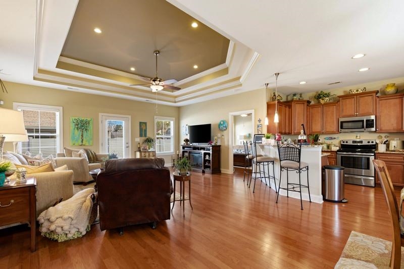 Immaculate, One-Owner Home in a Prime Location! Quality-built by a trusted local builder, this beautifully maintained home offers the perfect blend of comfort, style, and convenience. Lovingly cared for by its original owner, this property is smoke-free, pet-free, and truly move-in ready. Step inside to discover soaring 9-foot ceilings and engineered hardwood floors throughout the main living areas. Bathrooms feature durable tile flooring. The elegant living room features a stunning triple tray ceiling, while the spacious primary suite showcases a double tray ceiling for added architectural charm. The kitchen comes fully equipped with all major appliances—including the refrigerator. Unique custom stained-glass accents at the front door and above the shower in the owner’s bath add distinctive character. Situated on a desirable corner lot, the home boasts attractive landscaping and a full irrigation system to keep it looking its best year-round. The two-car garage includes pull-down stairs leading to convenient attic storage. Located in a sought-after neighborhood with easy access to shopping, dining, entertainment, and the beach, this exceptional home offers both tranquility and convenience. Low HOA fees include trash removal. Access to community pool requires additional fee.