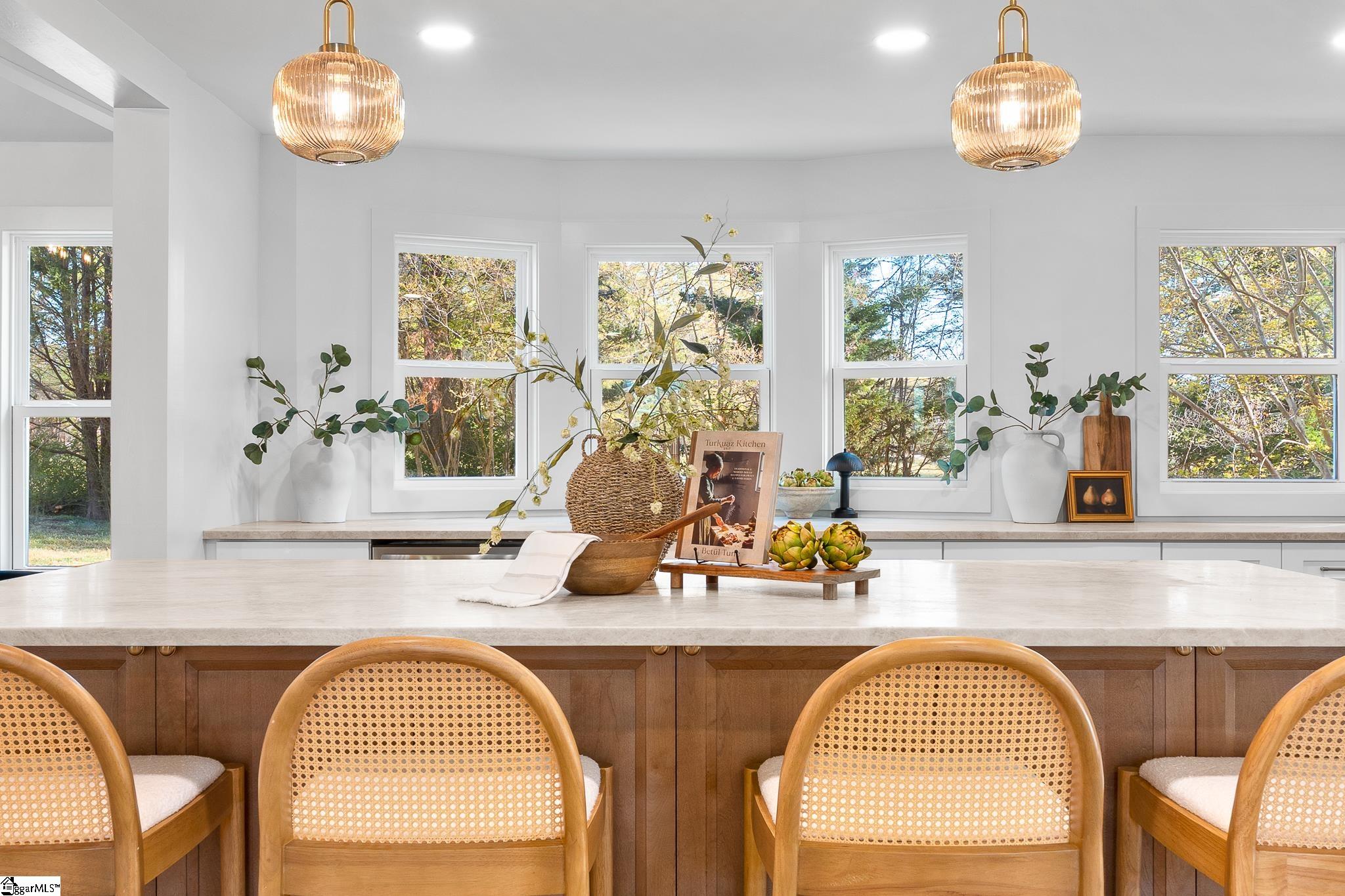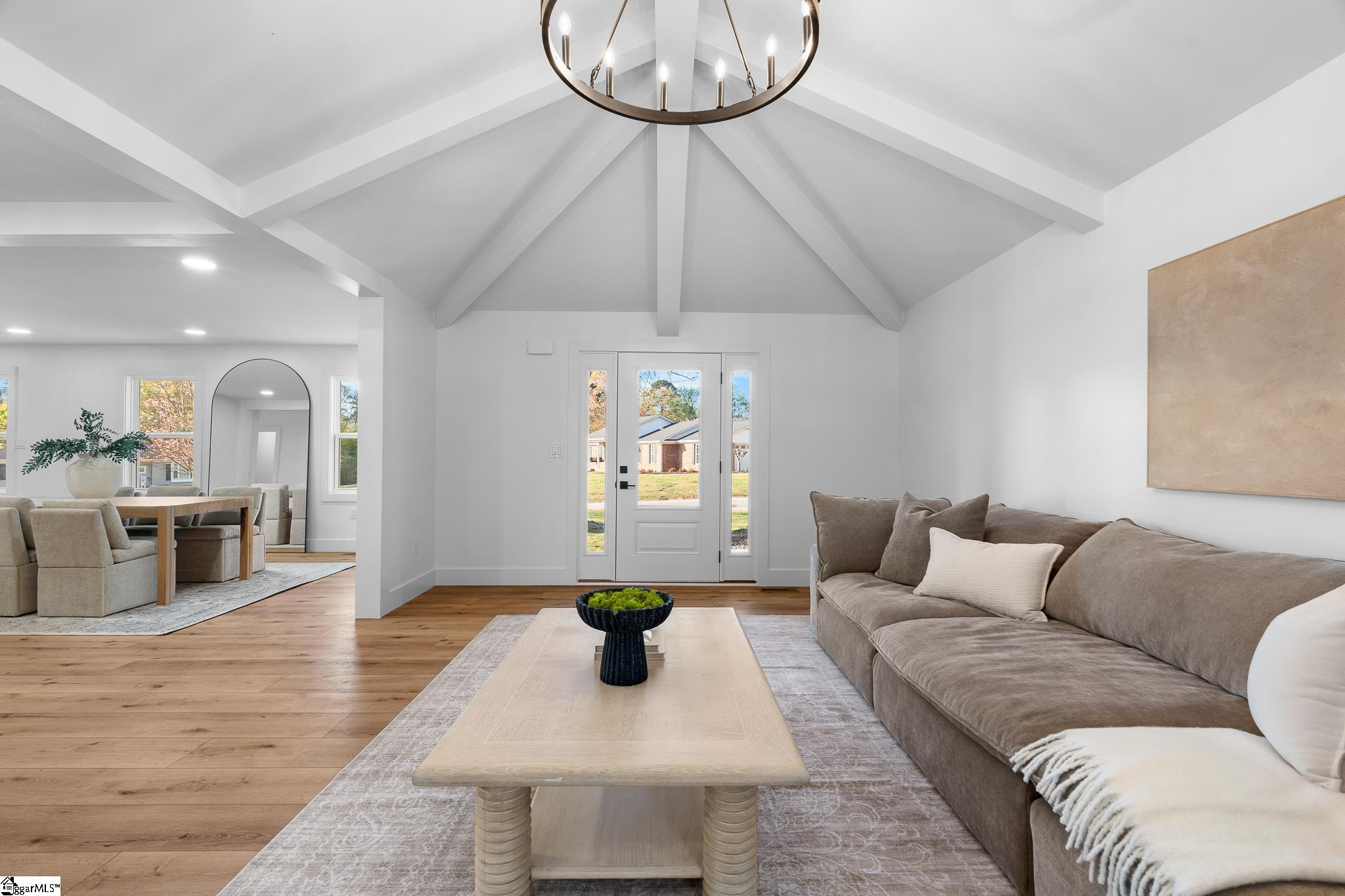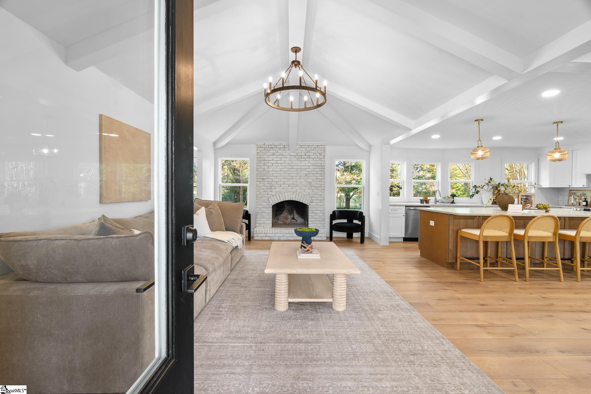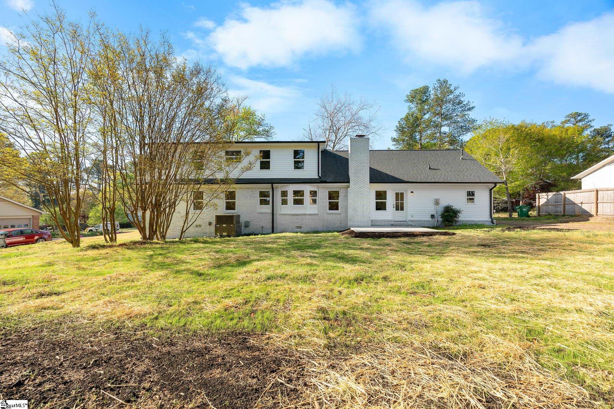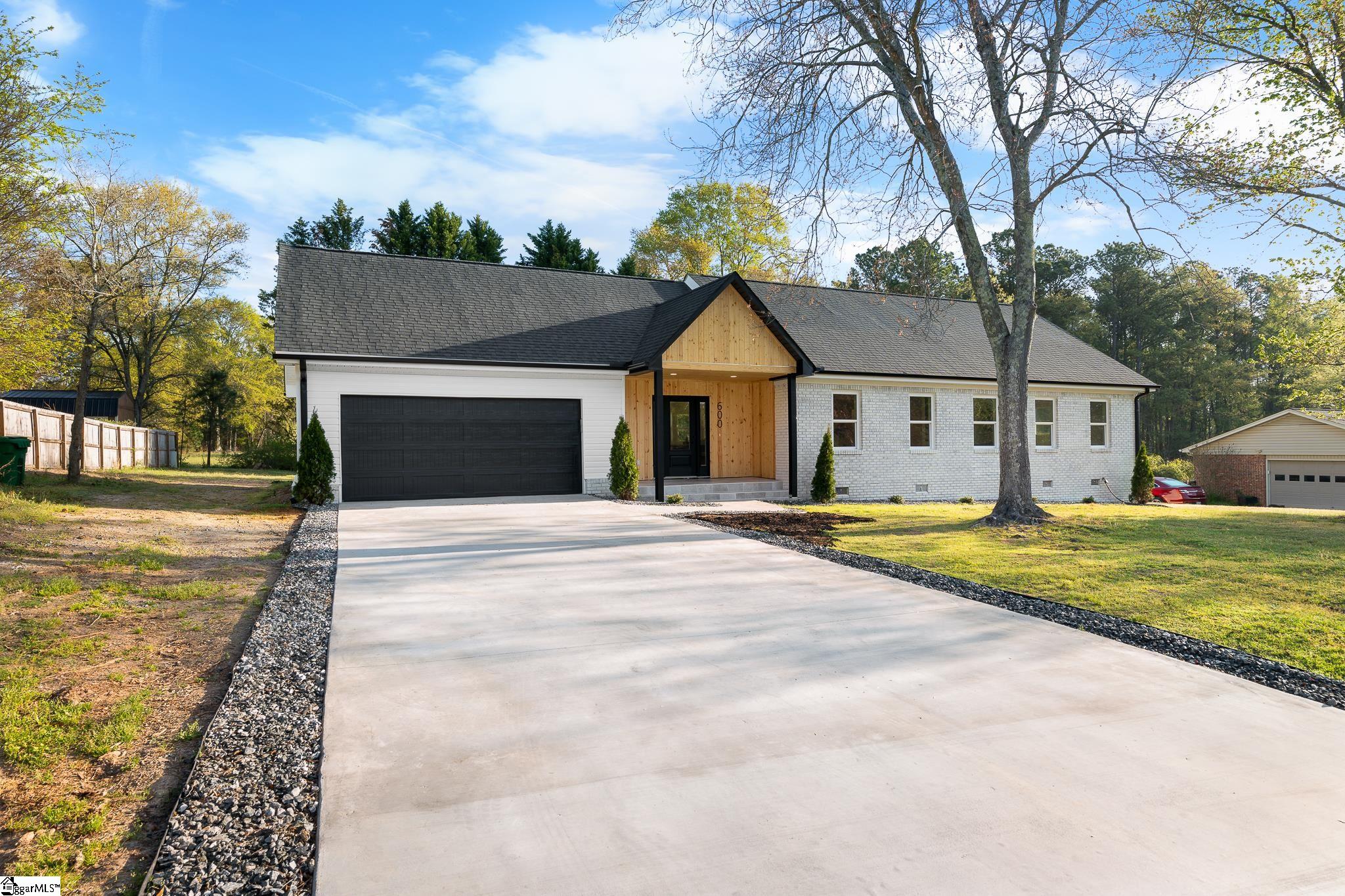 As you pull up to 600 Cannon Circle, the white brick exterior immediately catches the eye with its clean lines and welcoming tongue and grooved wood foyer entry. Set on nearly a half-acre lot in the Mauldin/ Simpsonville area, this home sits in the quiet, established Pine Brook Forest neighborhood, feeling tucked away yet perfectly connected. Step through the front door and you’re greeted by the great room vaulted ceilings with exposed beams, drawing your gaze upward, creating an immediate sense of volume and warmth. Natural light pours in from generous windows, highlighting the completely remodeled finishes that blend modern style with timeless transitional comfort. The space flows effortlessly over the 2,400 square foot layout, making it an ideal low maintenance home. The kitchen was designed as the true centerpiece for everyday living, a space you don't want to leave. At its core is a large Taj Mahal quartzite island, making a BOLD statement! A bronze pot filler arches gracefully over the range, adding functionality to meal prep, while the sleek hood keeps the air fresh during big cooking sessions. Dual-toned cabinetry in soft neutral tones offers both beauty and function, while the square-tile backsplash adds crisp architectural tones. Plenty of windows line the walls, flooding the area with daylight and offering views of the spacious backyard. Tucked right behind the kitchen is a walk-in pantry with floating wood shelves decorated by an earthy backsplash, with extra storage cabinets, and a pocket door keeping everything neatly concealed, yet instantly accessible. The entire main level has been refreshed with the latest design elements, including LVP, architectural tile flooring and beautiful lighting that layers recessed fixtures and warm pendants over the island, creating a welcoming glow from morning coffee to evening wind-down. The laundry room is equally well-thought-out, with a built-in sink, a dedicated side-by-side zone for washer and dryer, generous extra storage cabinets and outdoor yard access. These practical touches make daily chores more enjoyable. Two bedrooms and a full bath complete the first floor layout. Upstairs, you’ll find the owner's primary with an XL walk in closet, large bathroom with a dual sink vanity and a gorgeous tiled shower + freestanding glass, all finished with the same attention to detail. The fourth bedroom with XL walk-in closet neighbors the primary bedroom. The .43 acre lot provides room to breathe, plenty of space for outdoor entertaining, summer BBQs, gardening, or simply enjoying the privacy of a well-established backyard without any neighbors behind it. Southside Park is practically in your backyard, with its athletic fields, disc golf course, playground, tournament facility, tennis courts, pickle ball, basketball courts, and the raved about Discovery Island Waterpark! All these amenities within easy reach for weekend adventures or evening walks. Completely remodeled inside and out, 600 Cannon Circle offers a thoughtful, move-in-ready home that balances function, style, and location without missing a beat. Downtown Greenville’s shops, restaurants, and nightlife are a short drive away, giving you the best of both worlds: suburban space and city convenience.