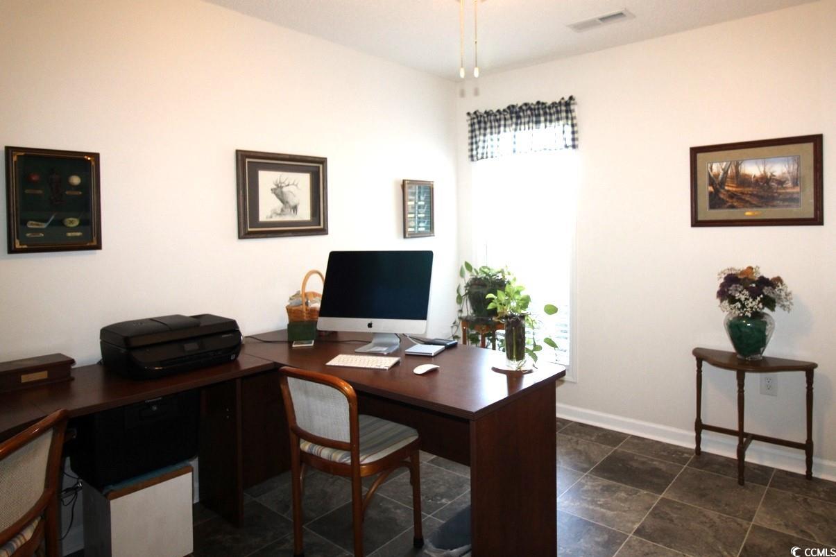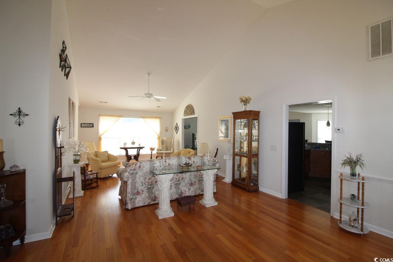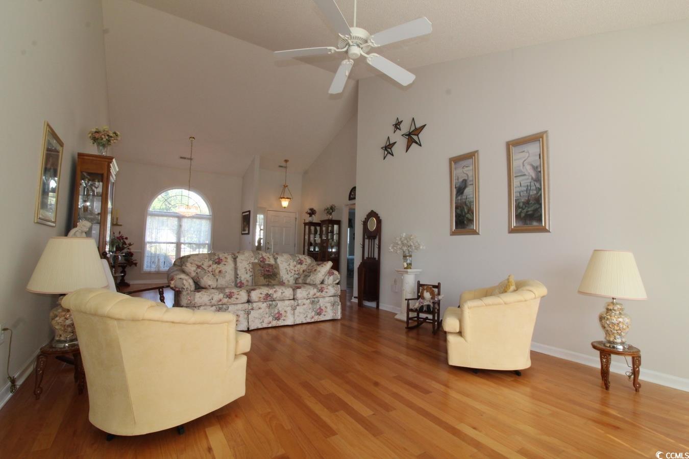 This 4BR, 2.5 BA home on a 0.32-acre lot enjoys a relaxing view of the community pond from the screened-in back porch. The home has a split bedroom floorplan with plenty of open space & high ceilings. The kitchen (19 x 12.5) has a flat top stove, built in microwave, breakfast eating area and a built-in desk. The living room (19 x 13) has a propane fireplace. The great room (22 x 13.5) with vaulted ceilings is the central core of the home. There is also a formal dining room. The master bedroom suite has a walk-in closet & linen closet. The hall from the kitchen to the garage services the laundry room, bedroom #4 and an additional half bathroom. New roof in 2022. HVAC 2017. Water Heater 2021. The home is located in the Collins Glenn community & the county resurfaced the roads in the summer of 2025. The community pool, weekly trash pick-up and internet service are amenities that are provided through the HOA. Collins Glenn is a highly desirous South Strand neighborhood serviced by the St. James schools. This home is conveniently close to Hwy 707, groceries, pharmacies, retail, the beaches of the Atlantic Ocean, the Murrells Inlet MarshWalk & all the amenities that the South Strand has to offer.