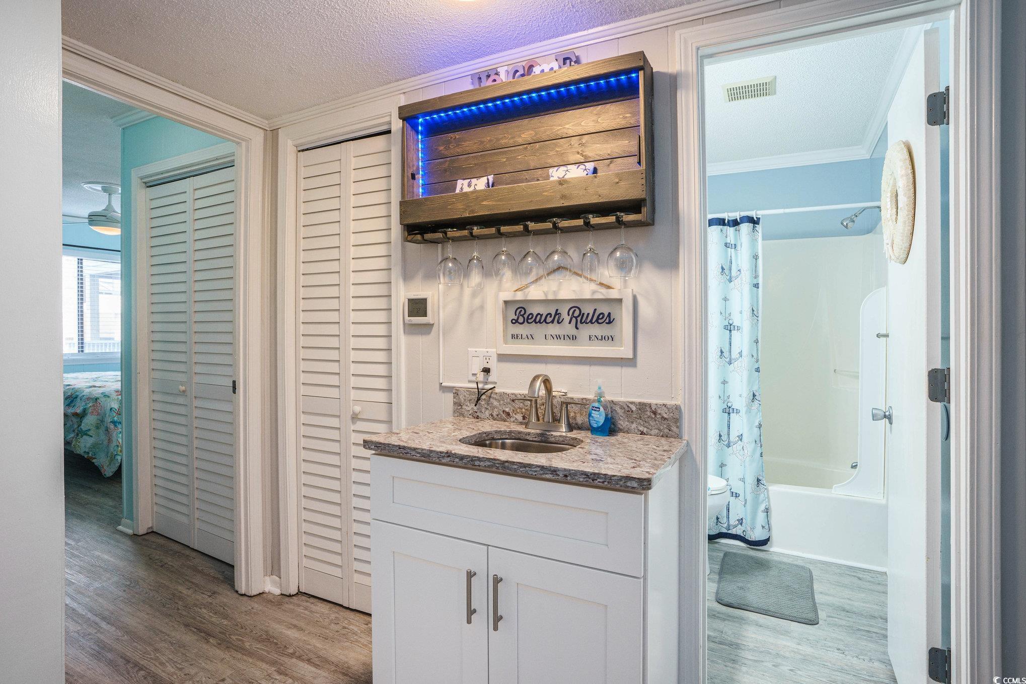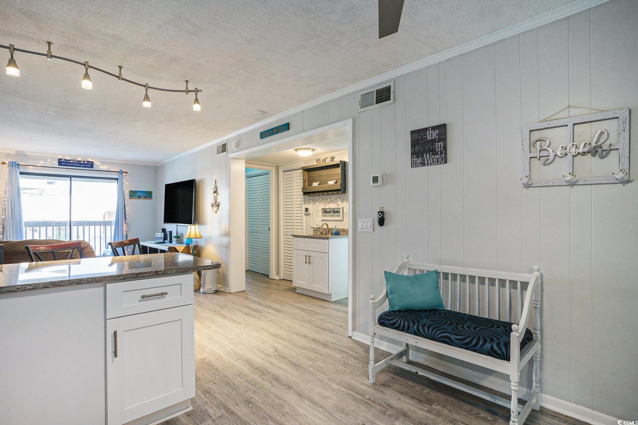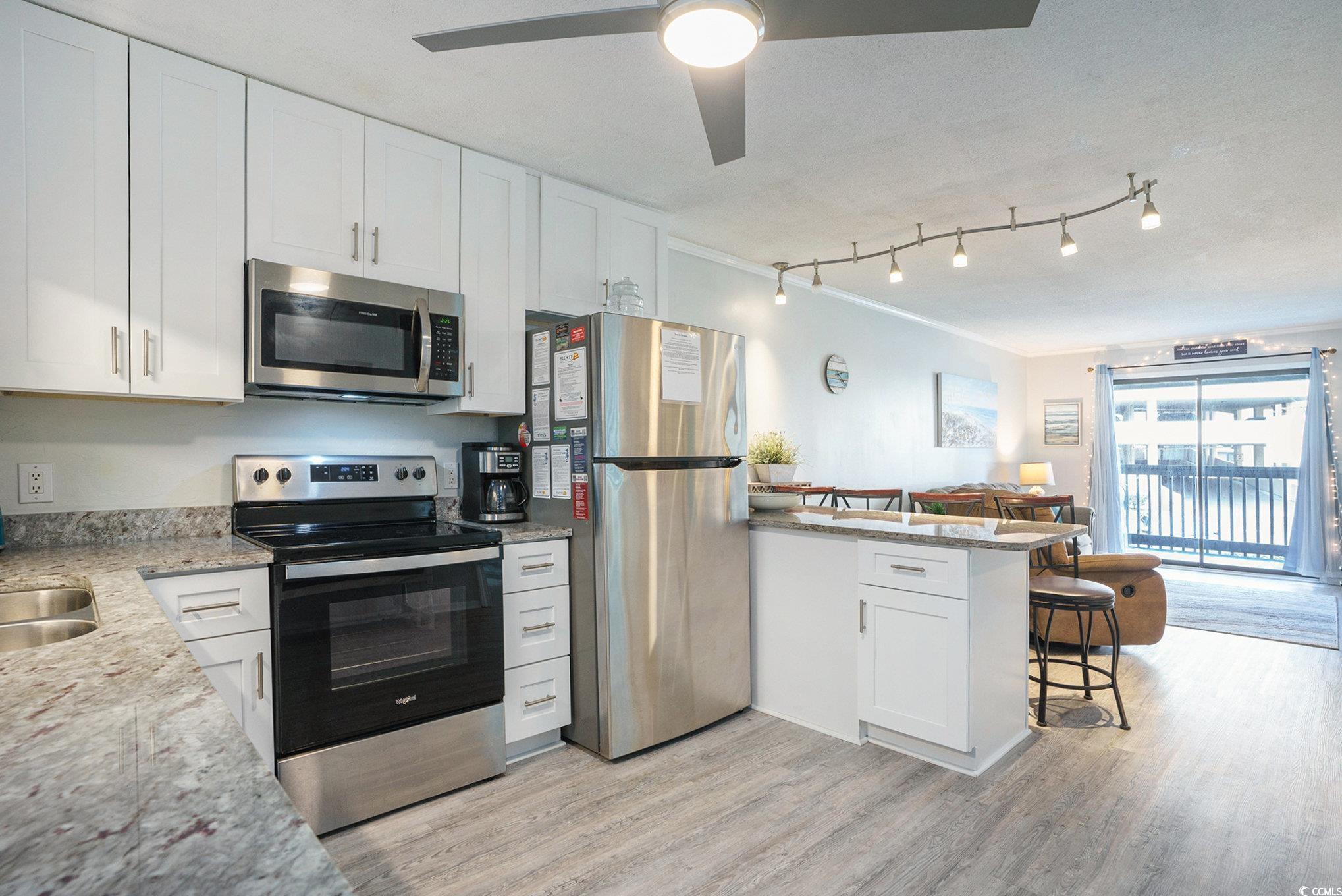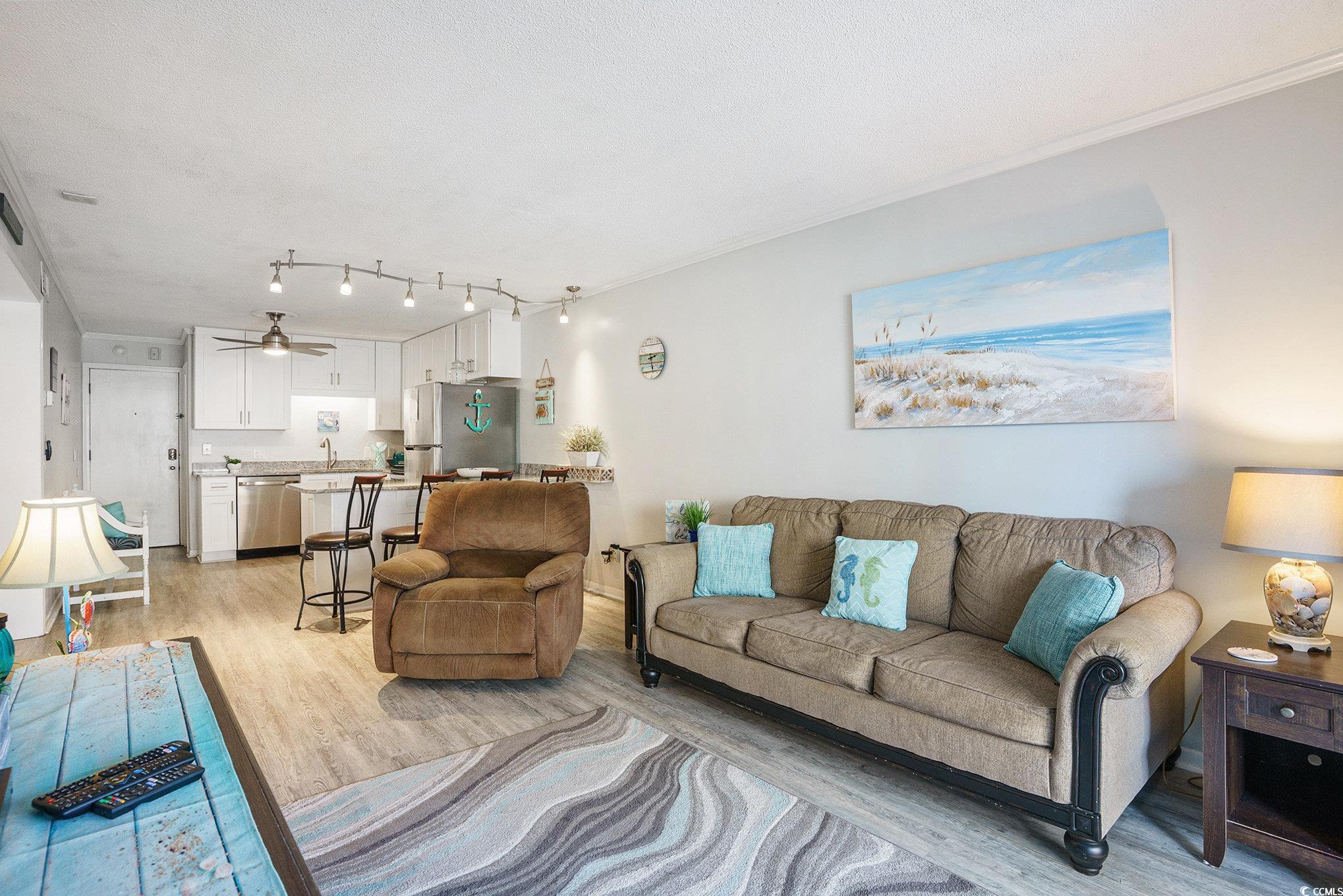 Don't miss this incredible chance to own a beautifully updated and fully furnished 2-bedroom, 2-bath condo with ocean views in the desirable Sea Cabin community in Cherry Grove! Located in Building B (Unit 133), this coastal retreat has been thoughtfully refreshed with stylish updates throughout, including fresh paint, newer LVP flooring installed by A&I, and a recently replaced hot water heater. The kitchen features newer cabinets with updated hardware, sleek stainless steel appliances, and a refreshed look that's perfect for beachside living. Both bathrooms have been modernized with new vanities, lighting, shower rods, and fixtures. Additional updates include newer lighting over the wet bar, track lighting above the breakfast bar, upgraded hardware on the sliding doors, and a Schlage keypad entry on the front door for added convenience and security. Furnishings and decor have been tastefully selected with comfort and style in mind, including flat-screen TVs and fresh bedding—making this unit truly move-in or rental ready. HVAC was replaced in September 2020. Sea Cabin offers great amenities, including a community pool, onsite laundry, and access to a private pier. Ideally located near top-tier dining, shopping, golf courses, and entertainment, this is a perfect opportunity for a vacation home or an income-generating property at the beach. Schedule your showing today and see all that this condo has to offer!