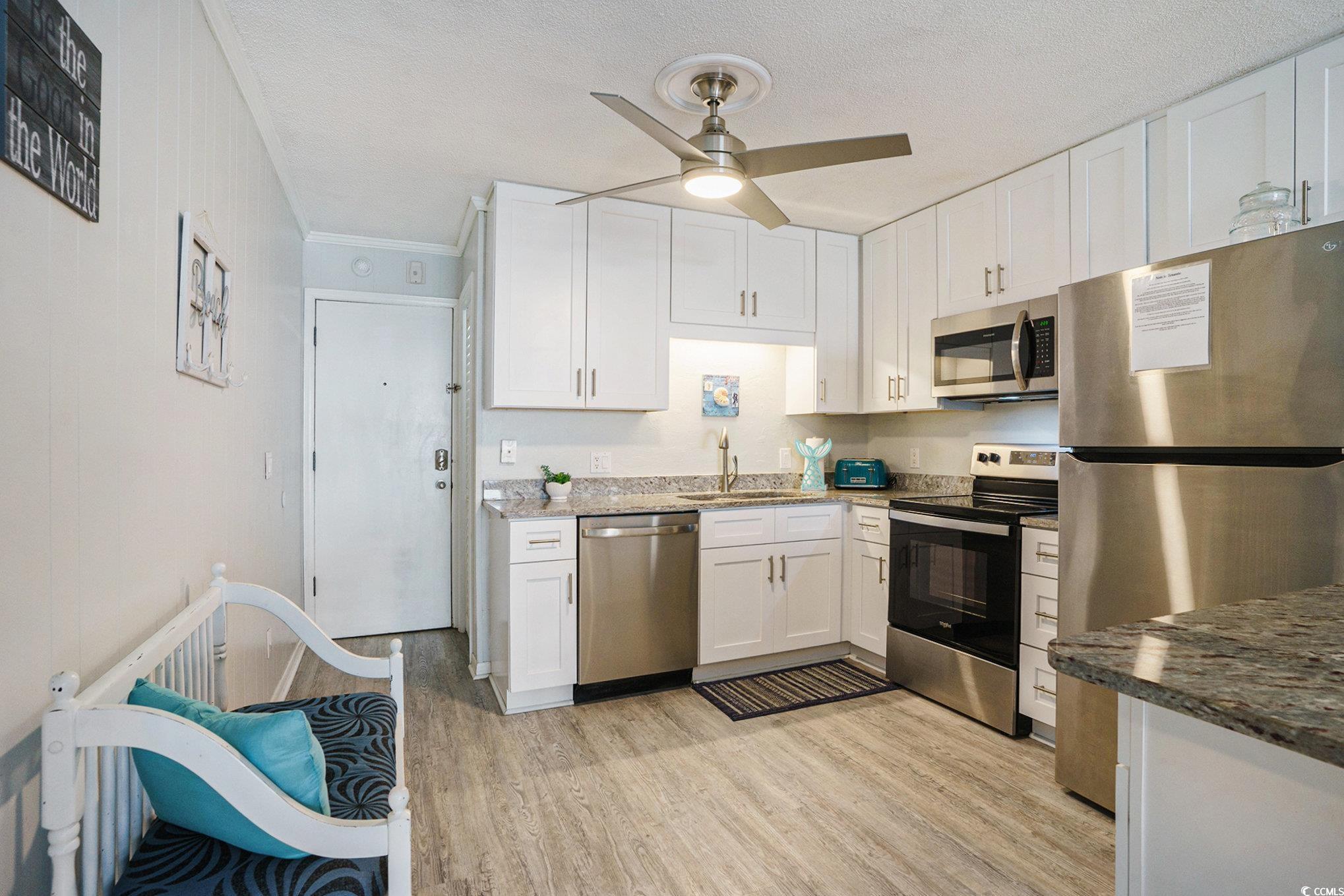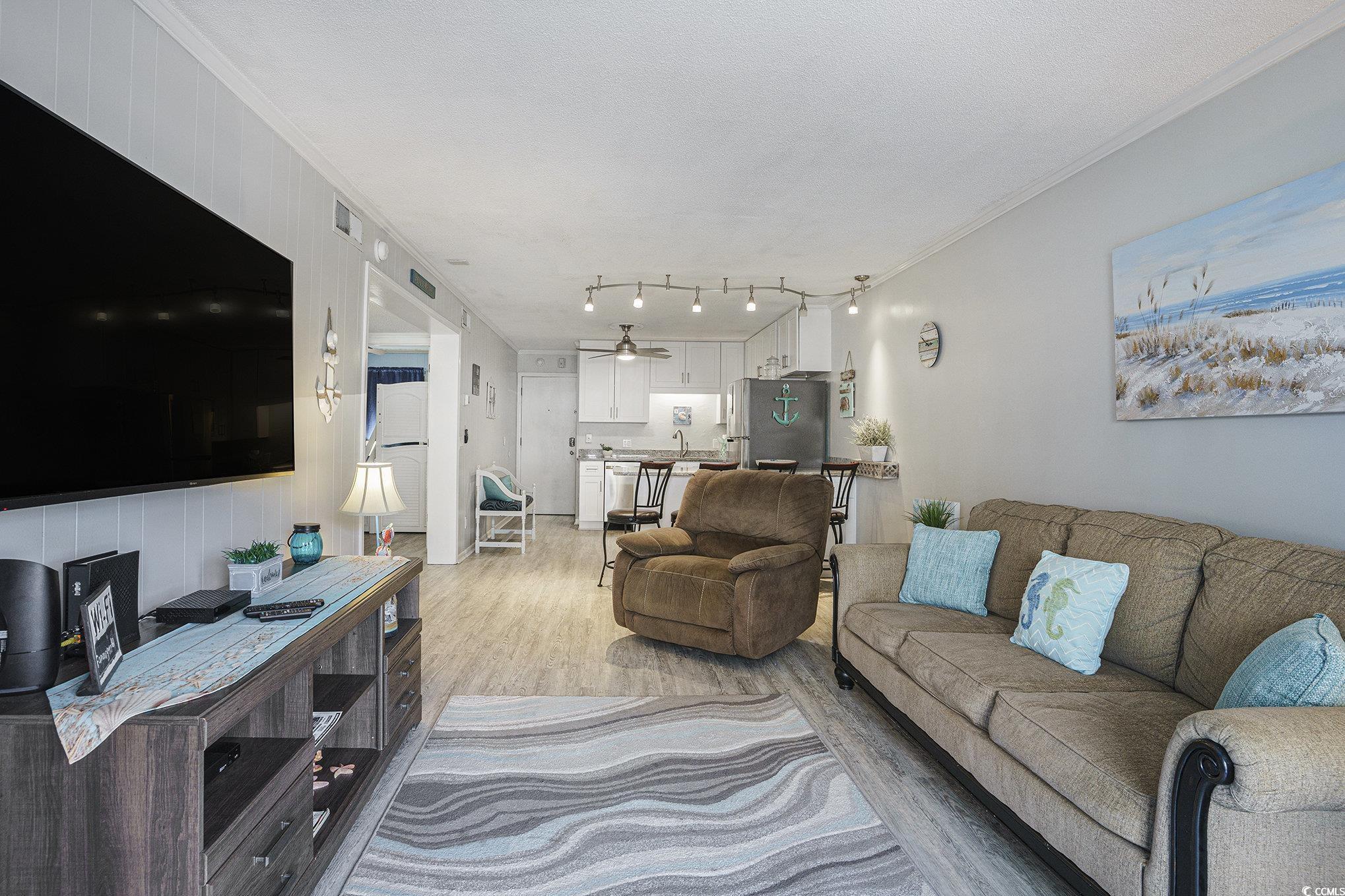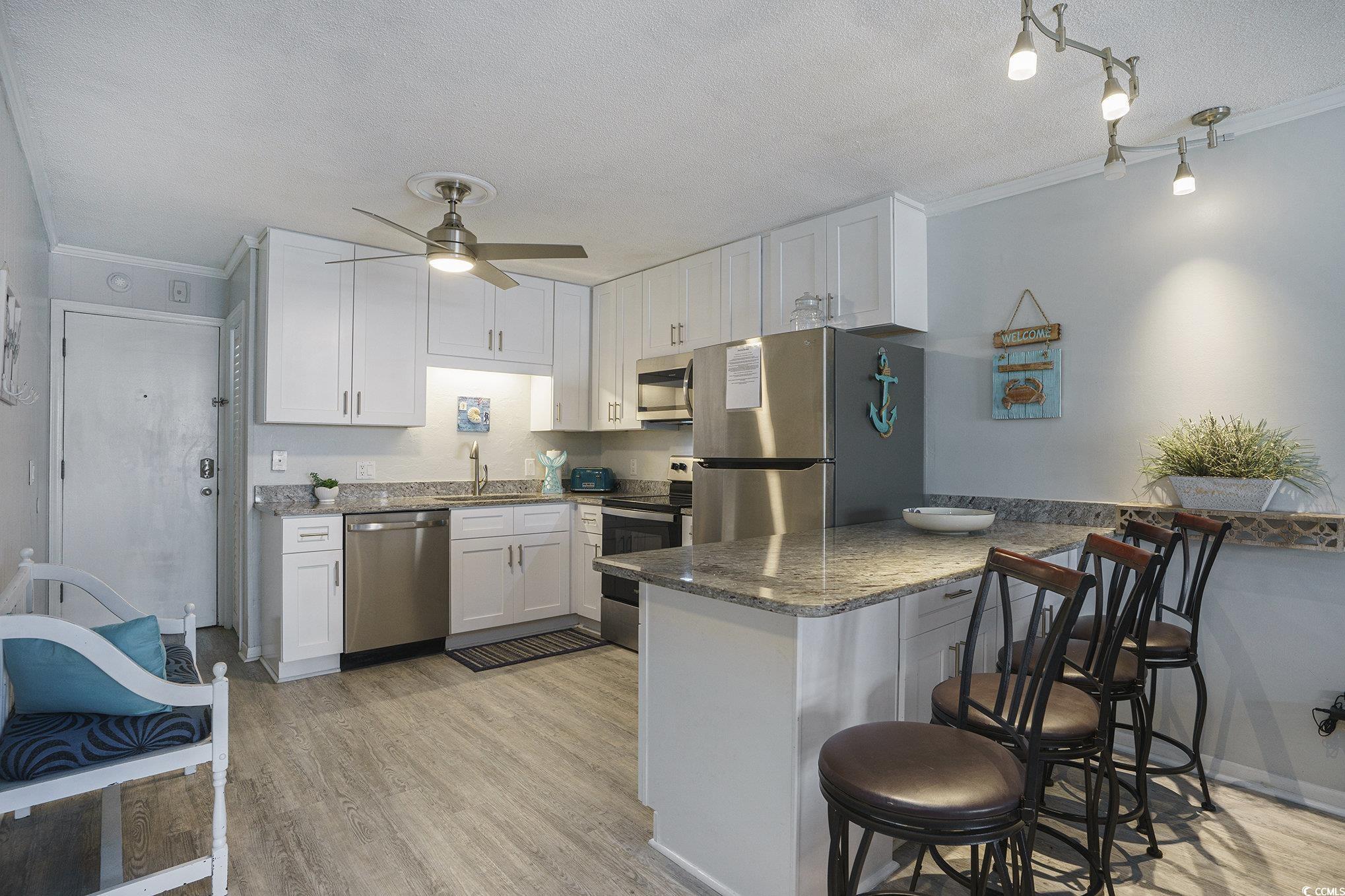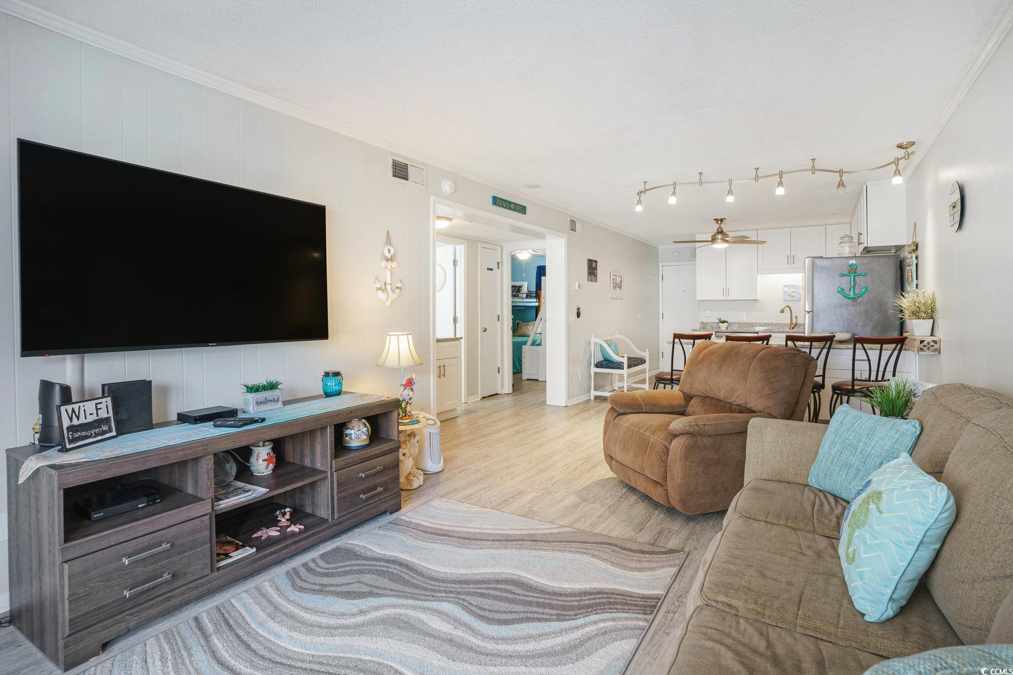 Don't miss this incredible chance to own a beautifully updated and fully furnished 2-bedroom, 2-bath condo with ocean views in the desirable Sea Cabin community in Cherry Grove! Located in Building B (Unit 133), this coastal retreat has been thoughtfully refreshed with stylish updates throughout, including fresh paint, newer LVP flooring installed by A&I, and a recently replaced hot water heater. The kitchen features newer cabinets with updated hardware, sleek stainless steel appliances, and a refreshed look that's perfect for beachside living. Both bathrooms have been modernized with new vanities, lighting, shower rods, and fixtures. Additional updates include newer lighting over the wet bar, track lighting above the breakfast bar, upgraded hardware on the sliding doors, and a Schlage keypad entry on the front door for added convenience and security. Furnishings and decor have been tastefully selected with comfort and style in mind, including flat-screen TVs and fresh bedding—making this unit truly move-in or rental ready. HVAC was replaced in September 2020. Sea Cabin offers great amenities, including a community pool, onsite laundry, and access to a private pier. Ideally located near top-tier dining, shopping, golf courses, and entertainment, this is a perfect opportunity for a vacation home or an income-generating property at the beach. Schedule your showing today and see all that this condo has to offer!