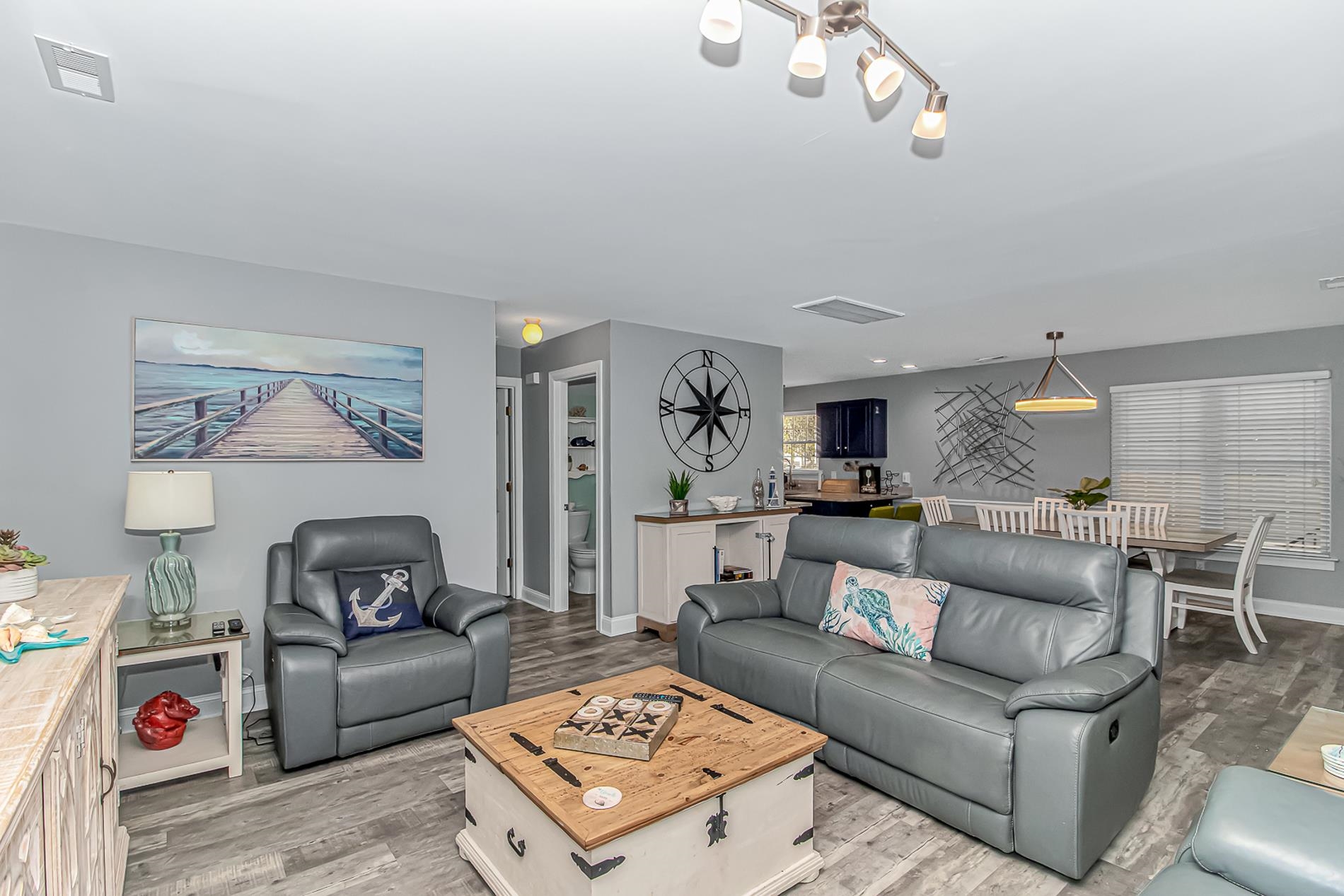 This very open and spacious 5 Bedroom, 4.5 Bath raised beach house is just a very short walk or golf cart ride to the beach. The kitchen has a nice breakfast counter to sit at and a large dining table, LVP flooring throughout, a huge master suite with access to porch. It has 2 great porches to sit and listen to the ocean or watch the world drive by on their golf carts while your drink your morning coffee or afternoon cocktails. This home is already setup for weekly beach vacationers and earns excellent rental income. Located in the private gated Ocean Lakes community featuring award winning amenities that focuses on being family-oriented. This home is being sold fully furnished! Call today to schedule your private showing.