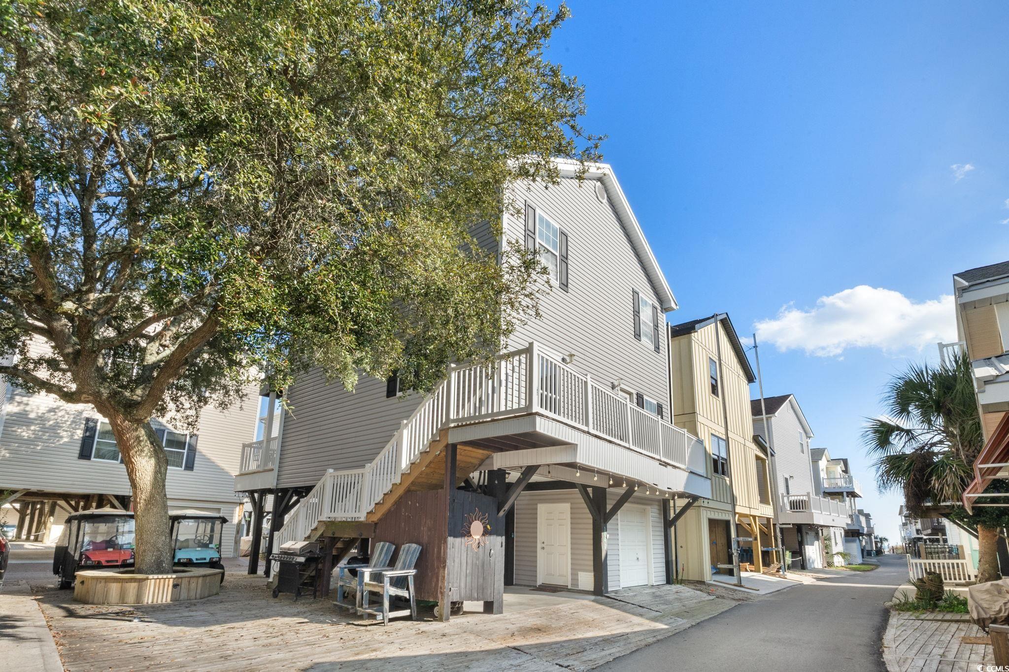 Live the ultimate beach lifestyle in this stunning 5-bedroom, 3-bath elevated coastal retreat with ocean views! Designed for memory-making, entertaining, and soaking up the salty air, this home is being sold fully furnished, making it truly move-in or rental ready. Featuring a 2025 metal roof and brand-new appliances, you’ll enjoy peace of mind, durability, and modern convenience by the coast. Multiple spacious decks offer the perfect spots to sip your morning coffee, catch ocean breezes, and enjoy sunset cocktails with a view. Downstairs is an entertainer’s dream with a massive covered hangout area, lounge seating, and mounted TV—perfect for grilling, game days, and relaxing after a beach day. The extra parking space is a rare bonus, ideal for hosting guests or multiple vehicles, and the shaded area around the tree creates a cozy, laid-back hangout zone—perfect for hammocks, picnic tables, or fire pit nights under the stars. Inside, you’ll find a bright, open layout, a well-appointed kitchen with ample cabinet space, and easy coastal style throughout. With generous parking, outdoor storage, and thoughtful design, this home is ideal as a primary residence, second home, or income-producing vacation rental. This one truly delivers the full Ocean Lakes lifestyle!