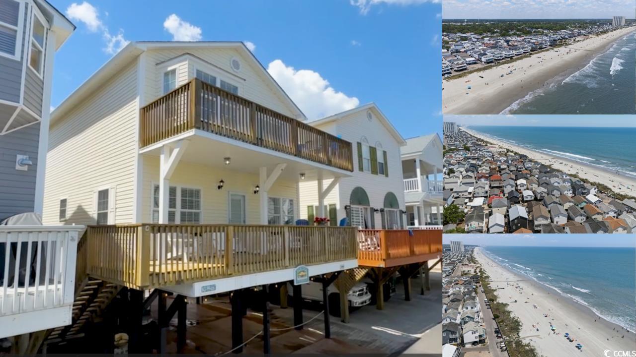Welcome home to 1098, just 5 houses back from the beach! This 4-bedroom,3-bath, two-story raised beach house comes fully furnished and delivers breathtaking views of the Atlantic Ocean from all three decks. This home has been completely remodeled/renovated and offers 4 bedrooms and 3 full baths. Recent improvements include two new HVAC units installed in 2024, a new hot water heater added in 2025, and new exterior gutters installed in 2024. A full renovation completed in November 2023 added crown molding, custom window casings throughout, and a custom amethyst stone tile fireplace with an electric heater insert. Entering inside you have the open concept dining area and kitchen to the left, living room is on the right with plenty of seating, a 65-inch TV, and a fireplace, hall to 1st floor full bath and bedroom #1 with queen bed. The kitchen includes brand-new custom all-wood cabinet doors, top of the line stainless steel appliances (washer and dryer included), granite countertops, pantry, tile backsplash, and door to southside rear deck. The home has new LVP flooring throughout and tile flooring in all three bathrooms. Upstairs has 3 more bedrooms and 2 full baths. A primary suite with king bed, access to deck with direct ocean views, and a spacious ensuite bathroom with dual vanity and walk-in shower. A second king bedroom with direct access to second level deck. A second full bathroom. Kids bunk room with one full bed & two twin beds. Ocean views from first and second level decks! Bedrooms have new solid-wood High Point Furniture and bathrooms have new vanities, toilets, and tub/shower units. Under the house offers generous parking and a convenient outdoor shower.