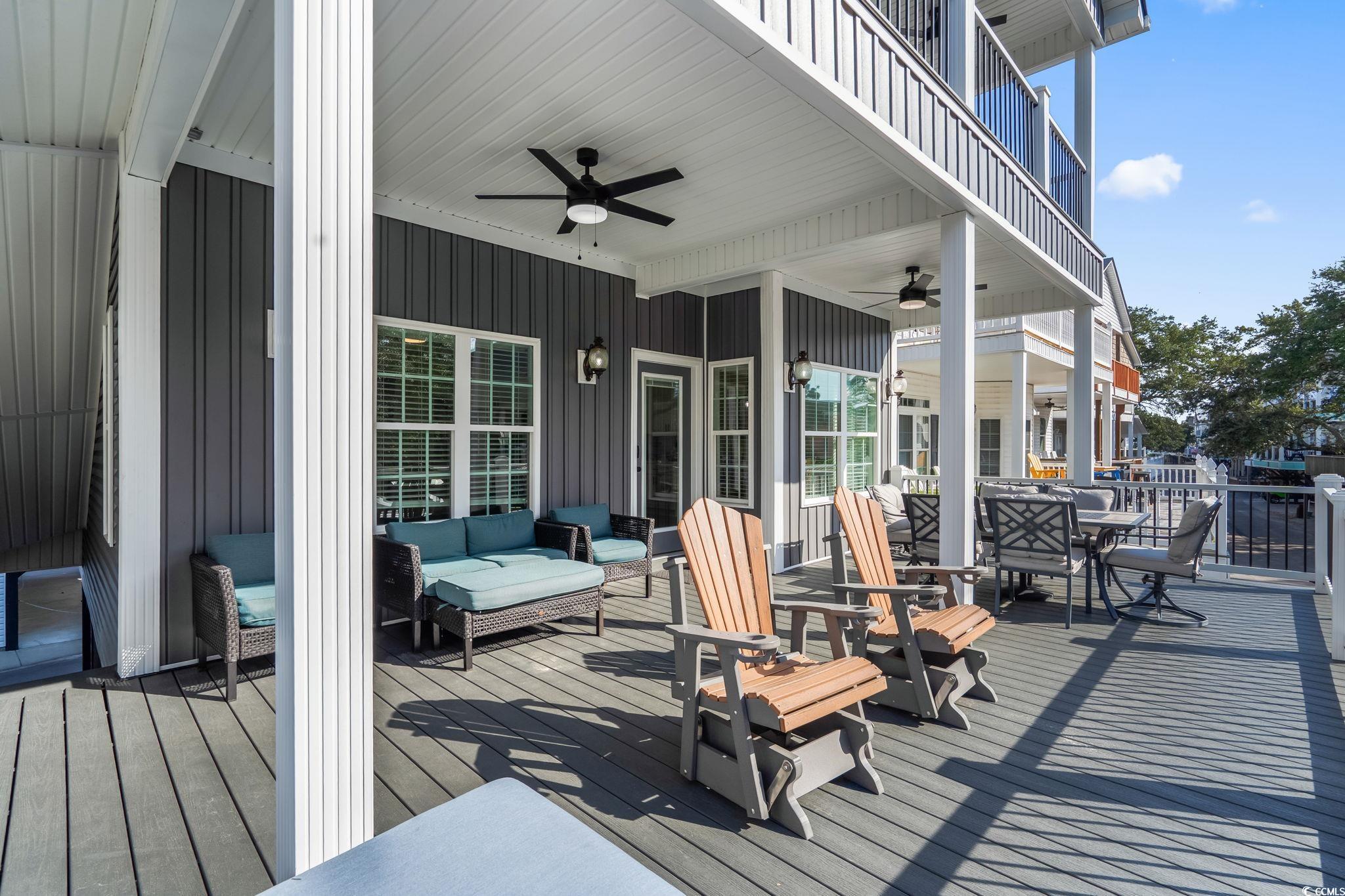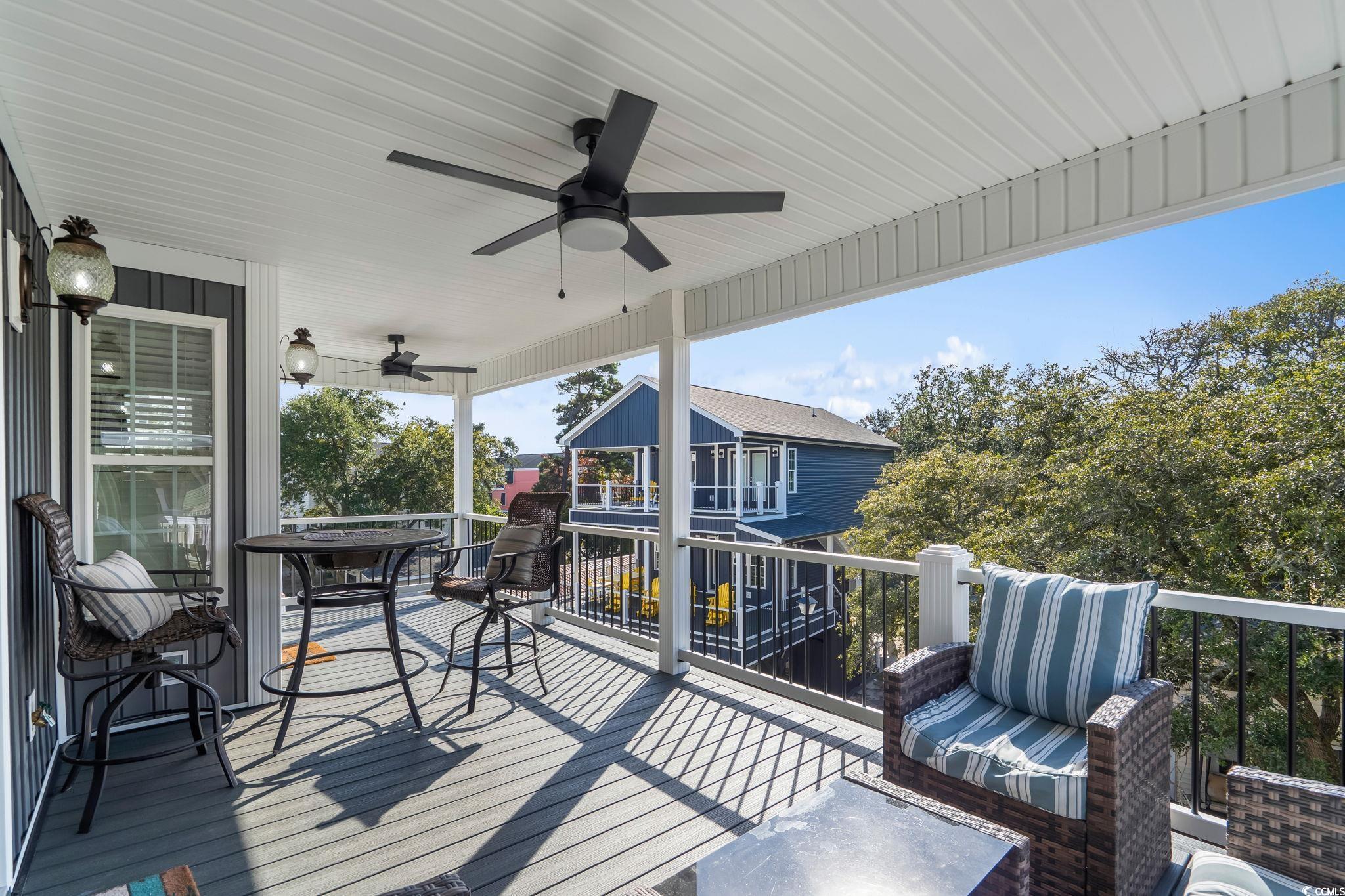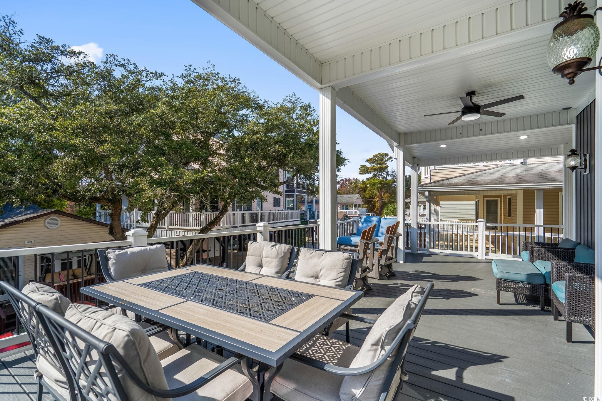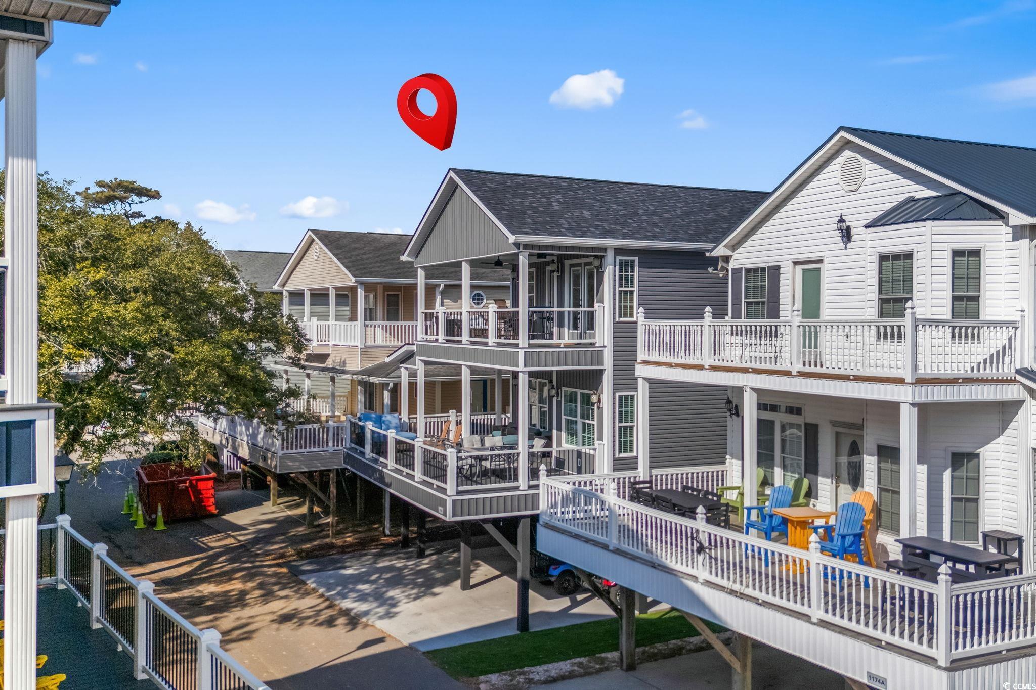 Welcome to 1174, this custom built 5-bedroom 3.5 bath was completed in 2025 and is being sold fully furnished and just 19 houses from the BEACH! This oversized lot has artificial grass on the Eastside of the home and composite steps on the Westside of the home. Under the house you have 2 parking bays with parking for 4+ cars and space to have an outdoor entertainment area with TV cabinet. Extra storage under the steps for beach chairs and outdoor shower with hot and cold water for rinsing off after a beautiful day at the beach. Garage with automatic garage door opener makes it easy for storing your golf cart and personal items when you are away from your beach house (water heater is in the garage). Making your way up the composite COVERED steps brings you to a large covered deck with a partial view of the ocean. Enjoy morning sun on the Southeast facing deck and afternoon shade. Entering inside you have the large living room on the Southwest corner of the home with beautiful crown molding and LVP flooring. Brand new reclining sectional and oversize chair allows plenty of room for family movie nights or watching your favorite shows. Dining area with seating for 6 and kitchen are on the Eastside of the home, allowing plenty of natural light into the custom kitchen with soft close cabinets, crown molding, quartz counters, gorgeous quartz island with seating for 4, and top of the line stainless steel appliances. Half bath is on the left as you make your way into the primary bedroom with king size bed and shiplap accent wall. Primary bathroom features a tiled walk-in shower, full-size stackable washer/dryer, and vanity. On the 2nd floor you have 2 additional full bathrooms with tub/shower combination, and solid surface countertops. Bedroom #2 is located on the Southeast side of the home with private deck access. Bedroom #3 is on the Southwest side of the home with queen size bed, private entrance to upstairs deck, and coastal furniture. Bedrooms #4 & #5 are on the Northeast and Northwest side of the home one having a queen size bed and one having a 2 twin beds and coastal furniture. Set your appointment today to see the beautiful home! The home is a must see! New construction. Home has entire house water filtration system