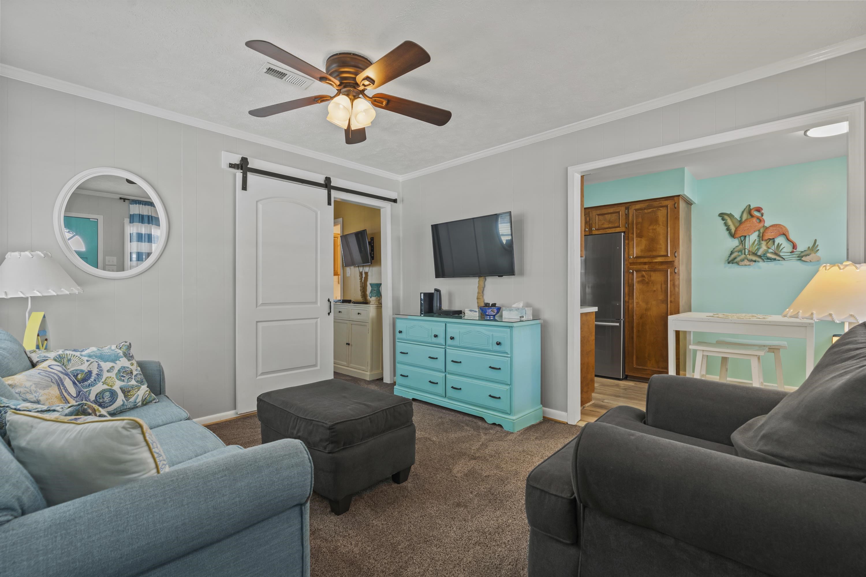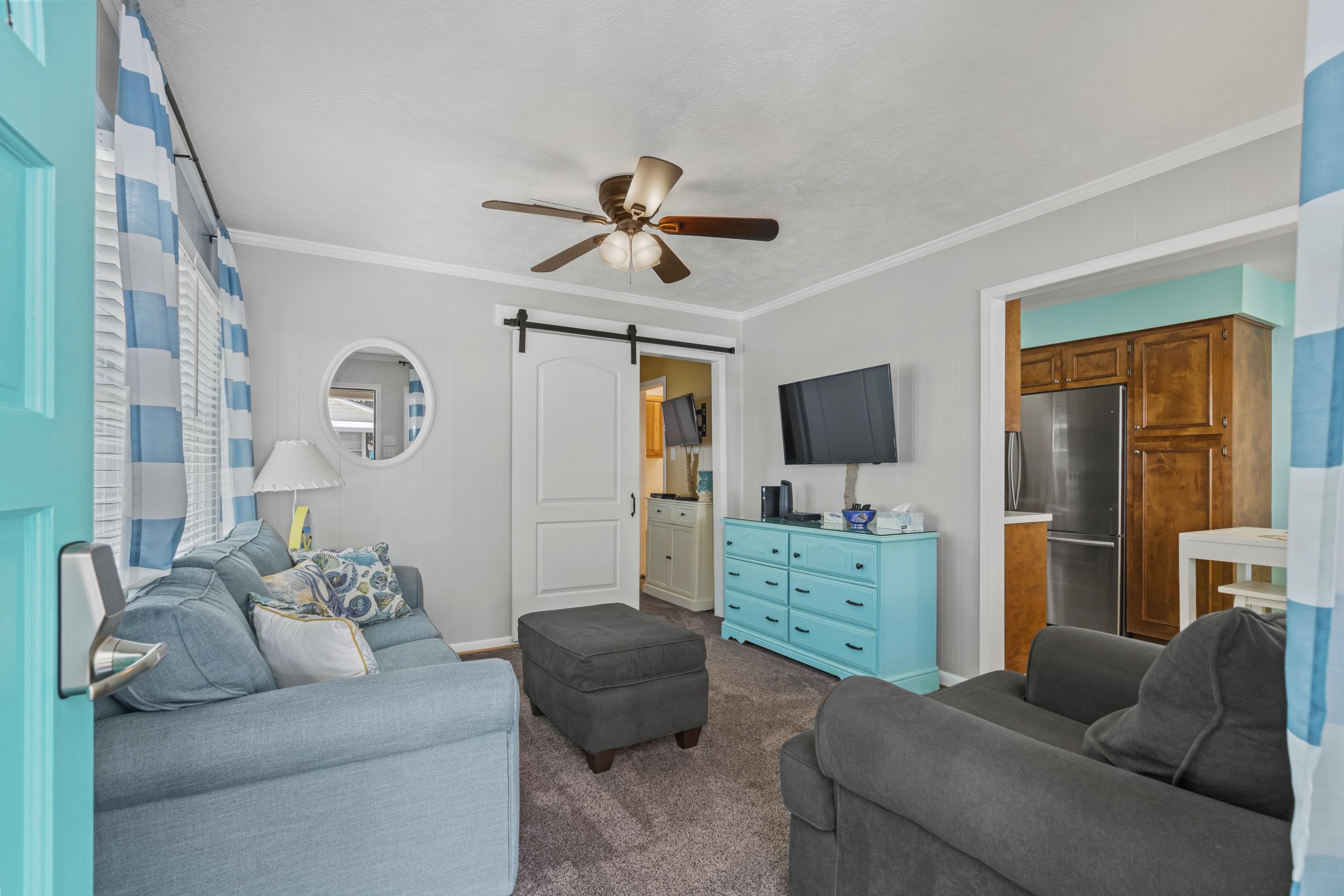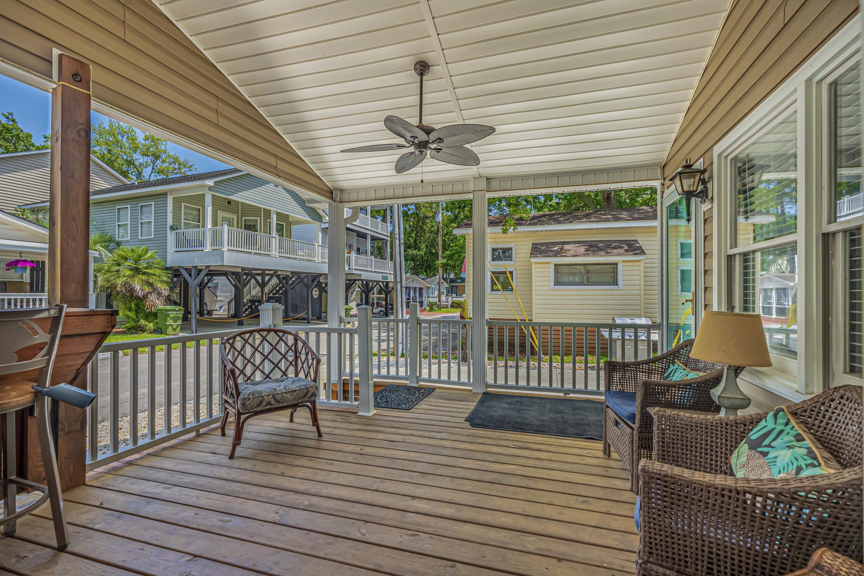 Comfort, elegance, and relaxation can be found here at site 1308 located within the gates of the award winning Ocean Lakes Family Campground. With 1 bedroom, 1 full bathroom and a spacious kitchen with stainless steel appliances, this home is perfectly situated on the south side of the campground. Home is close proximity to the beautiful Lake right at the end of the street! Home offers a spacious and open living room, a generously proportioned kitchen with plenty of counter and prep space, and a fully updated bathroom. On the exterior of the home, you will be sure to love the large covered front porch, the built in bar/eating area, a concrete driveway, and a spacious outdoor storage building. This home is perfectly situated for outdoor entertainment after those long days at the beach. The kitchen offers a sleeping "nook" at the bay window allowing plenty of space for everyone. The possibilities of this home are endless! Don't let this one pass-by! Home is conveniently located close to all the amazing amenities Ocean Lakes has to offer! Amenities included are indoor/outdoor pools, lazy river, waterpark, mini-golf, arcade, basketball courts, volleyball courts, and much more! Come check out this property today! All measurements are approximate and not guaranteed. Buyer responsible for verification. New water heaterApril2024