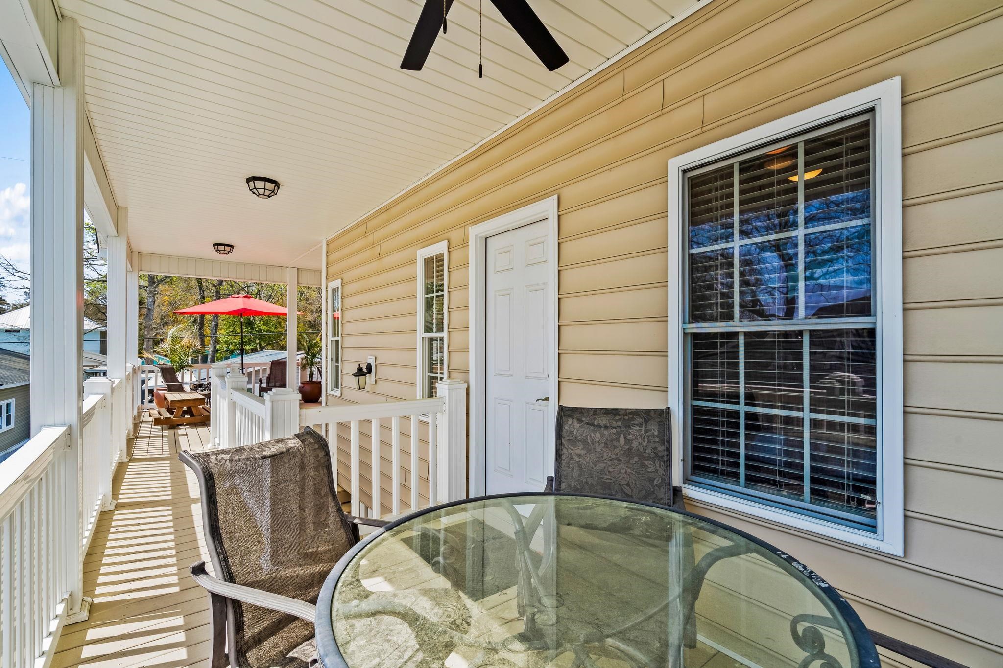 Welcome to 1447, this custom crafted home is a 3-bedroom 2 bath raised beach house. This home stands out with its southern charm and comfortable floorplan. Home has 3 spacious bays underneath for plenty of parking plus a bonus pay for golf cart parking. As you walk up the COVERED steps, you're have a large covered wrap around porch to sit back and relax. Home features hardwood flooring throughout, granite counter tops, vaulted ceilings in the living space, durable ceramic tile in the bathrooms, upgraded vinyl siding, and upgraded windows. The kitchen offers custom cabinets, granite counter tops, and an upgraded tile backsplash. With a split floor plan, the primary bedroom and bathroom is separate from the other two bedrooms. The primary bedroom has an exterior door that leads out to the back half of the covered porch. Two more spacious bedrooms, full bath #2 and washer/dryer. Home is conveniently located on the Southside of Ocean Lakes, close to all the amenities including indoor/outdoor pools, lazy river, waterpark, mini-golf, arcade, basketball courts, volleyball courts, and much more! Come check out this property today! All measurements are approximate and not guaranteed. Buyer responsible for verification.
