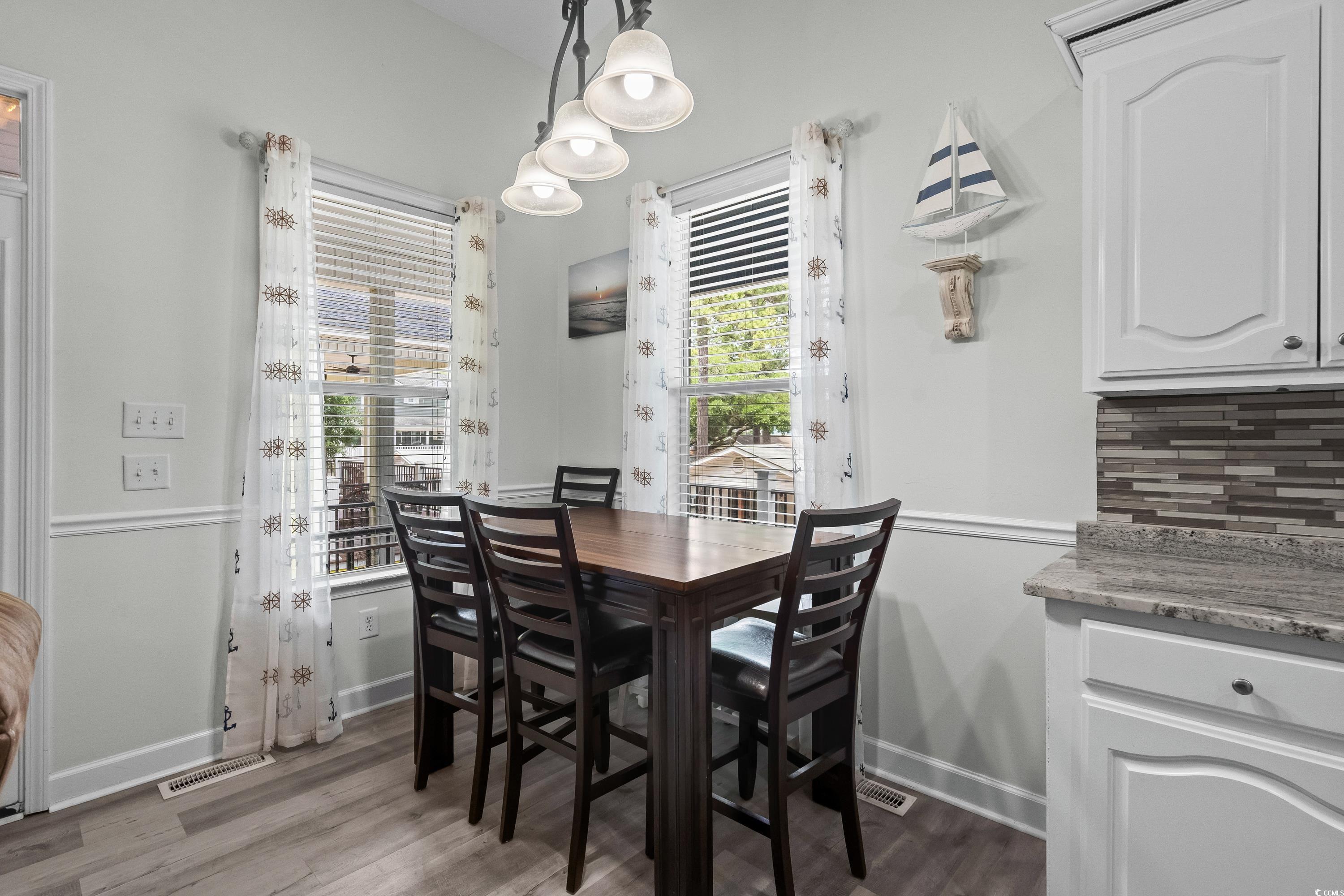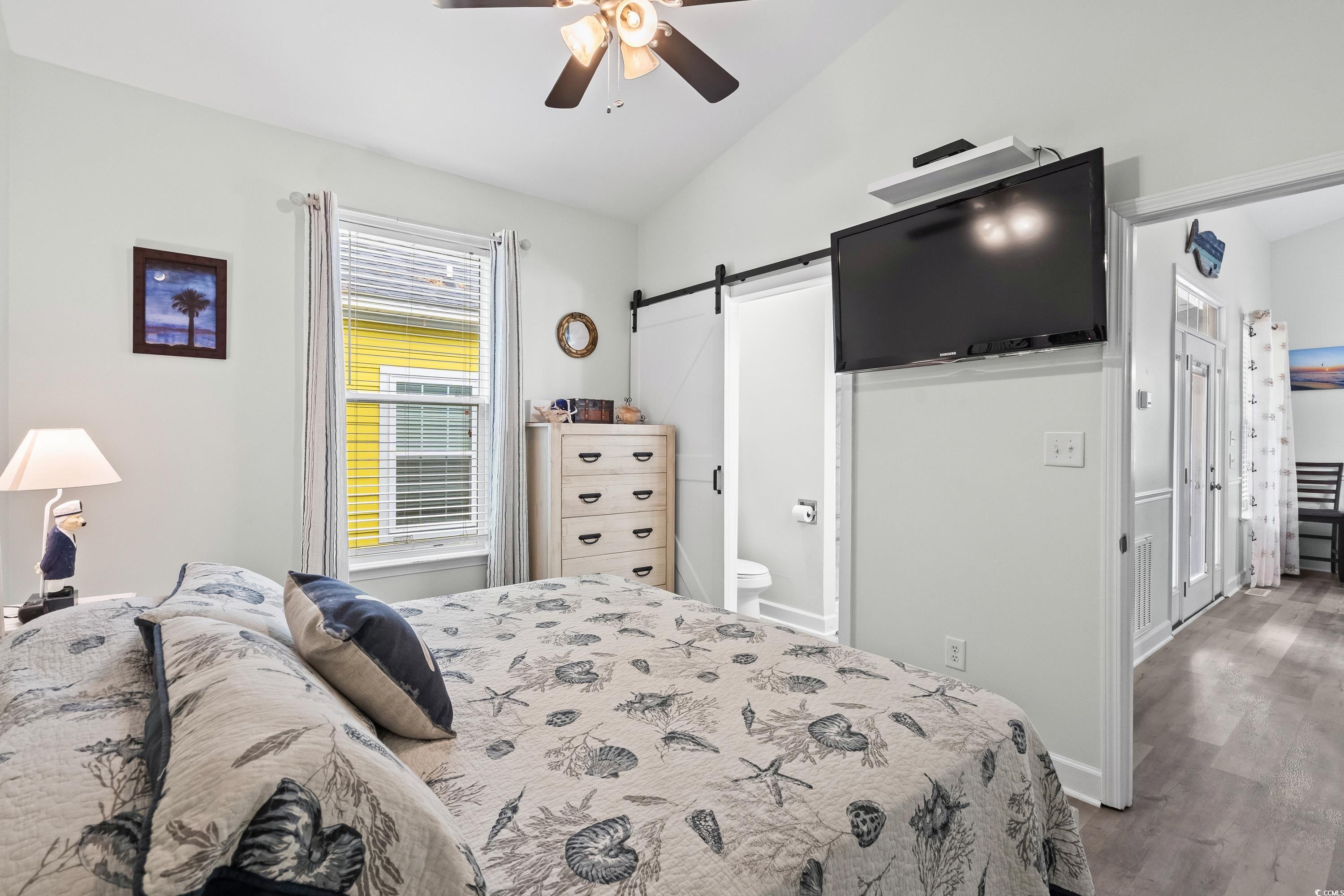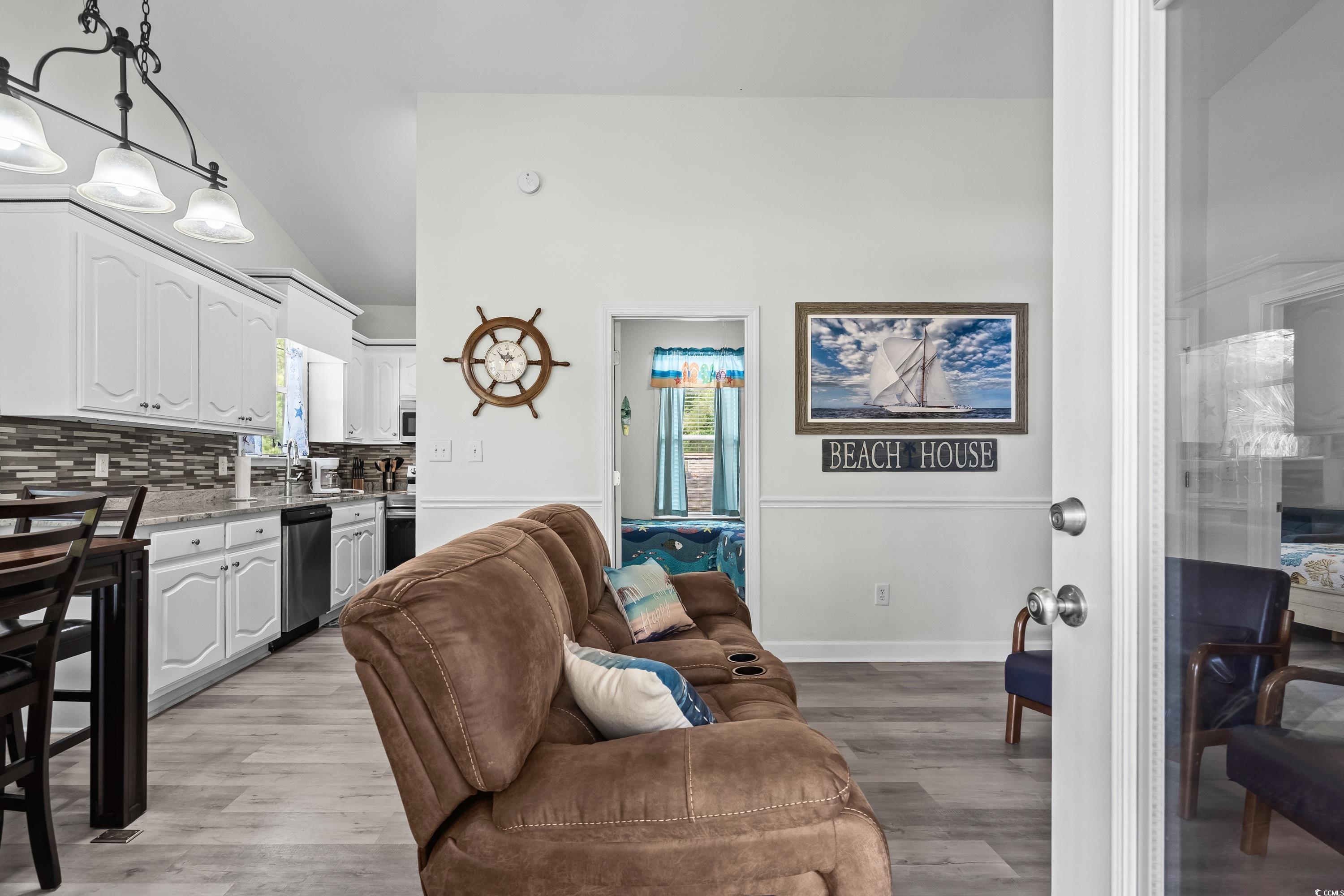 Welcome to site 1737 located in Ocean Lakes! This recently remodeled 3-bedroom 2 bath home has been updated to include new vinyl siding, new deck railings, windows, New roof in 2021, New HVAC 2024, interior repainted, new furniture, and decor. As you come up the covered steps you have a large deck that will have morning sun and afternoon shade. Entering the home you have a large open concept dining area and huge living room with electric fireplace. Off the dining area is the kitchen with granite counters, tile backsplash, and stainless steel appliances. Bedroom #1 has 2 twin beds, bedroom #2 has a queen bed, and both share full bath #1 with tub/shower combo. Primary bedroom has a king size bed and attached primary bath with walk-in shower with glass sliding door. Washer and dryer in located in the large shed/garage under the house.