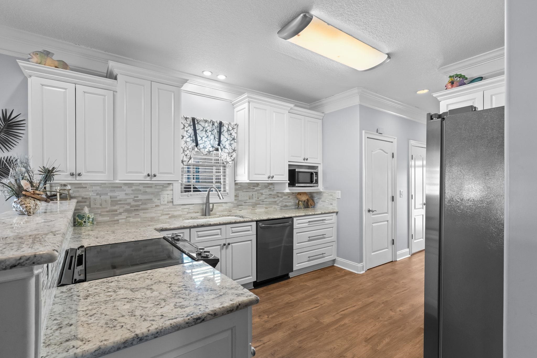 CUSTOM BUILT OCEAN VIEW RAISED BEACH HOUSE WITH HUGE WRAPAROUND COVERED DECKS AND ELEVATOR ON QUIET CUL-DE-SAC. Welcome to this stunning 5 bed/3 and 1/2 bath raised beach house with low maintenance, composite decking and heavy duty, vinyl shake siding on oversized lot in Ocean Lakes. This house is a family's vacation dream with tons of outdoor space for both entertaining and pure relaxation. The interior includes granite countertops, breakfast bar, stainless steel appliances, LVP flooring with a large primary bedroom and beautiful ensuite on the main level and four spacious bedrooms and two full bathrooms on the second level. Fantastic home! Perfect for vacation rentals, 2nd home or full-time residence. Sold fully furnished excluding a few personal items. NOW SHOWING! Measurements are not guaranteed and are the responsibility of buyers and/or their agent. There is no HOA in Ocean Lakes, each home is located on leased land with yearly lease, which is payed in two semiannual payments due in January and July. Amenities abound in Ocean Lakes' gated community and include almost a mile of white sand beach, 24 hour security, 7 fishing lakes, free trash pick-up, free cable TV, indoor/outdoor swimming pools, large water park/slides, lazy river, kid's splash zone, new dog park, new beachside coffee house and ice cream bar, playgrounds, full size basketball courts, miniature golf, fire pit, corn hole, shuffle board, horseshoes, ping-pong, Sandy's Down-under skatepark, recreation building, arcade, general store, golf cart rentals, Sandys Meet & Eat restaurant and more!