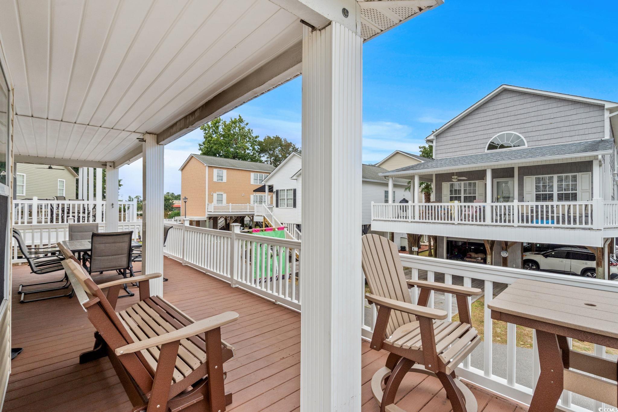 Welcome to 8072 in Ocean Lakes! This CORNER LOT North facing 4 bedroom 3 bath raised beach house is a must see, located in the desirable 8000 section of Ocean Lakes and being sold fully furnished. This incredible home has side steps leading to a large covered deck that wraps-around to the Eastside of the home, covered steps leading into this home, plenty of parking, and a golf cart garage. Entering inside this beauty is large living room to the right, dining area with high-top table with seating for 8 and reading nook with a recliner. Kitchen has granite counters, breakfast bar with seating for 2, plenty of cabinets, and pantry. The covered steps leads into the kitchen for easy access with groceries. First floor bedroom has a king size bed with attached bedroom with tub/shower combo. Upstairs is another HUGE primary bedroom with attached bath and private access to the upstairs deck. This bedroom has a king size bed and full bath has a tub/shower combo. Bedroom #3 has a queen bed with access to full bath #3 and bedroom #4 also has a queen bed. Full size washer/dryer is located upstairs across from full bath #3. Enclosed outdoor shower with hot and cold water is located on the Westside of the home, ground level. Don't delay, schedule your showing today!