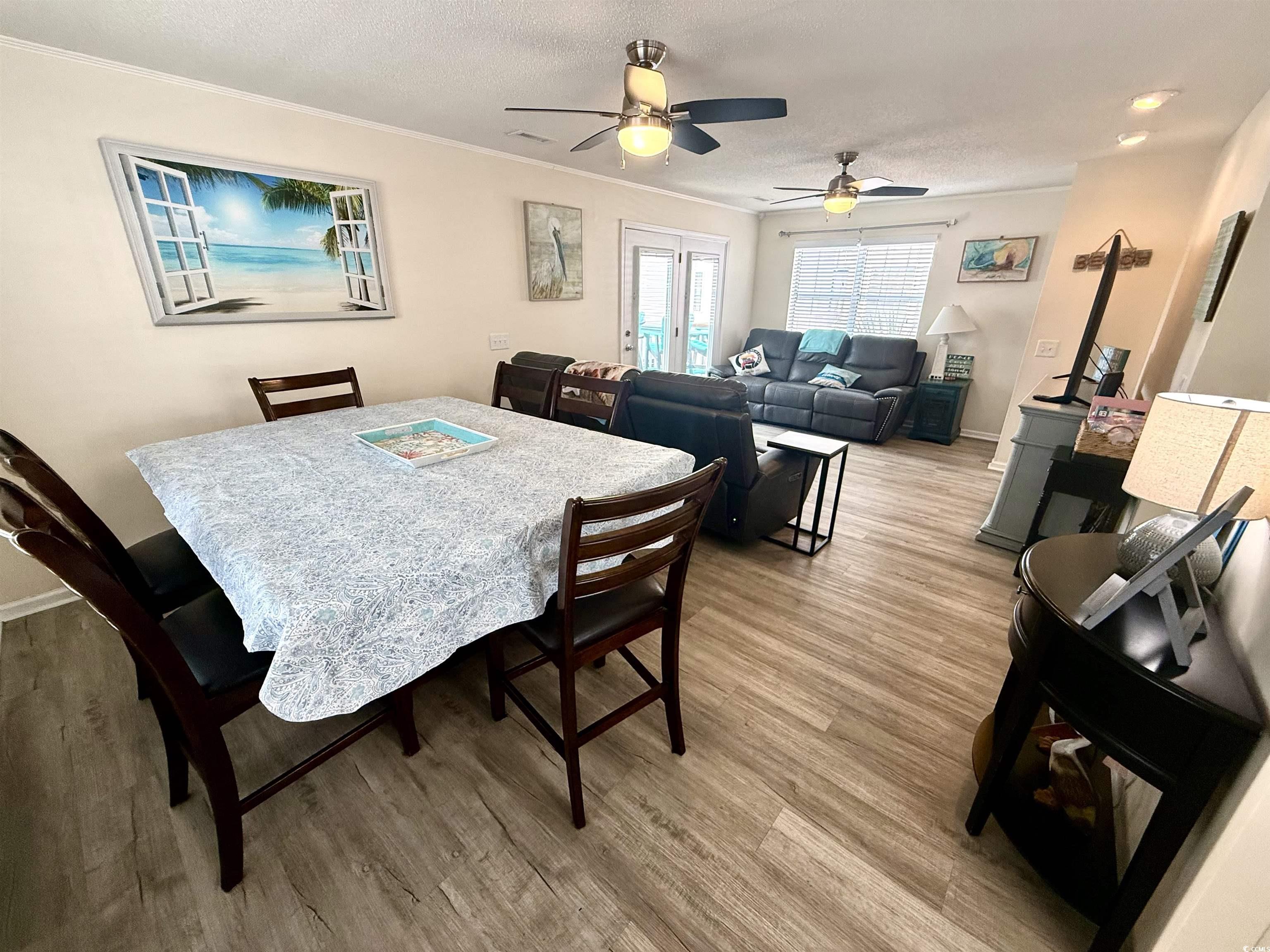 Amazing ocean views in desirable ocean front section of Ocean Lakes! This 2nd row ocean front section 2 story stilted beach home in Ocean Lakes has it all! 3 bedrooms and 3 full baths with additional sleeping accommodations in upper level flex space as well as a additional sleeping nook connected to primary suite. Home is sold fully furnished! 2 levels of decking to enjoy the incredible views! Great vacation rental property! Fully furnished main level boasts open floor plan, ceiling fans and stellar ocean views. Fully stocked kitchen with stove, microwave, and side by side refrigerator. Indoor dining options include dining space with 6 seat dining table as well as 4 seat table in eat in kitchen area. Family room boasts 2 large sofas with built in electric recliners and USB ports, electric fireplace, and smart tv. Main level furnished king sized bedroom with smart tv and ceiling fan. Large main level Jack and Jill full bathroom with access from hallway and bedroom and includes full size side by side washer and dryer in laundry closet. All appliances included. Huge main level wrap around ocean facing deck with amazing views with outdoor seating, uncovered space to enjoy the sun, dining and covered staircase from ground level to main level entry into home. Upper level has a huge fully furnished ocean view primary king sized bedroom with vaulted ceiling, ceiling fan, ocean views, smart tv, en-suite full bathroom, accessory sleeping nook with twin bed and smart TV, as well as direct access to wrap around upper level private deck with beautiful ocean views and outdoor seating. The second level also offers a guest bedroom with vaulted ceiling, 2 queen beds, dresser and smart TV. Second level flex space in the center of home features a twin over full bunk, dresser, smart TV, ceiling fan, and direct access to upper level wrap around deck with ocean views and another full bathroom. The huge ground level entertainment space features a bench swing, dining, seating, gas grill, private outdoor hot/cold shower, covered parking, storage and 100 square foot storage garage. The award winning gated community of Ocean Lakes Family Campground offering countless amenities including pristine beaches, a waterpark with indoor and outdoor pools, lazy river, water slides, splash zone, putt putt golf, arcade, recreation center, shopping, nature center, dog park, multiple lakes, golf cart rentals, 24 hour security, guest services, food service and more makes this home a fantastic get away for your personal use and/or vacation rental.