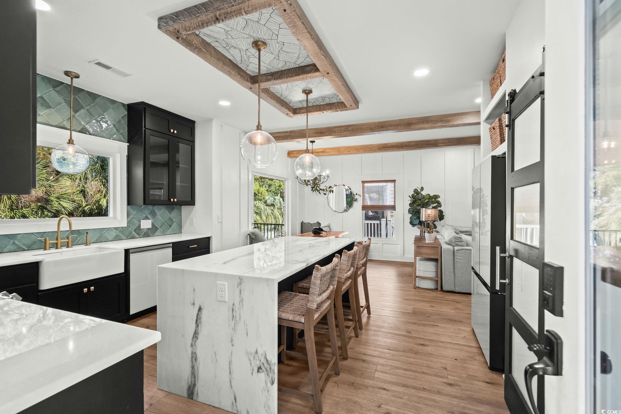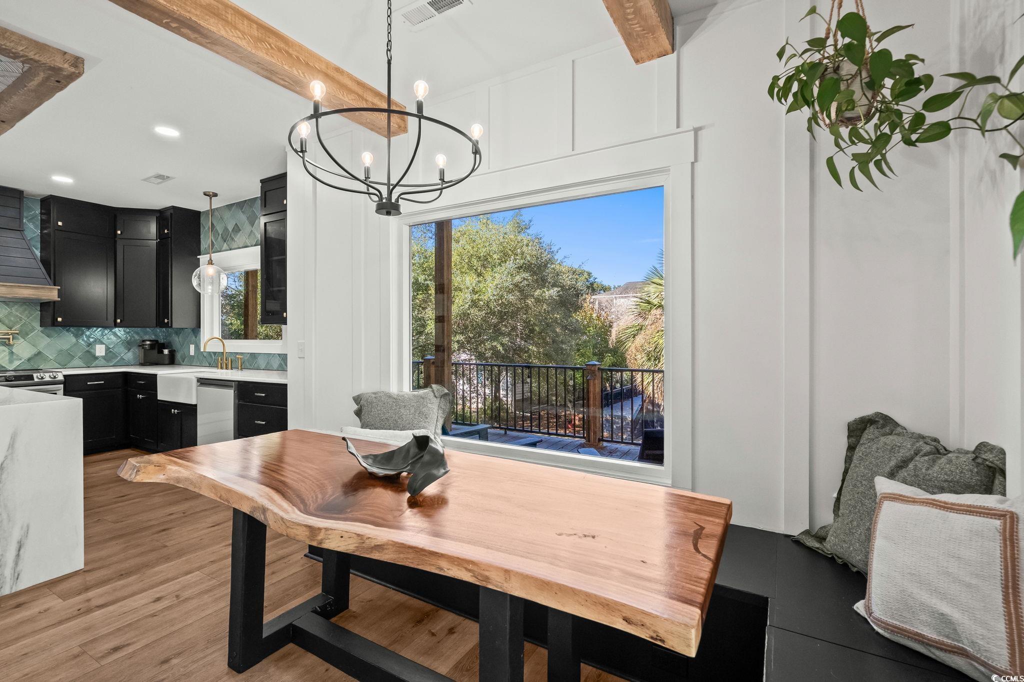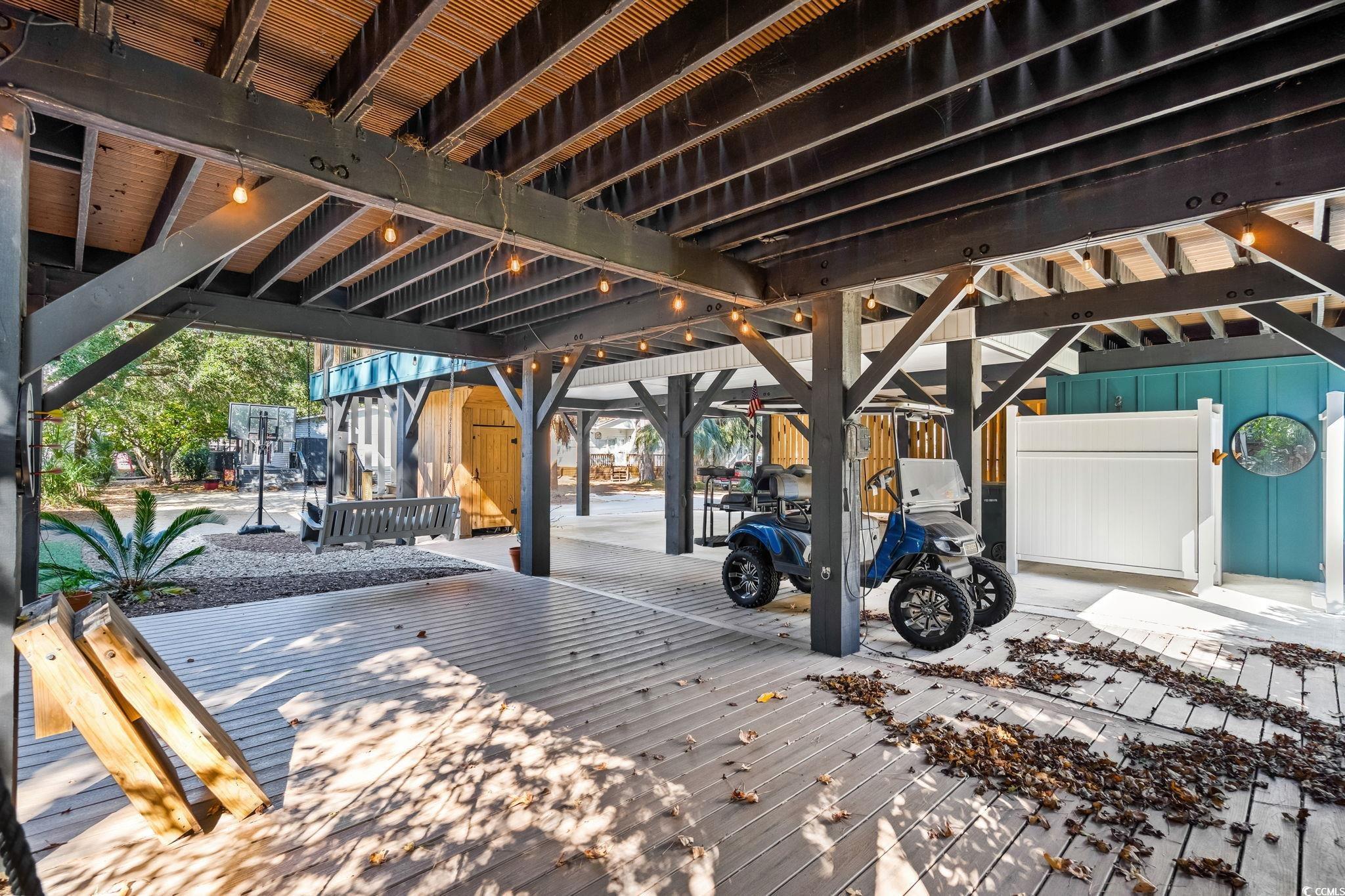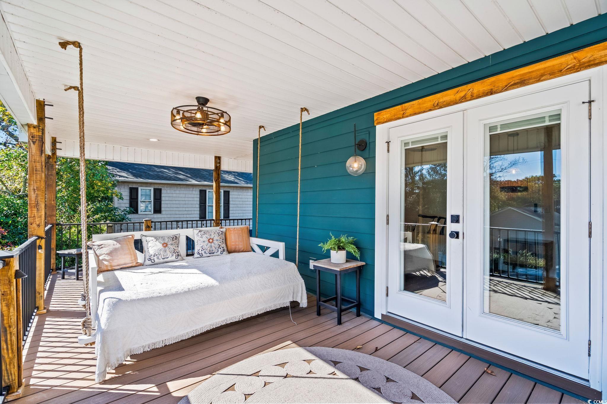 Welcome to MH-44b, nestled on one of the quietest streets in Ocean Lakes, this stunning custom-designed beach house offers the perfect blend of coastal charm and mountain retreat aesthetics. Built in 2023, this 3-bedroom, 3-bathroom home (can be 4-bedrooms if the upstairs den is converted to a bedroom) is a sanctuary for families seeking relaxation and adventure. As you approach, the exterior’s unique design, featuring exposed distressed wooden timbers, gives a warm, rustic tone. The expansive outdoor entertainment areas, with over 3,000 square feet of durable Trex decking, invite you to unwind and enjoy the serene surroundings. Designed for gathering, the outdoor oasis includes a full kitchen, dining space, and game area. The family entertainment area features a motorized drop-down TV, outdoor lighting, and surround sound speakers. Step the primary suite located on the 2nd floor, where tranquility awaits. French doors open to a private decking area with a 6-person saltwater Hot Springs hot tub and a full-size rope bed swing—ideal for relaxing after a day at the beach. Inside, the home offers spacious rooms designed for family comfort and functionality. The open-concept layout creates a welcoming atmosphere, while thoughtful design elements make this home stand out in Ocean Lakes. Picture your children playing ball in the street, surrounded by the safety and tranquility of this peaceful gated community. This home isn’t just a property; it’s a lifestyle—a place for quality time, comfort, and unforgettable experiences. Don’t miss the chance to make this beach house your own. It’s not just a home; it’s a place to create lasting memories. Come experience the extraordinary lifestyle this Ocean Lakes property offers!