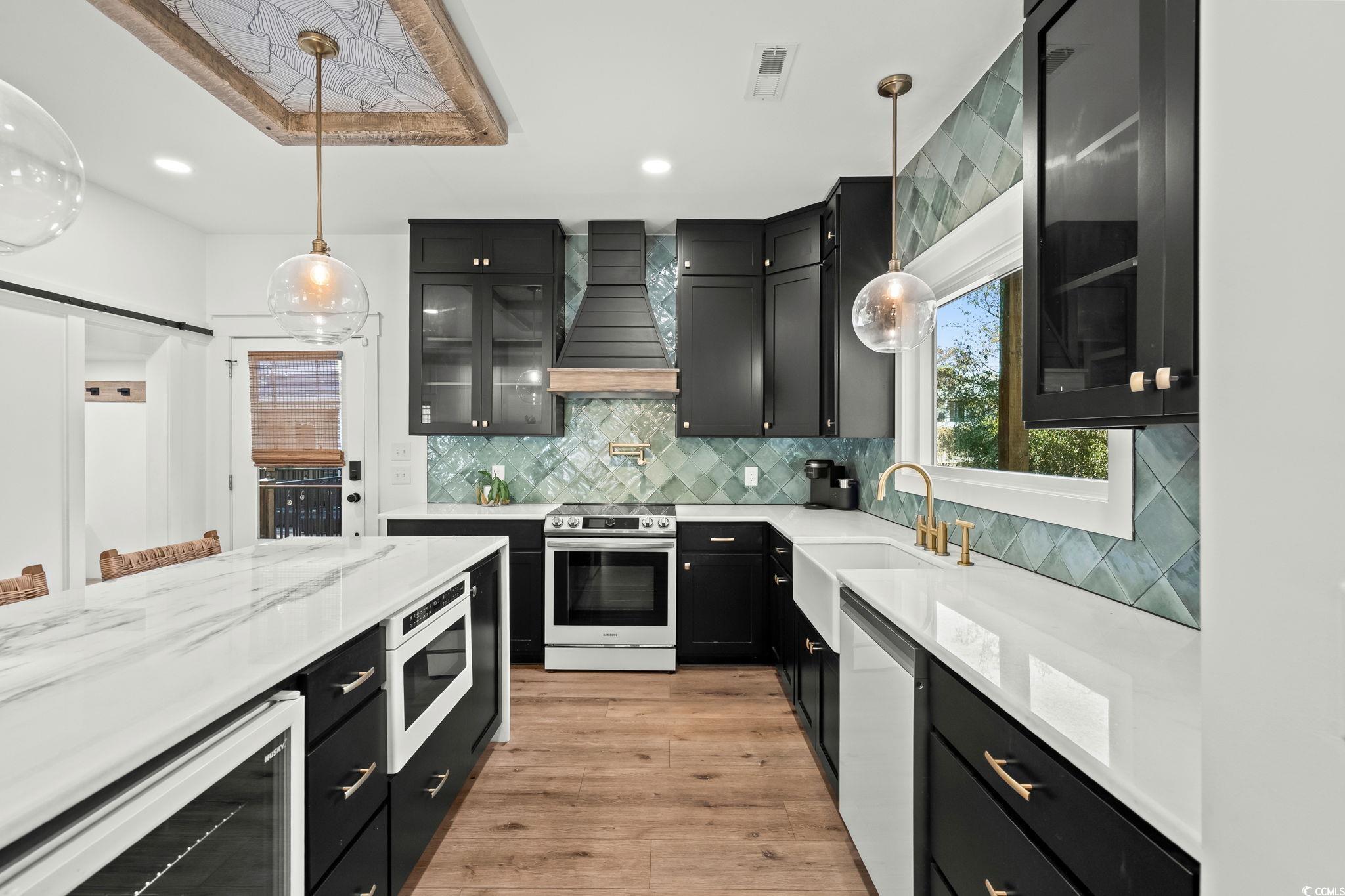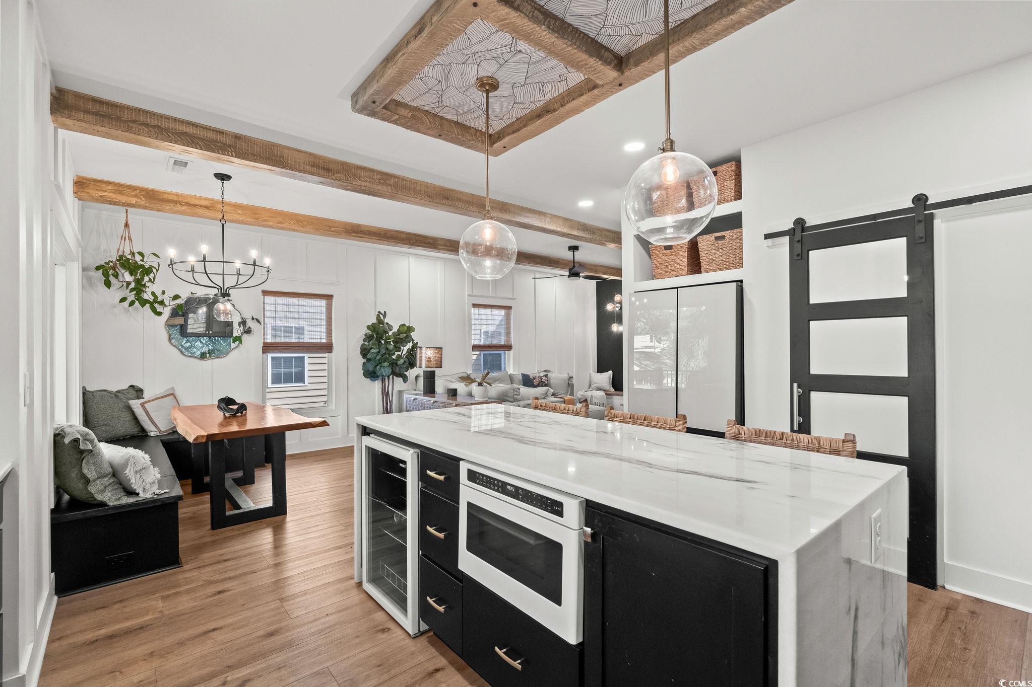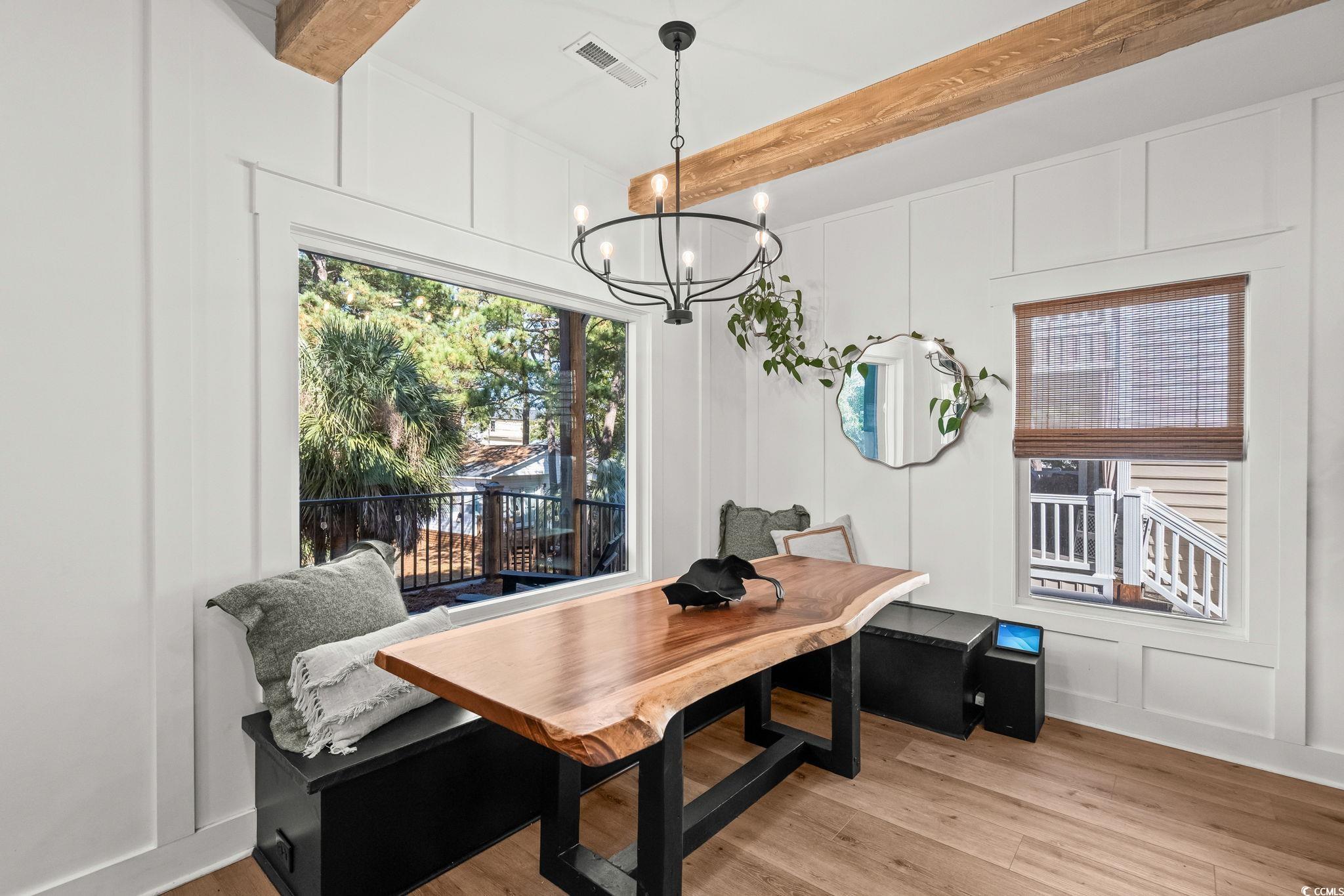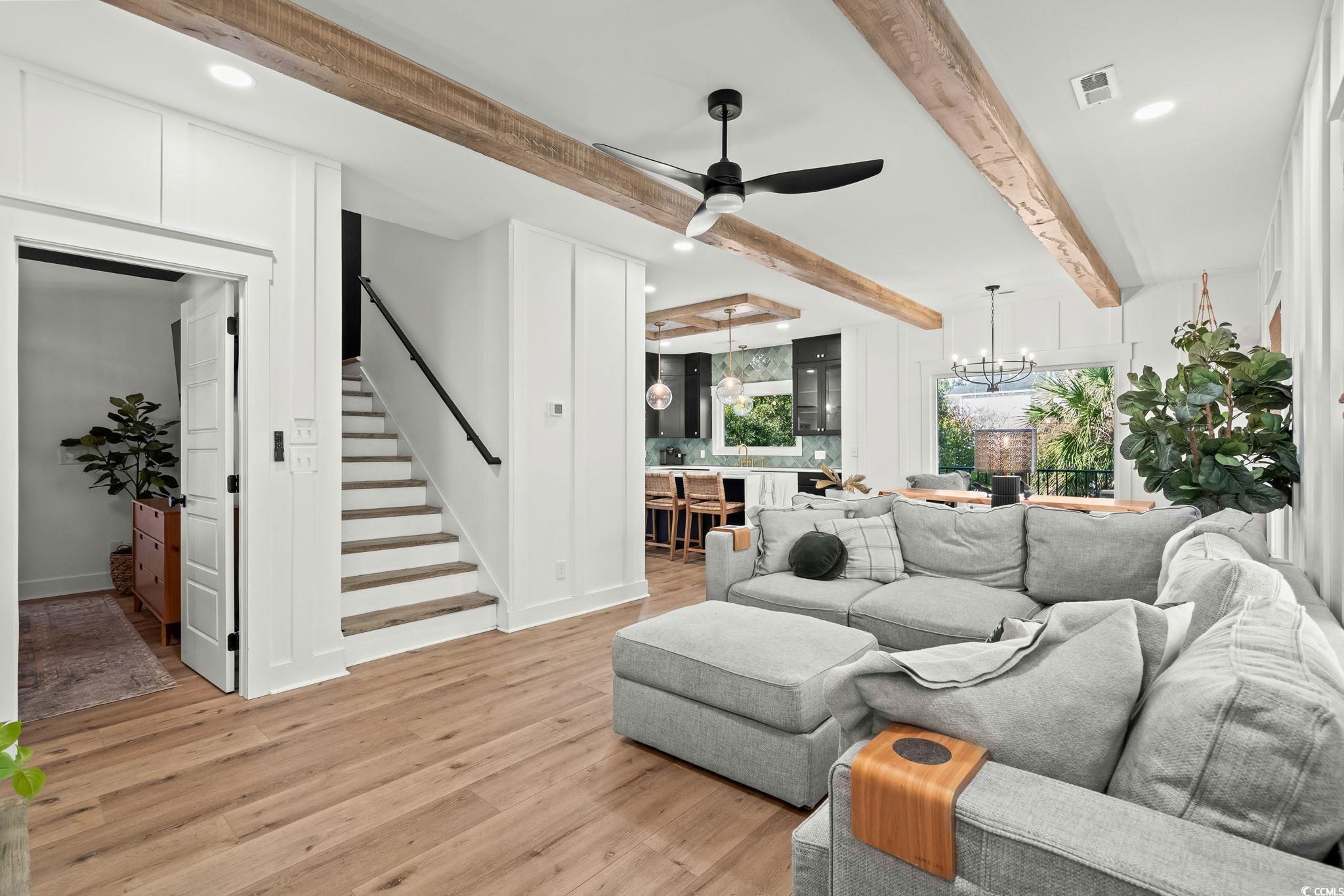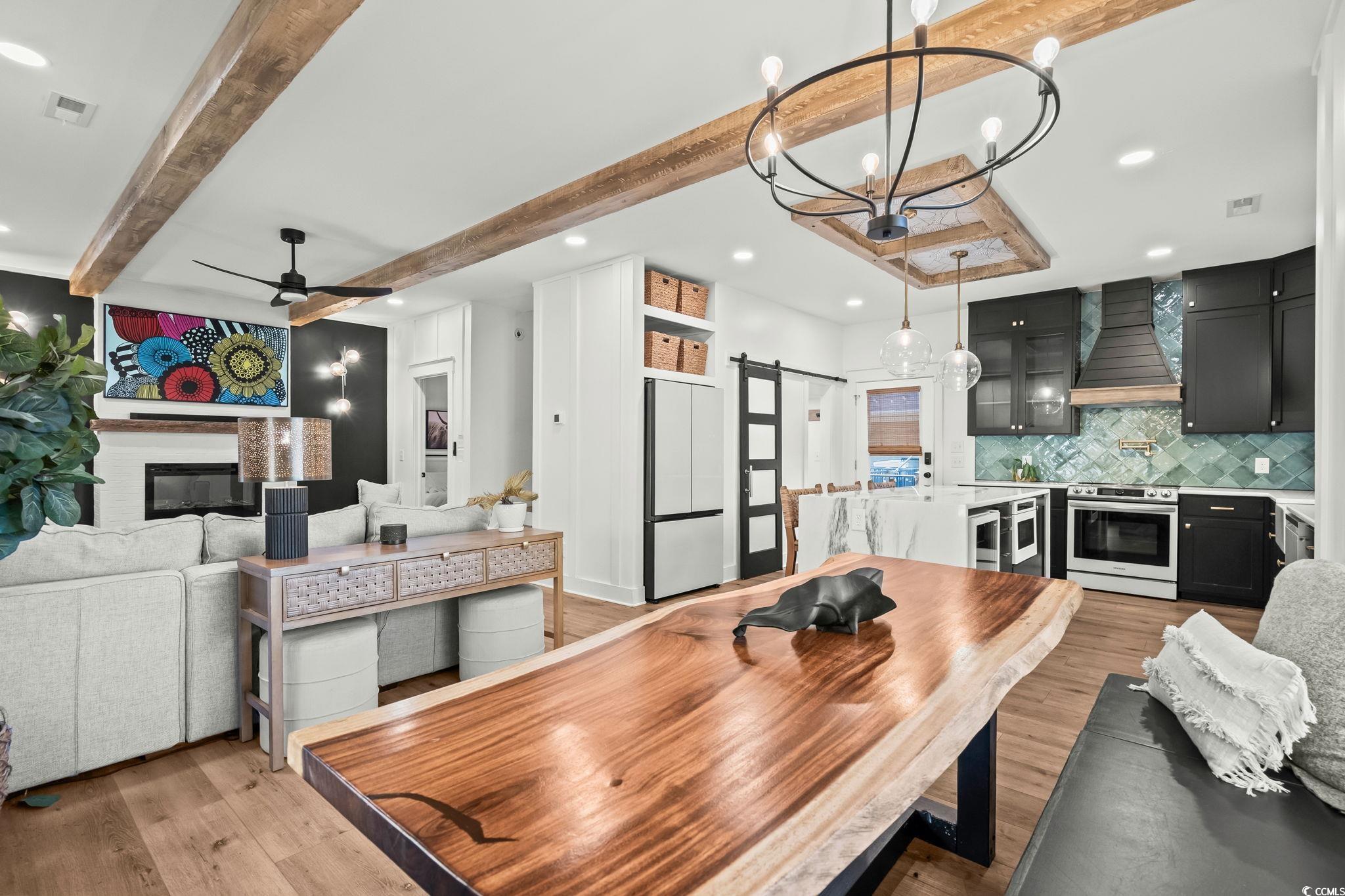 Welcome to MH-44b, nestled on one of the quietest streets in Ocean Lakes, this stunning custom-designed beach house offers the perfect blend of coastal charm and mountain retreat aesthetics. Built in 2023, this 3-bedroom, 3-bathroom home (can be 4-bedrooms if the upstairs den is converted to a bedroom) is a sanctuary for families seeking relaxation and adventure. As you approach, the exterior’s unique design, featuring exposed distressed wooden timbers, gives a warm, rustic tone. The expansive outdoor entertainment areas, with over 3,000 square feet of durable Trex decking, invite you to unwind and enjoy the serene surroundings. Designed for gathering, the outdoor oasis includes a full kitchen, dining space, and game area. The family entertainment area features a motorized drop-down TV, outdoor lighting, and surround sound speakers. Step the primary suite located on the 2nd floor, where tranquility awaits. French doors open to a private decking area with a 6-person saltwater Hot Springs hot tub and a full-size rope bed swing—ideal for relaxing after a day at the beach. Inside, the home offers spacious rooms designed for family comfort and functionality. The open-concept layout creates a welcoming atmosphere, while thoughtful design elements make this home stand out in Ocean Lakes. Picture your children playing ball in the street, surrounded by the safety and tranquility of this peaceful gated community. This home isn’t just a property; it’s a lifestyle—a place for quality time, comfort, and unforgettable experiences. Don’t miss the chance to make this beach house your own. It’s not just a home; it’s a place to create lasting memories. Come experience the extraordinary lifestyle this Ocean Lakes property offers!