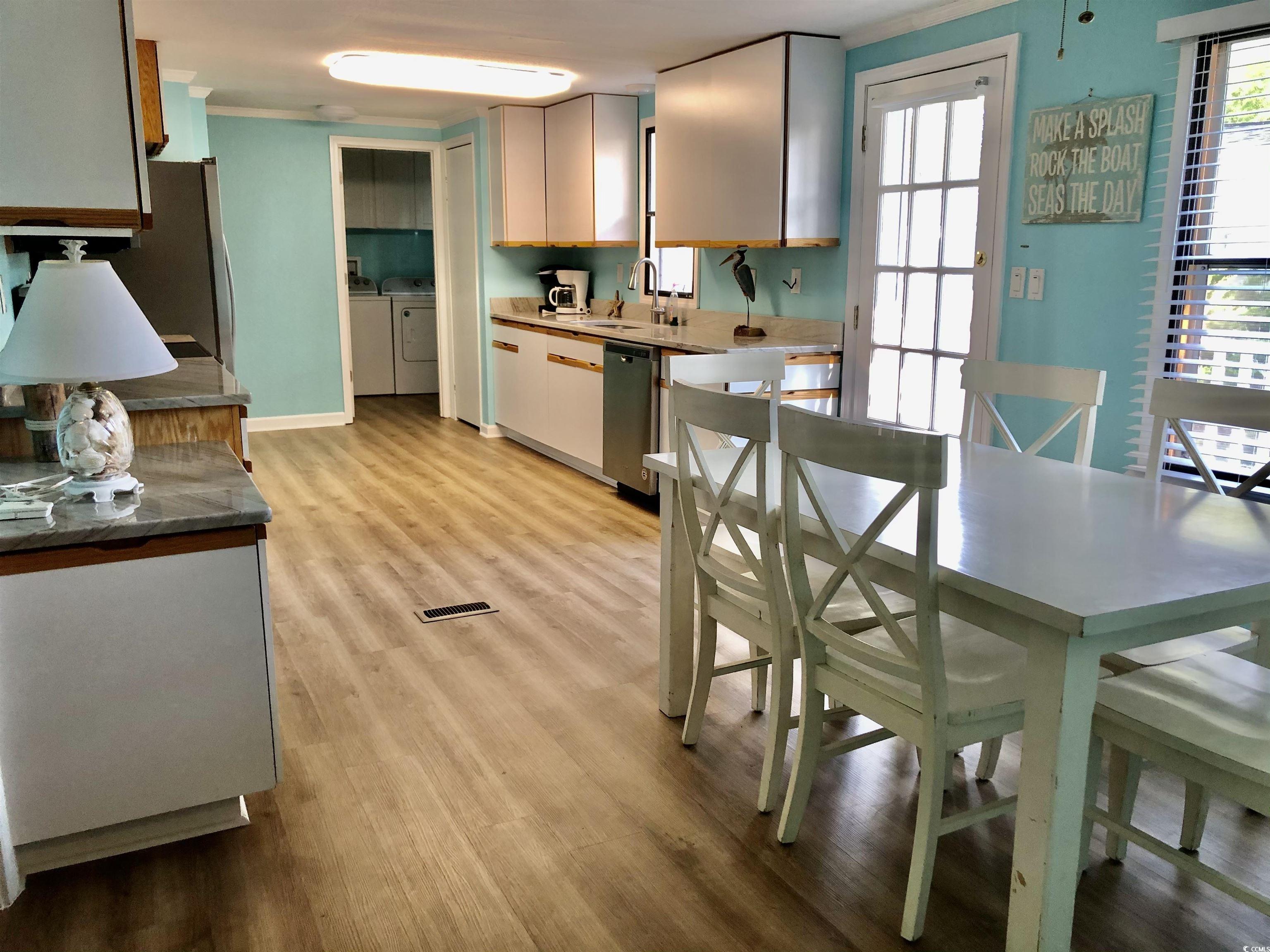 The outdoor living space in this home is something you have to see to believe with seating 20+ people! This handicap accessible home with a fantastic rental history both during and off season, would be a great investment, second home or primary residence. Two bedrooms have deck/porch access to provide privacy for multi-family vacationers. Two bedrooms also have en-suite baths. This is a mobile home that has been converted into a house and has a wheel chair ramp as well as other handicap accessibilities. Bedrooms have one king, one queen, one double and two twin beds. Living room has a queen size pull out sofa recently added. Large galley kitchen with many cooking tools make cooking from home easy and cost effective for vacation! This house is charming and has been renovated with granite counters and bright fun colors throughout! This house is located in the MH section of Ocean Lakes on a large lot with great parking for at least 3 cars. Laundry room in the home also includes a second refrigerator. Ocean Lakes campground has beautiful beaches, a 3 acre water park and they have endless games and activities for people of all ages. Hula and magic shows, Karaoke, Dive-in movies, skate parks, indoor pools, church, grocery store, putt putt, arcade, rec center, etc are just a few things this Super Fun Campground offers without even leaving the community!