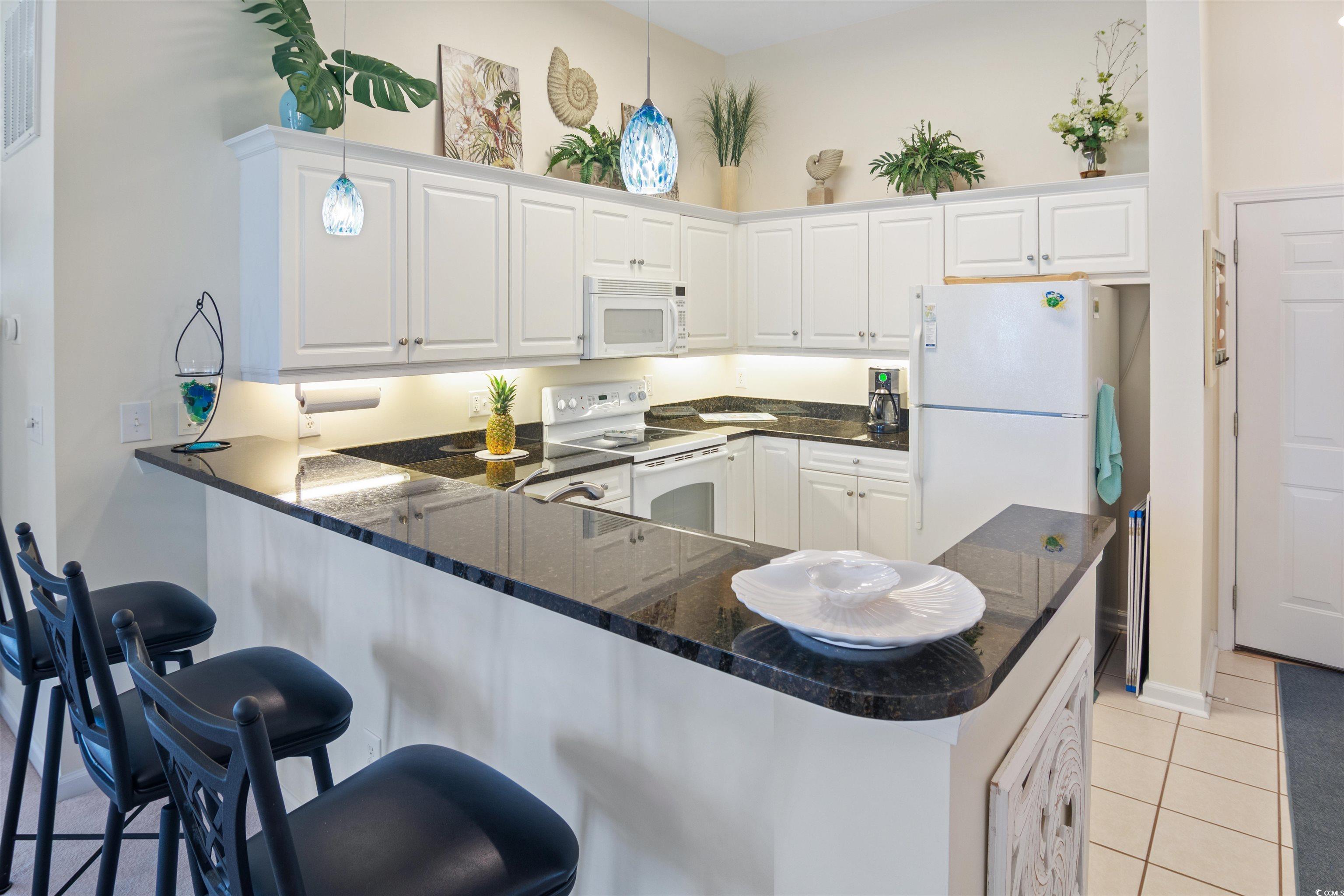 Coastal Living at Its Finest in Ocean Keyes. Welcome to your dream beach retreat in the prestigious, gated community of Ocean Keyes, ideally situated just east of Highway 17 and a short stroll from the beach and the vibrant Main Street in North Myrtle Beach. This beautifully maintained Seashore Villas corner condo offers the perfect blend of luxury, comfort, and convenience. 3 spacious bedrooms and 2 full bathrooms, providing ample space for family and guests. Approximately 1,300 sq ft of open-concept living, featuring vaulted ceilings and abundant natural light. All windows have plantation shutters! Beautiful bright kitchen with granite counters has plenty of storage and features a large breakfast bar. Enjoy serene pool views from your private, screened-in porch—perfect for morning coffee or evening relaxation. Plush carpeting throughout and tile in the kitchen and baths. Tastefully furnished with modern décor, making it move-in ready. HVAC Air handler replaced in 2022, Compressor replaced in 2015. Hot Water Heater replaced in 2018. Ocean Keyes provides access to six outdoor pools and hot tubs for ultimate relaxation, state-of-the-art fitness center, tennis courts, and walking trails. This is a gated community with 24/7 security for peace of mind. Just a short walk or golf cart ride to the beach, dining, shopping, and entertainment options on Main Street. Experience the best of coastal living in Ocean Keyes—a community known for its upscale amenities and unbeatable location. Whether you're seeking a permanent residence, vacation home, or investment property, this condo is a must-see.