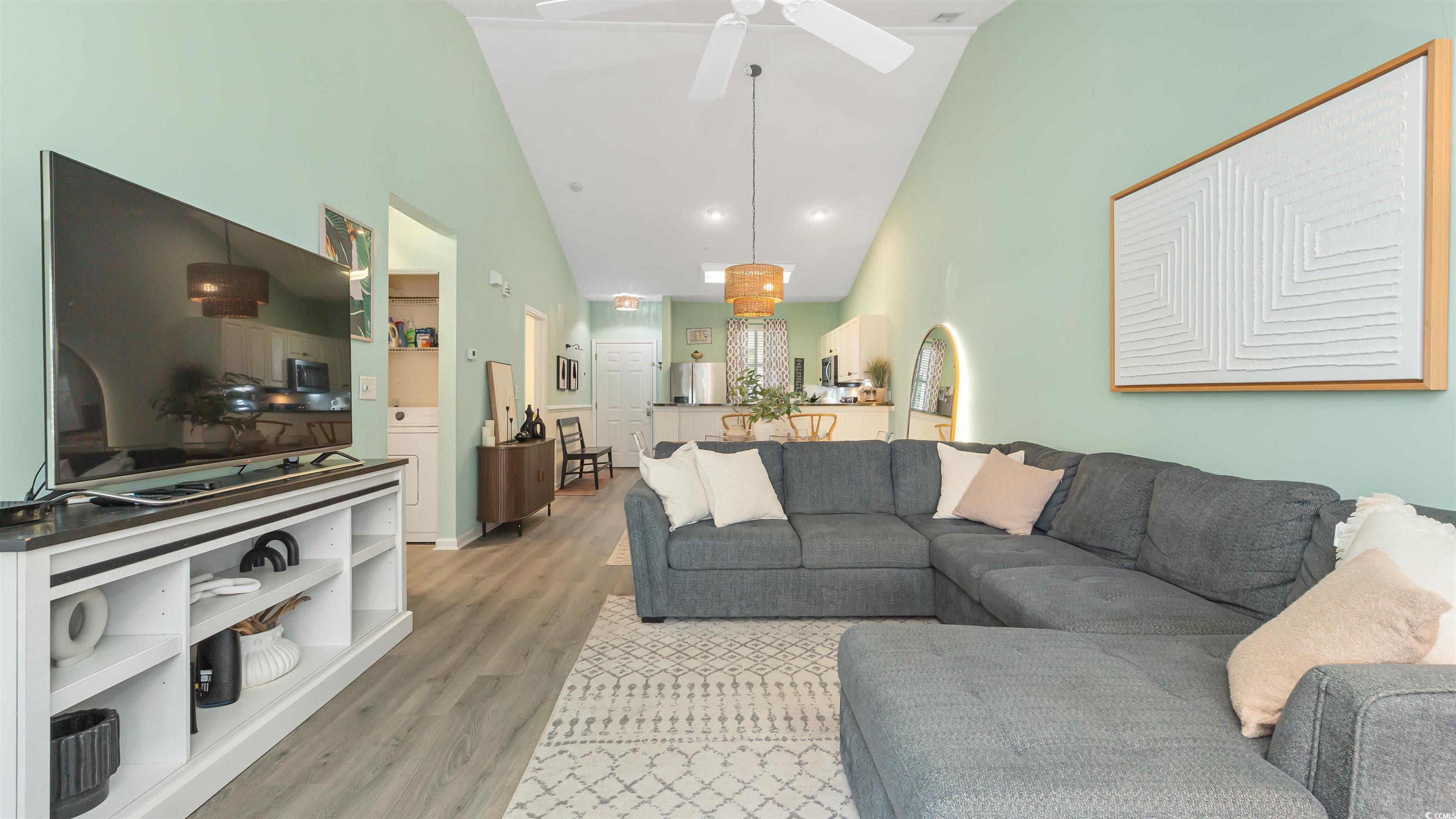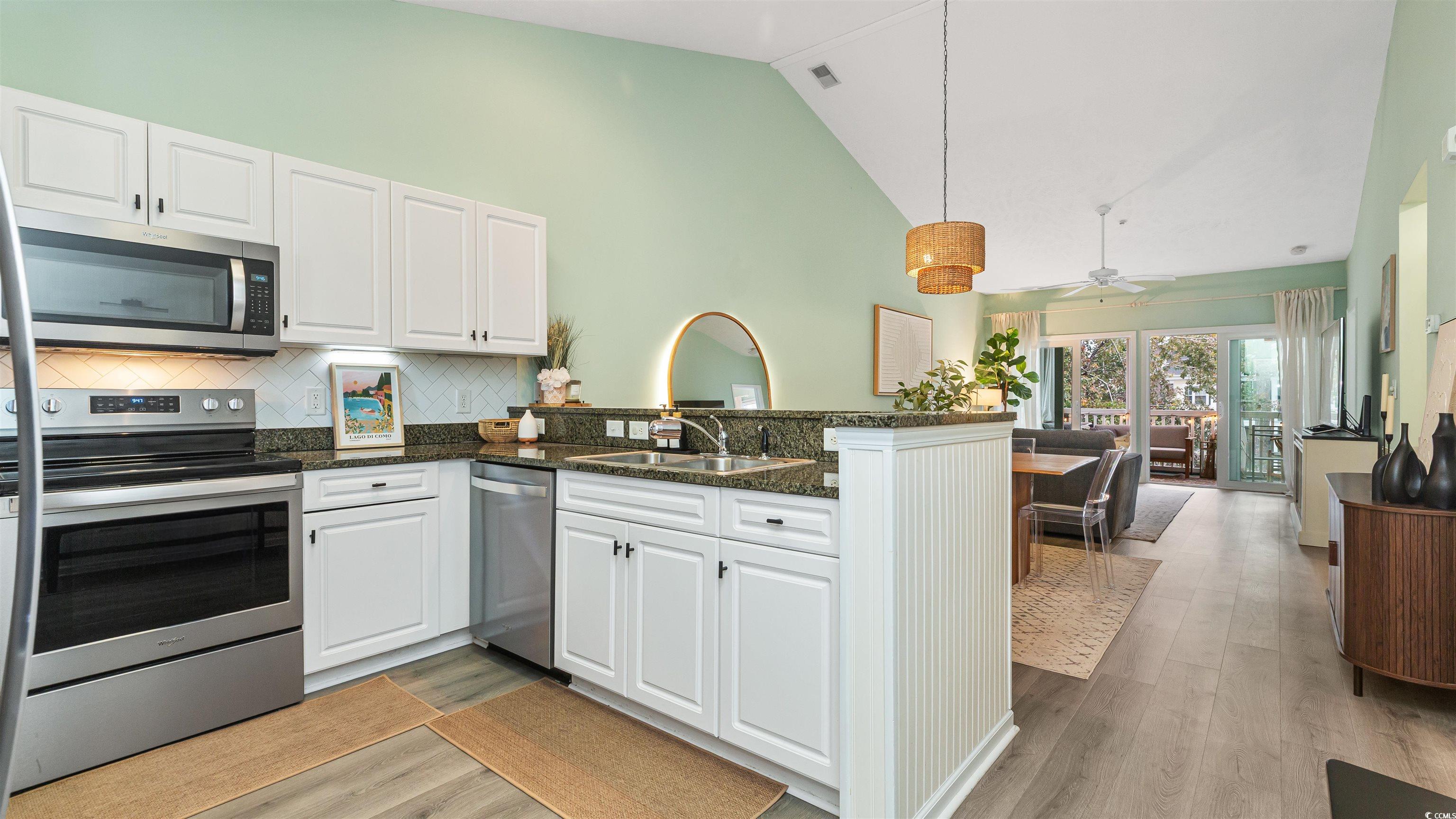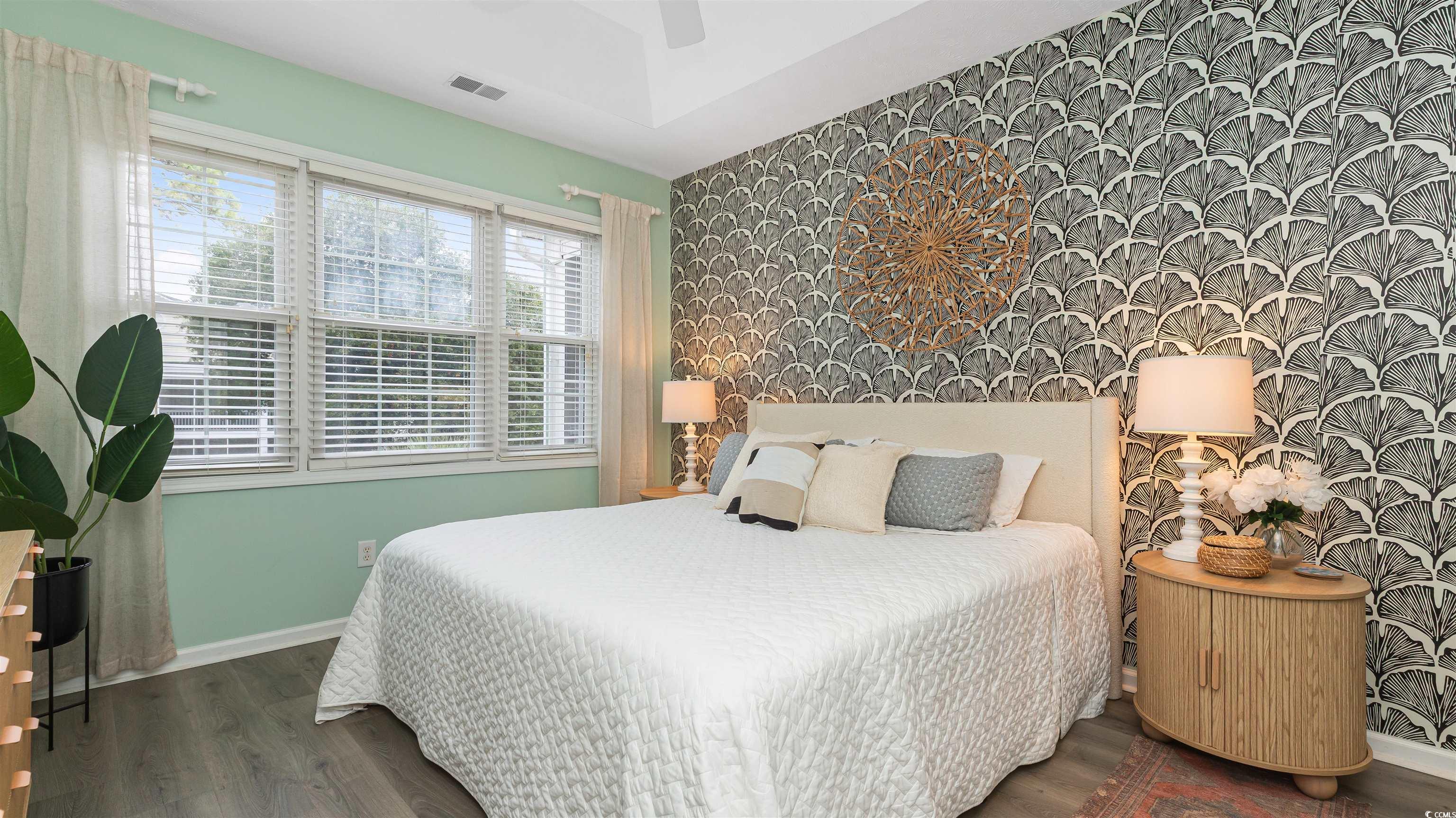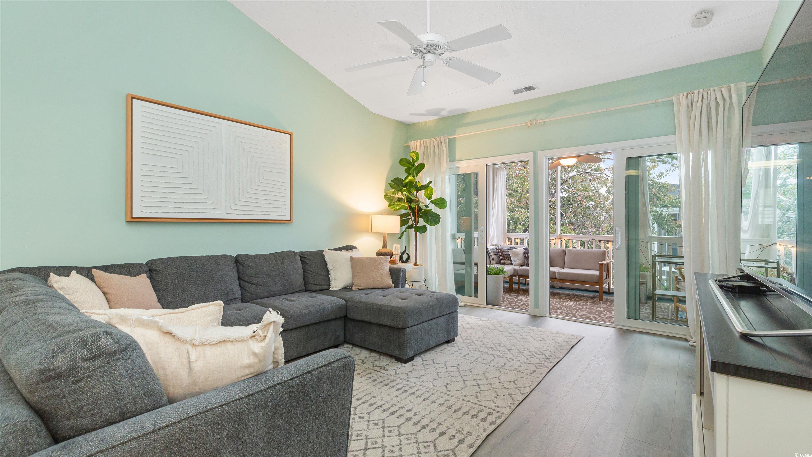 Stylish Coastal Condo Overlooking the Pool, Just Two Blocks from the Beach! Welcome to your turnkey coastal retreat in the gated community of Ocean Keyes, one of North Myrtle Beach’s most desirable neighborhoods where short-term rentals and golf carts are allowed. This top-floor condo exudes style and comfort with vaulted ceilings, granite countertops, and designer furnishings that make every room feel like a Miami-esque bungalow by the sea. The open-concept layout connects the kitchen, dining, and living spaces, all filled with natural light and coastal flair. Step out onto the screened-in balcony to enjoy peaceful views of the pool and mature trees, perfect for morning coffee or evening cocktails. Recent updates include new kitchen appliances (2021), new flooring (2023), and a brand-new HVAC (2025), ensuring comfort and efficiency for years to come. The primary suite offers a private retreat, and the guest bedroom is ideal for friends or family. Ocean Keyes is known for its resort-style amenities including six pools, hot tubs, a fitness center, tennis and pickleball courts, walking trails, grilling areas, and 24-hour security. You’re just two blocks from the sand and one block from iconic Main Street, home to the Shag dance, live music, and local festivals. Whether you’re seeking a primary home, vacation getaway, or income-producing investment with excellent rental ROI potential, this property checks every box. Offered fully furnished, it’s ready for you or your renters to move right in.