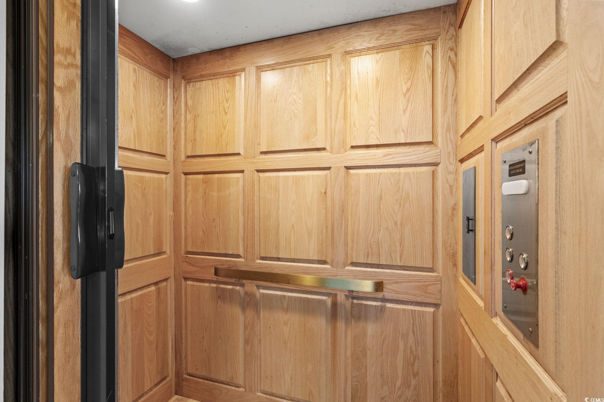 Welcome to coastal luxury living in the highly sought-after gated community of Ocean Keyes in North Myrtle Beach! RARE FIND!!! GOLF CART INCLUDED WITH ACCEPTABLE CONTRACT!!! This stunning 3-bedroom, 2.5-bath lakefront townhome offers three stories of beautifully designed space, complete with a private interior 3-stop elevator and LVP flooring throughout. The ground floor features a spacious two-car garage with ample storage areas, while the main level boasts an open-concept layout with a bright and inviting living room, dining area, kitchen and a screened porch overlooking the lake. The spacious kitchen offers granite countertops, a breakfast bar, pantry, and dinette area, along with a balcony perfect for morning coffee. Upstairs, the master suite features a tray ceiling and offers a serene retreat with a covered balcony showcasing peaceful water views, plus a large ensuite bath featuring dual sinks, a jetted tub, and a separate walk-in shower. Two additional bedrooms, also with tray ceilings, share a well-appointed guest bath with a walk-in shower. Enjoy tranquil views of the lake and fountain from both the screened porch and master balcony. Sold furnished and including a golf cart, this home is ready for you to move in and start enjoying the best of the beach lifestyle!
