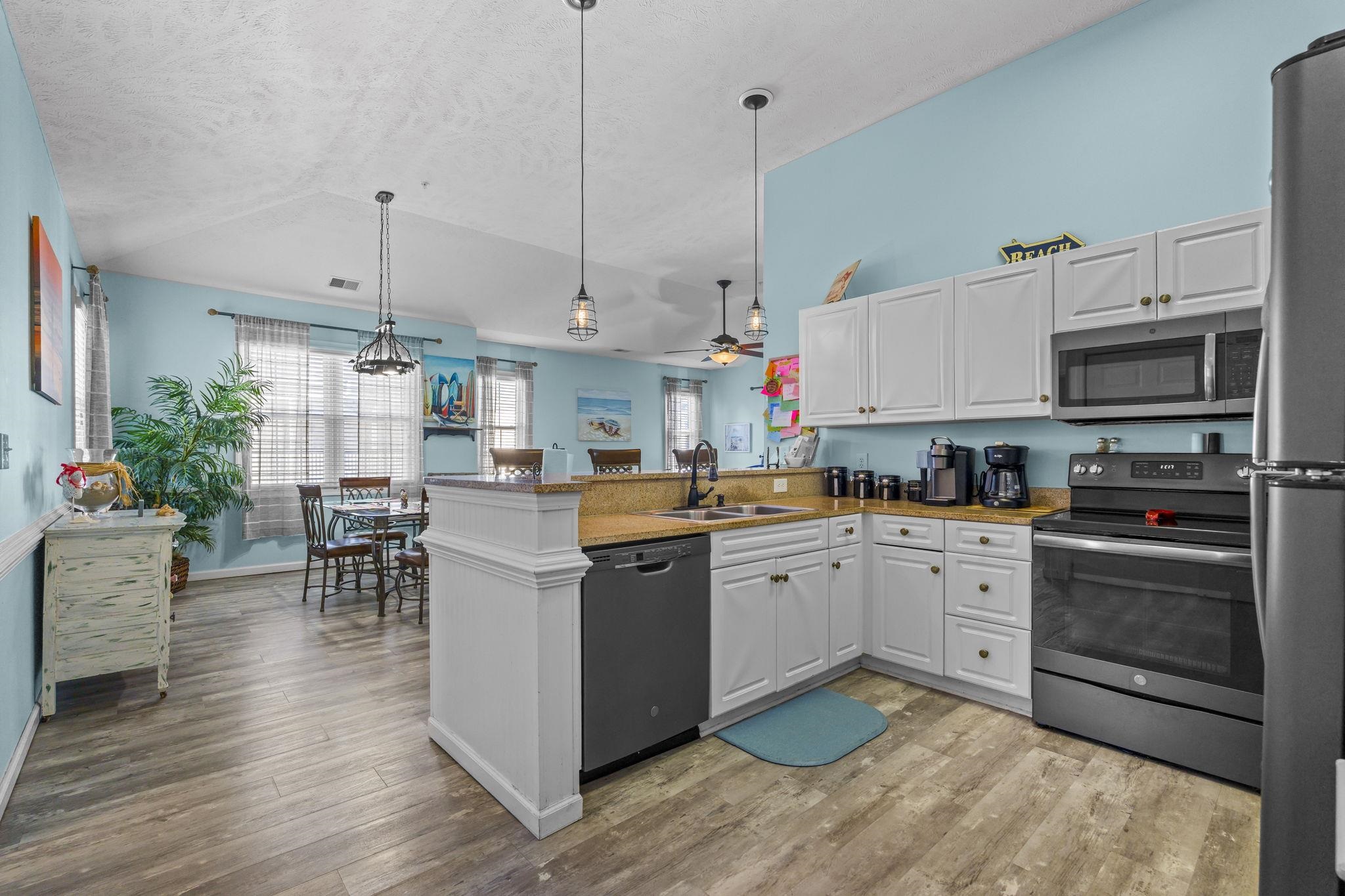 This well-maintained 3-bedroom, 2-bath end-unit condo is located in the highly desirable, amenity-rich gated community of Ocean Keyes—just a short walk or golf cart ride to Main Street and the beach. The home features a light, bright, and airy open floor plan with cathedral ceilings that create a spacious coastal feel throughout. The modern kitchen is equipped with stainless steel appliances and granite countertops, opening seamlessly into the living and dining areas—perfect for relaxed everyday living or entertaining. Step out onto the peaceful screened-in back porch and enjoy tranquil pool views any time of day. The generously sized primary bedroom offers a tray ceiling, private en-suite bath, and a separate location from bedrooms two and three, providing added comfort and privacy for owners and guests alike. Ocean Keyes offers resort-style amenities including multiple swimming pools, hot tubs, a fitness center, tennis and pickleball courts, walking trails, grilling areas, and 24-hour security. Golf carts and short-term rentals are permitted, enhancing the flexibility and appeal of this community. Ideally situated just two blocks from the ocean and one block from Main Street—home to shopping, dining, live music, and local festivals—this condo is well suited as a primary residence, vacation retreat, or income-producing coastal property. Offered fully furnished and ready to enjoy. ***Sellers Hold an Active Real Estate License in the State of Pa***