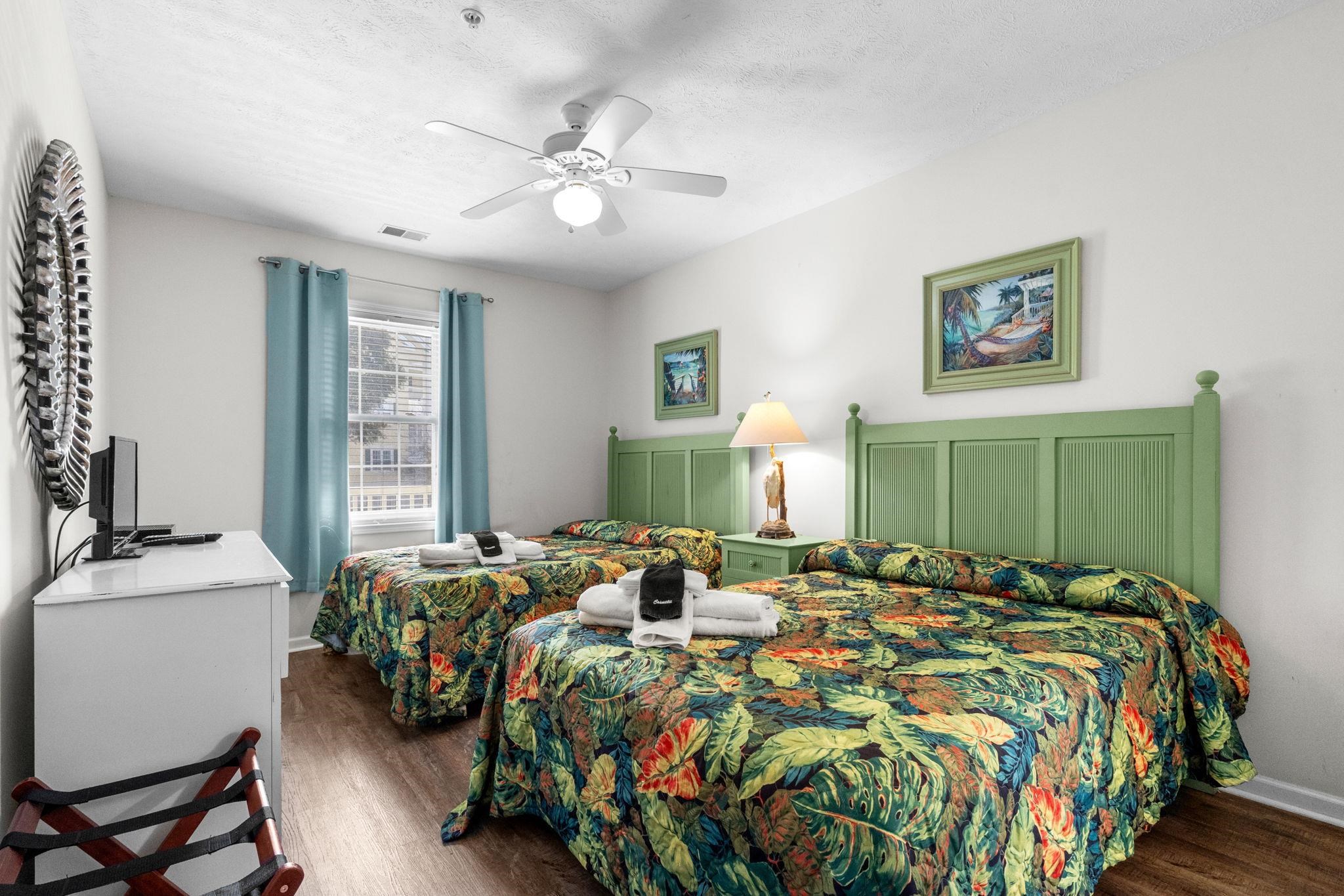 Ocean Keyes 2123 is a 3 bedroom and 2 bath condo located in the popular Ocean Keyes gated community in North Myrtle Beach. This second floor condo (has two elevators) is in a prime beach location. Main Street, Ocean Drive, is just a block over and the beach is a quick 2 blocks away. The decor' of this condo has recently been updated. This spacious condo has a master bedroom with a king bed and TV. The master bath has a tub/shower combination. The second bedroom has 2 queen beds and TV. The third bedroom has 2 twin beds and TV. There is a shower stall in the second bedroom. The living room has a sleeper sofa. The living area opens onto the balcony that has a view of the recently renovated tennis courts and pickleball courts. The dining area, fully equipped kitchen (with Keurig coffee maker), and washer/dryer complete this unit. Ocean Keyes is a prominent gated community with outdoor pools, hot tubs, tennis courts with updated pickleball play and fitness room. There is a grilling area for your enjoyment. There are several eateries and unique shops, including Main Street Shops, to select a favorite souvenir. Main Street is also the home of the fabulous family entertainment venue, The Greg Rowles Legacy Theatre. Ocean Keyes is in a great location with grocery stores, shopping, restaurants, and family fun. Sold fully furnished New LVP flooring Detached storage closet New Hot Water Heater New Microwave New Washer Dryer Private storage room Golf Cart Friendly HOA Move in Ready Motorcycles are not allowed.