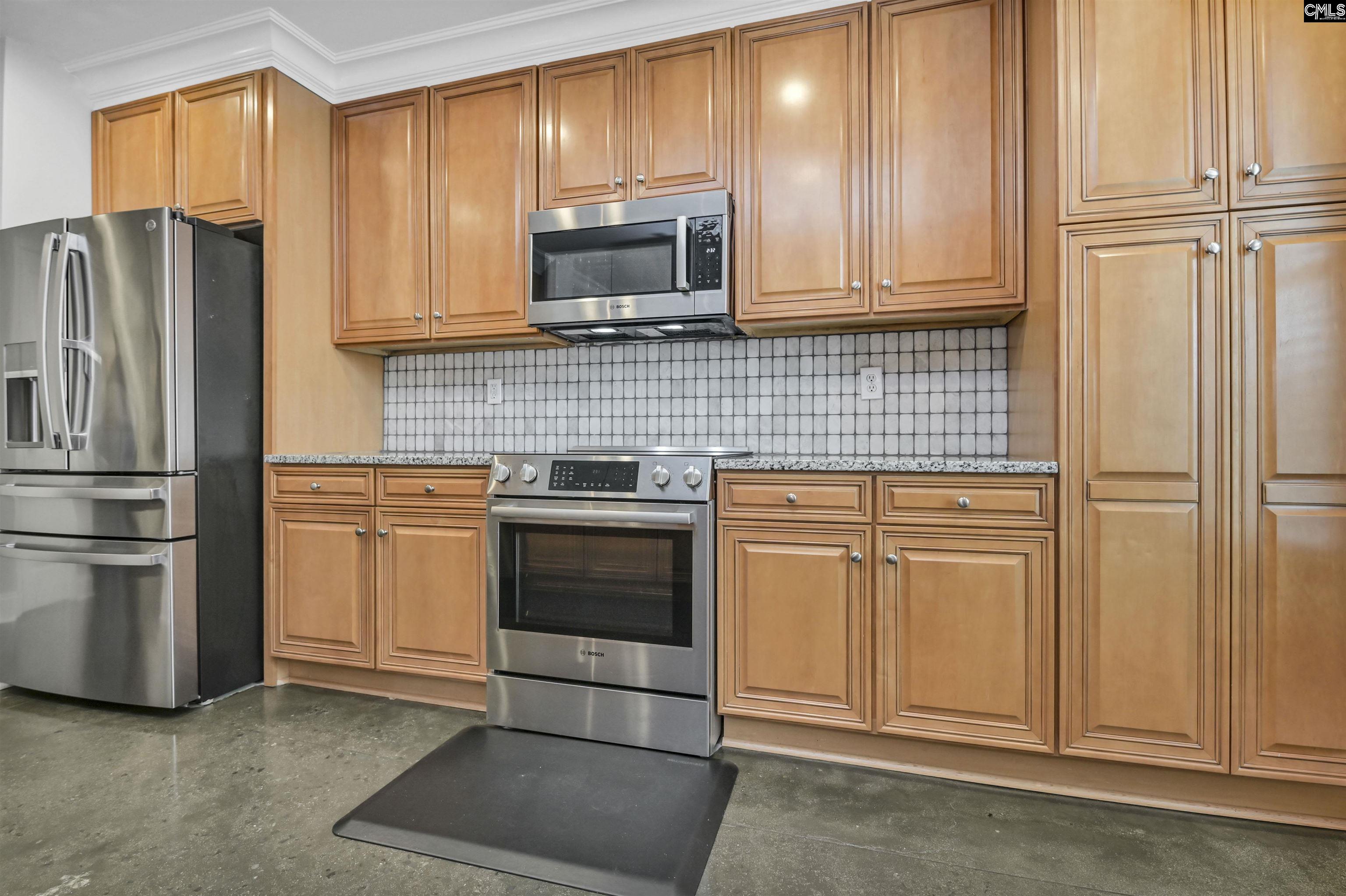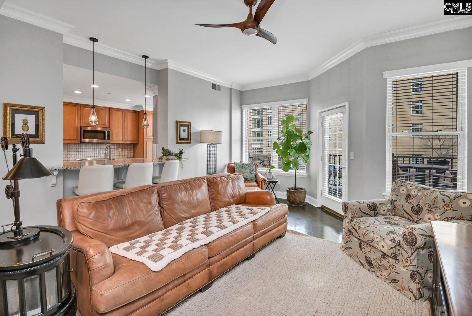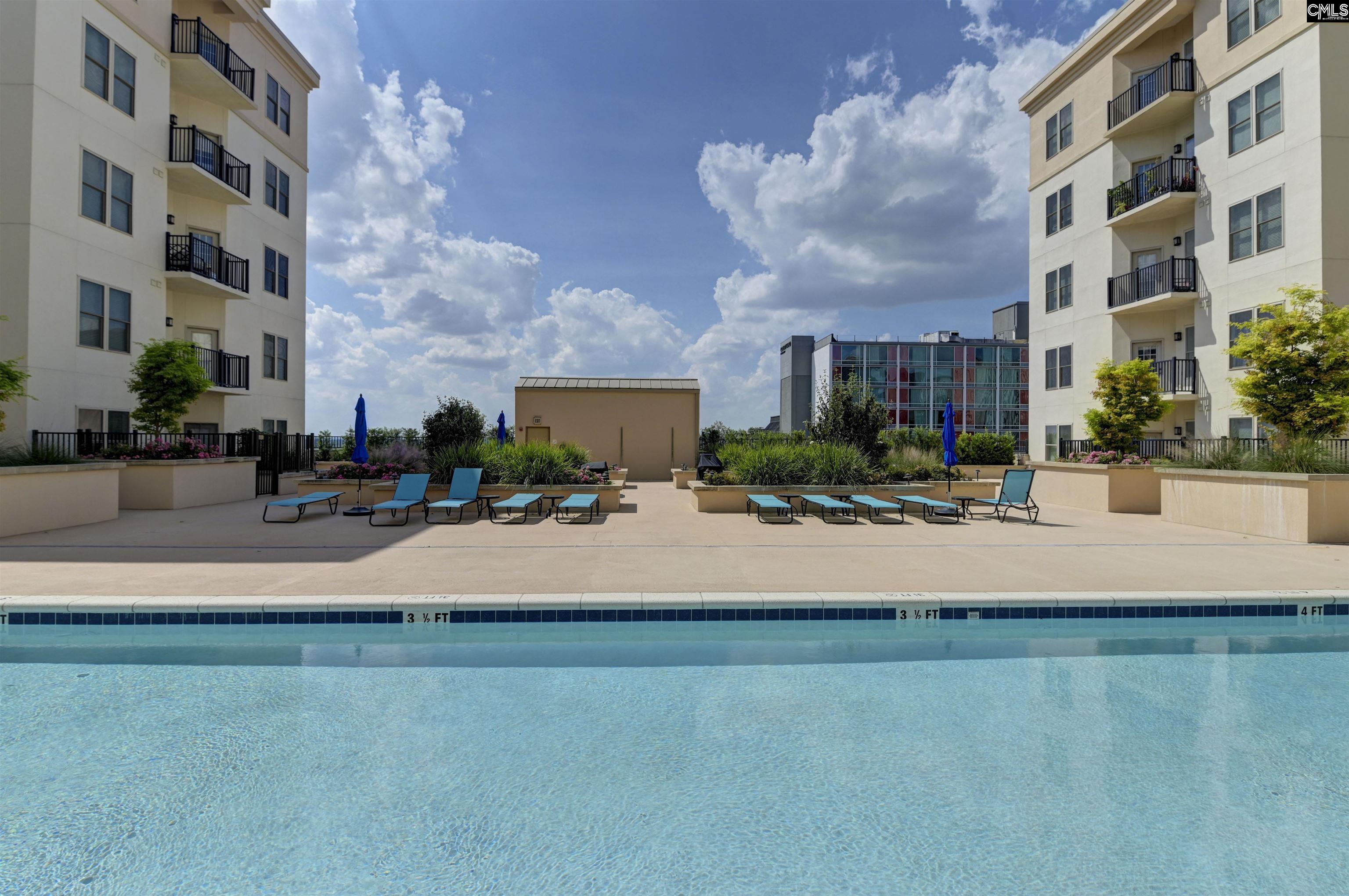 A rare offering in Adesso, the largest 2-BR floor plan in the building and one of only five ever designed for this building. Truly a luxury residence featuring soaring ceilings, stunning stamped & polished concrete floors, granite counters w/ newer tile backsplash, and a fully equipped kitchen w/ all appliances (including washer/dryer) remaining. Enjoy two balconies — one off the living area & one private to the primary suite — capturing long-range views from the State House to Williams-Brice Stadium! This split floor plan includes 2 full baths plus an additional half bath, ideal for guests. Located in the heart of downtown/USC, this first-class community offers resort-style amenities: 24-hour front desk, secure fobbed entry, covered and gated garage parking, pool with updated pool deck and grills, fitness room, and club room. Most utilities are included in the regime, making luxury living truly low-maintenance. Live in the center of it all — with space, style, and exclusivity you won’t find anywhere else in: Adesso! Disclaimer: CMLS has not reviewed and, therefore, does not endorse vendors who may appear in listings.