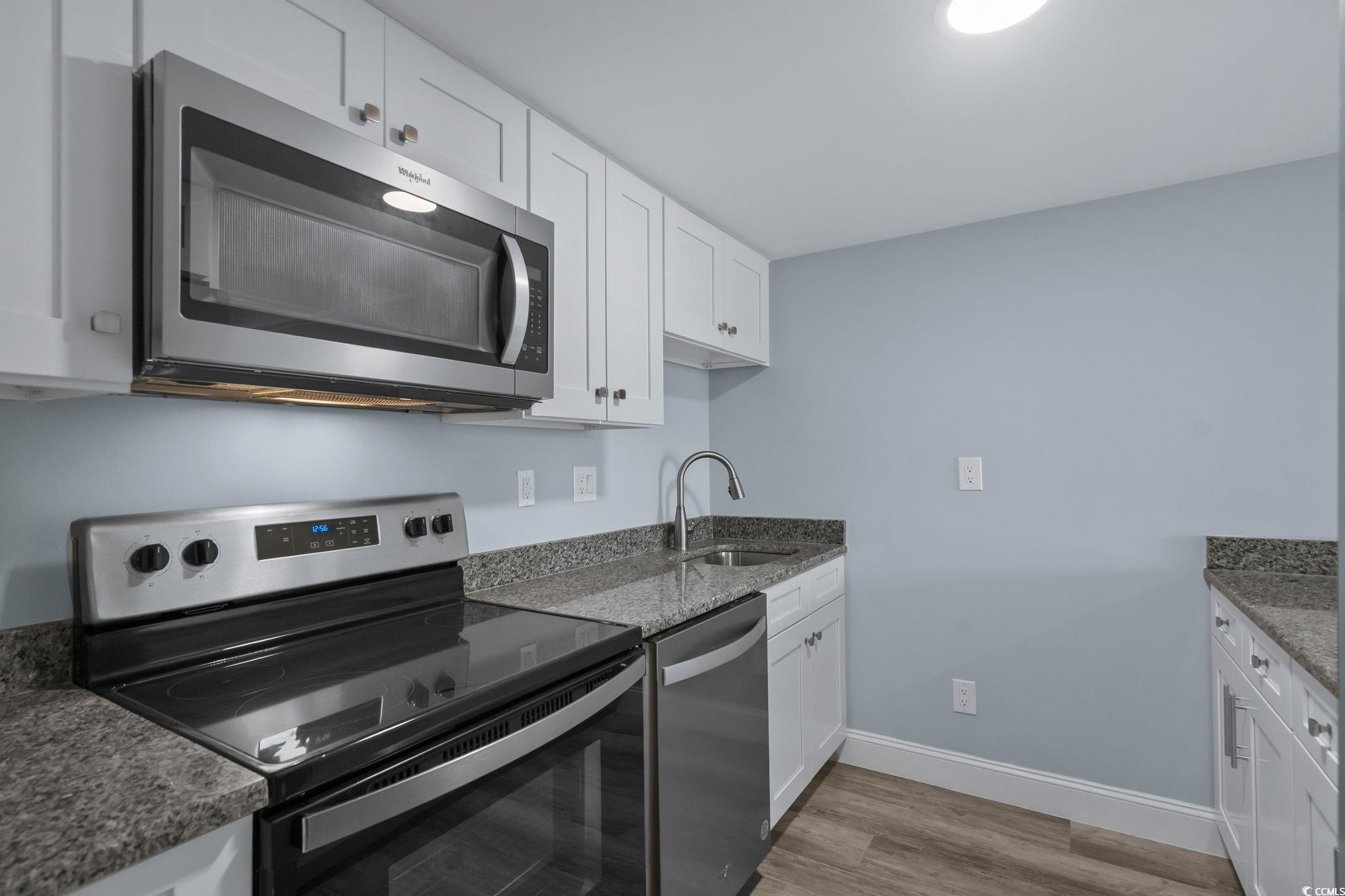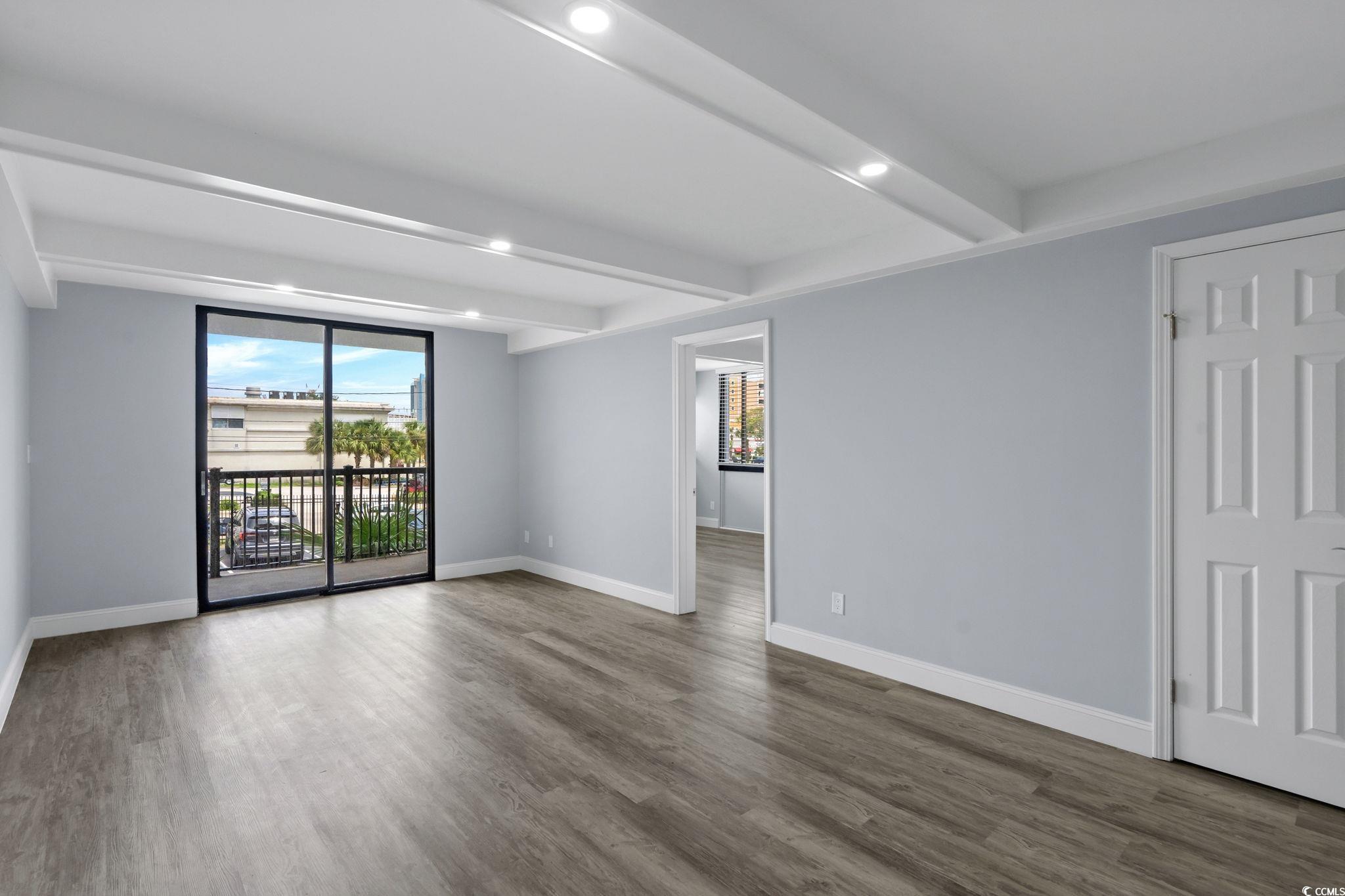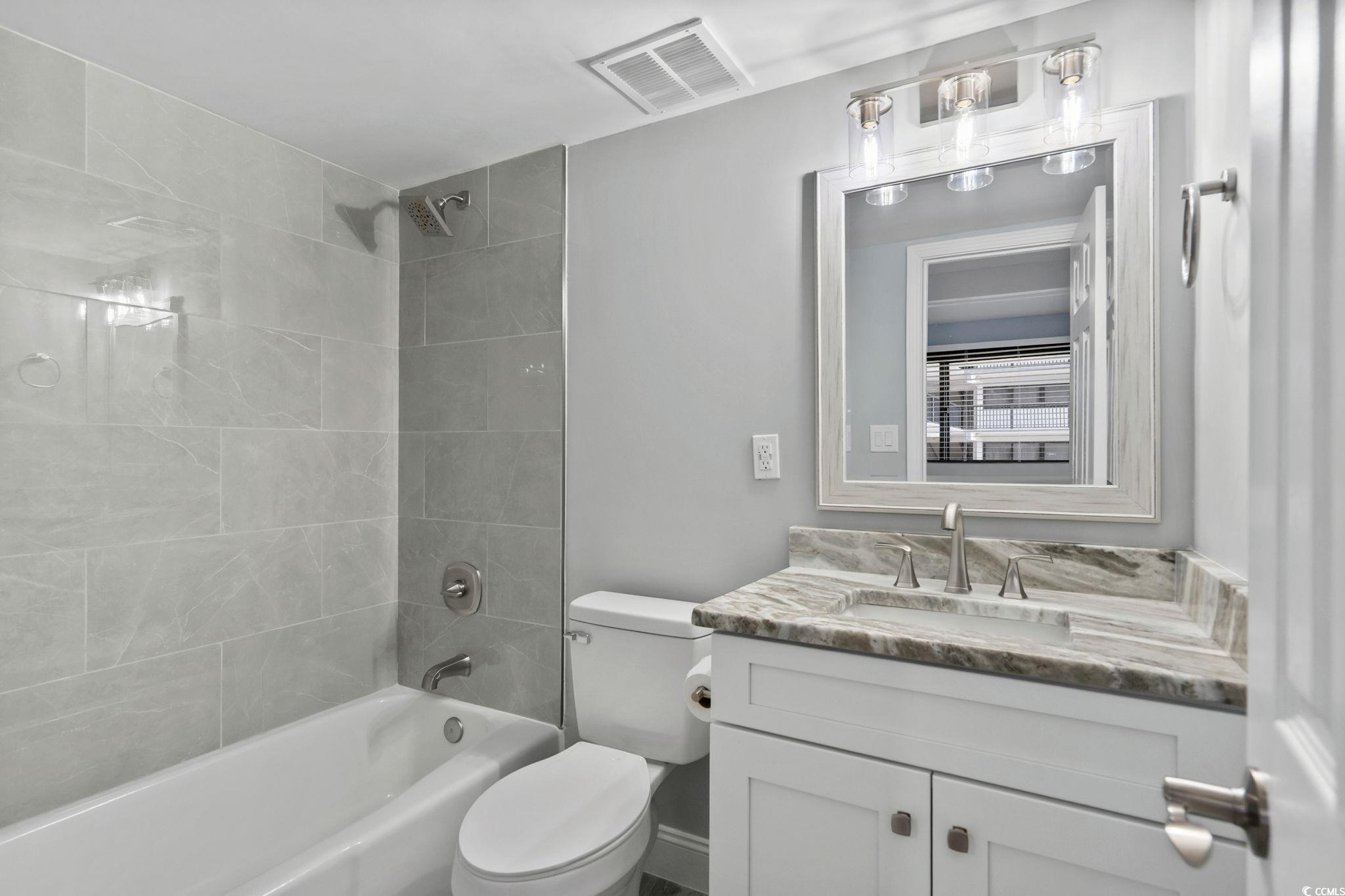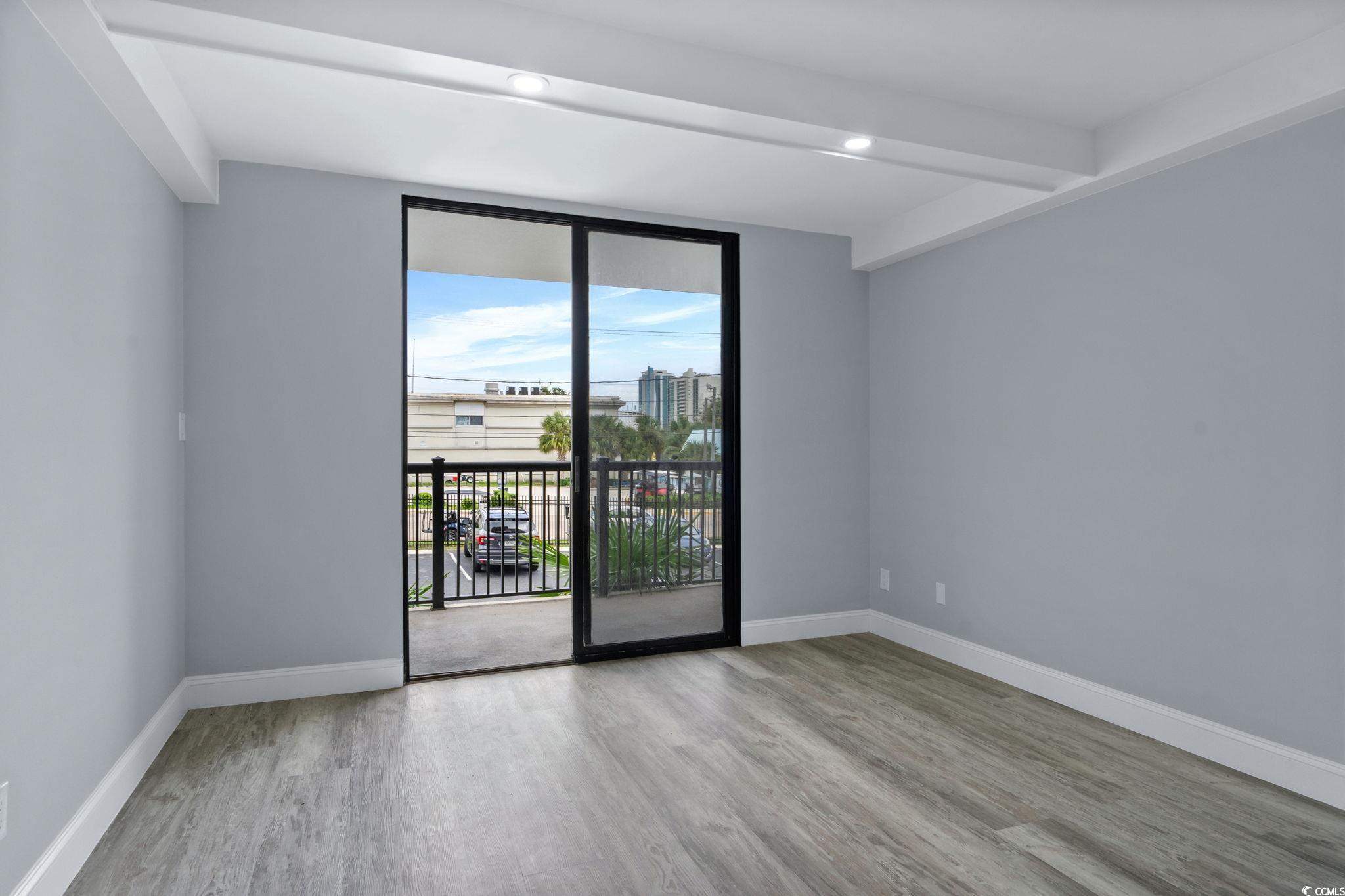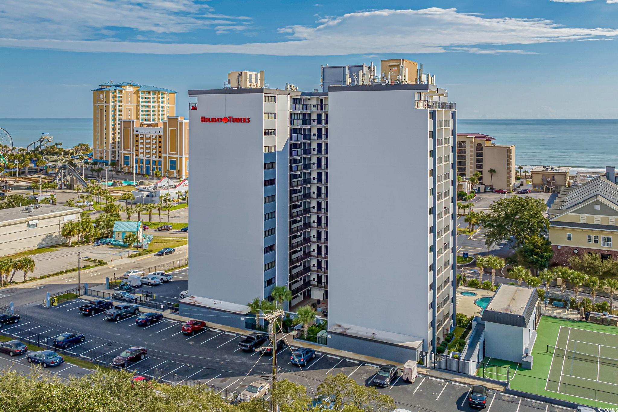A rare opportunity to own a fully renovated , conveniently located on the second floor, turn key 2 bedrooms 2 bathrooms unit located in the gated Holiday Tower just a short walking distance to the beautiful Atlantic Ocean community. This newly renovated bright and airy, with ocean views unit will greet you with an open concept, and not one thing was overlooked while it was renovated. The unit is just loaded with many upgrades that were purposely installed to make this beach getaway condo more enjoyable: luxury vinyl flooring, smooth ceilings, painted, 5” baseboards, beautiful granite counter tops, new soft close cabinets with lazy Susan, under cabinets lights, stainless steel appliances, oversized island, installed ceiling beams with recess lights, tiled walk - in master bath shower, tiled walls guest bathroom tub, installed 2” blinds. This condo has been well maintained and has low HOA fees. Conveniently located to water sports, golf, Boardwalk, SkyWheel, many great restaurants, and many other local attractions. A rare opportunity to own a great income producing investment property with short-term rentals allowed. Do not wait to call this spectacular, turn key condo yours.