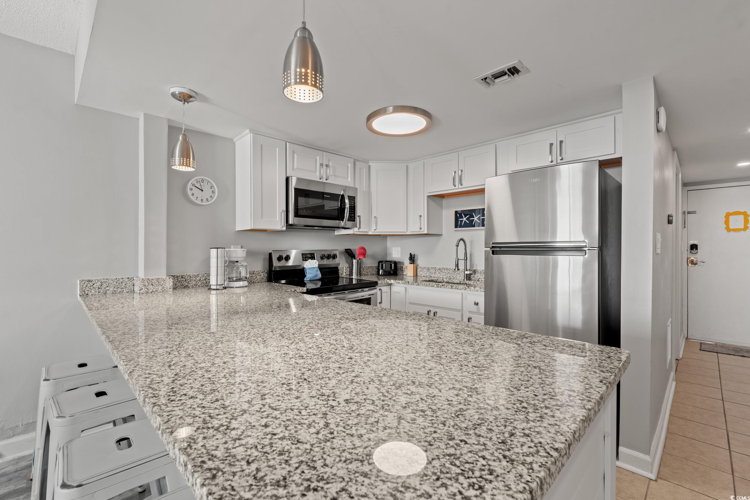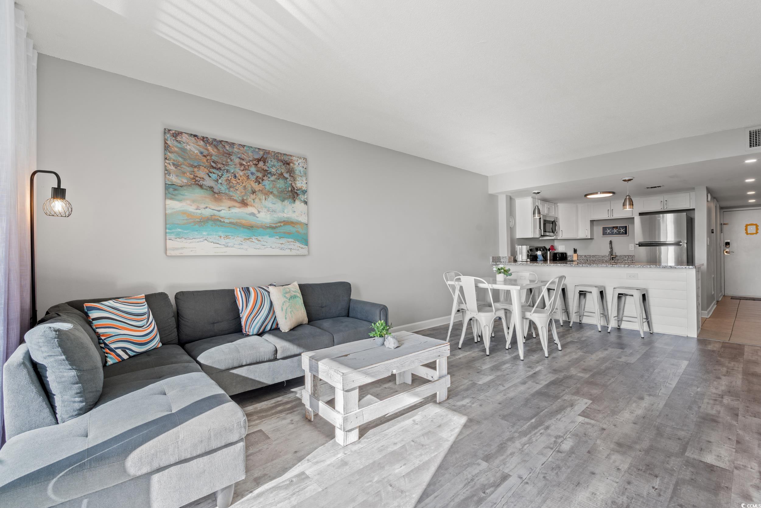 Dreaming of ocean views and easy beach living? This beautifully renovated 2-bedroom, 2-bath condo at Holiday Towers puts you just steps from the sand, Family Kingdom, and all the fun of Myrtle Beach. Completely transformed with style and function in mind, the new kitchen showcases granite countertops, a spacious peninsula island, and sleek stainless steel appliances ? all opening seamlessly to the living area for one of the building?s rare open-concept designs. Fresh paint, new doors, updated flooring, and stylish new bathroom vanities make it move-in ready and magazine-worthy. The primary suite features a generous walk-in closet. A large laundry room with a washer and dryer adds convenience and extra storage. Just off the main living area, the balcony is perfect for enjoying ocean breezes by day and the lights of Family Kingdom by night. Holiday Towers offers everything you need to embrace the beach lifestyle: sparkling pool, hot tub, baby pool, basketball and tennis courts, shuffleboard, picnic and grilling areas, and a charming gazebo ? all just a quick stroll to public beach access. Perfectly situated in the heart of Myrtle Beach, you?re minutes from shopping, dining, golf, and entertainment. Whether you?re searching for your own coastal retreat, a full-time home, or an investment property with incredible potential, this condo truly has it all!
