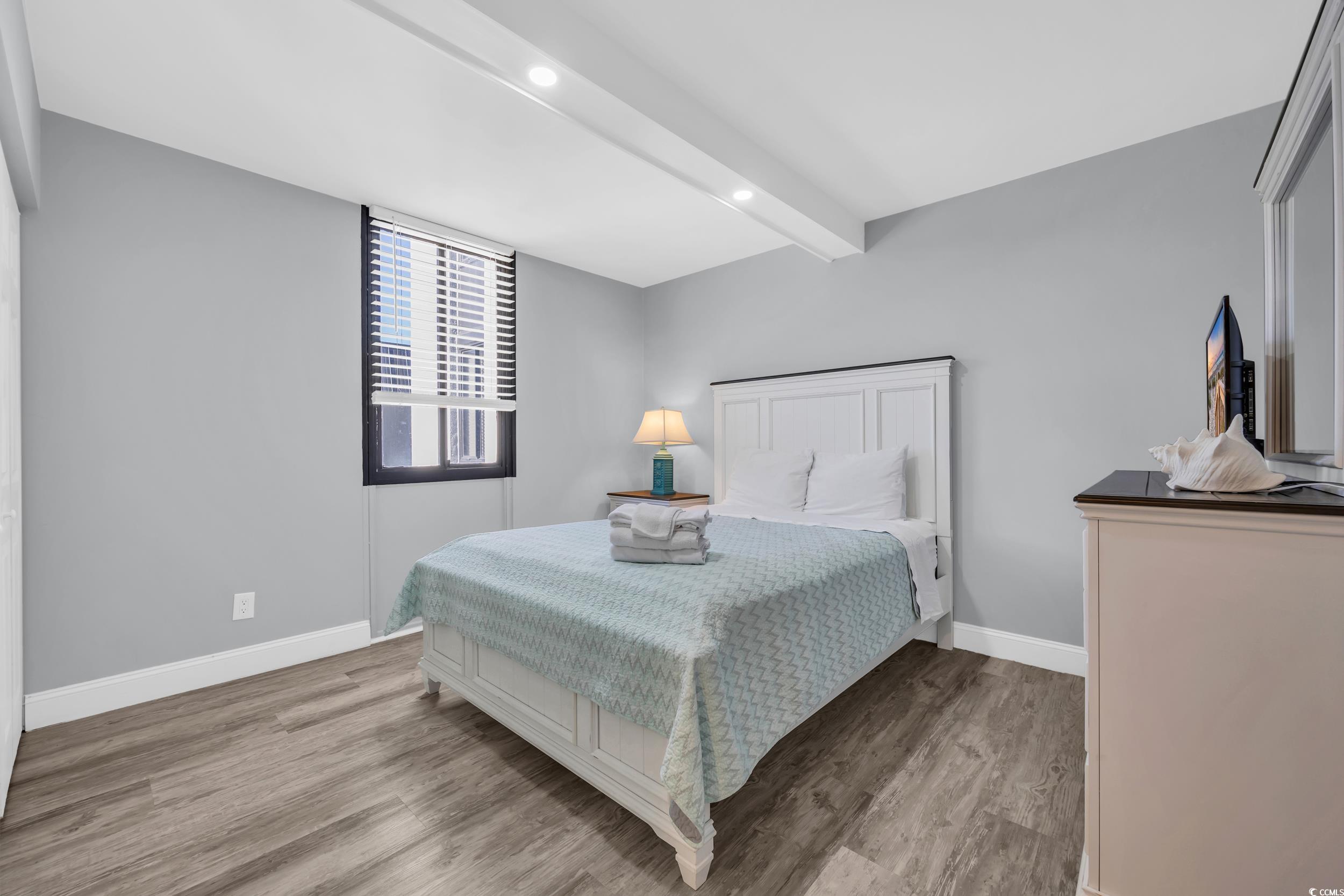 Welcome to 601 Mitchell Dr Unit 203 at Holiday Tower, a fully renovated 3-bedroom, 2-bath corner unit that radiates natural light and modern style. Step inside to find new luxury vinyl flooring, fresh paint, smooth ceilings, custom trim, and a stunning kitchen featuring granite countertops, soft-close cabinetry, under-cabinet lighting, stainless appliances, and a spacious island perfect for entertaining. The open layout flows effortlessly into a bright living area with decorative ceiling beams and recessed lighting, leading to your private balcony where ocean breezes await. Both bathrooms have been beautifully updated—the primary with a tiled walk-in shower and the guest with a full tile surround tub. Holiday Tower offers resort-style amenities including a sparkling pool, hot tub, tennis and basketball courts, BBQ and picnic areas, plus cable, internet, water, sewer, trash, lawn care, pest control, and security all included in the HOA! Located just one block from the beach and close to the boardwalk, restaurants, and attractions, this condo delivers the true Myrtle Beach lifestyle—whether you’re looking for a personal getaway, a full-time residence, or an investment property ready to rent. This one stands out from the rest—come see why it’s ready to finally make a splash on the market!