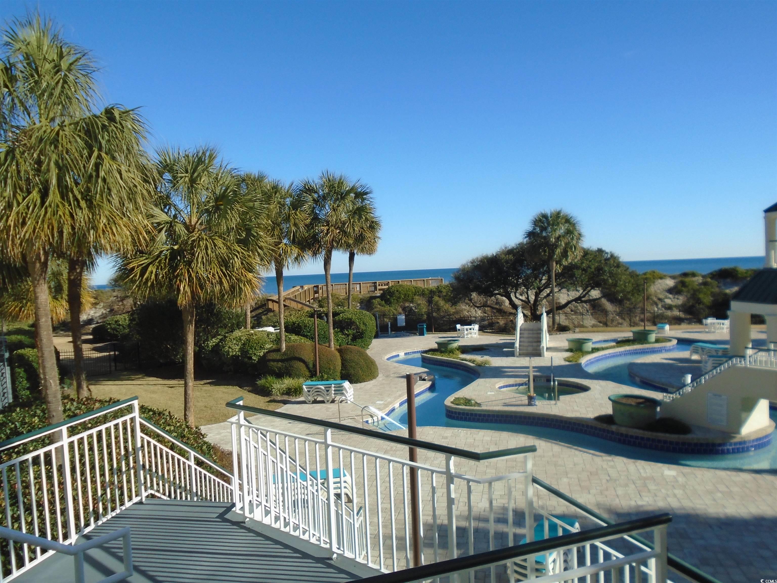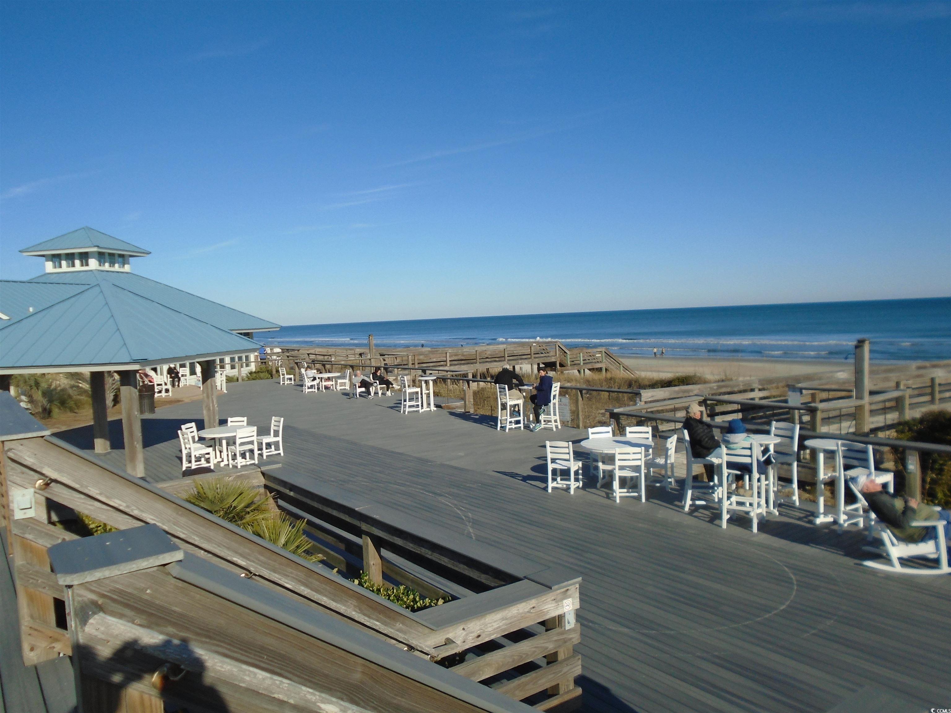 Bridgewater 2 BR corner villa with additional windows making for a brighter interior, ocean front/ocean view, also overlooking landscaped courtyard, 1st floor and very near stairway for easy access. Completely furnished with interior features that include LVT flooring, plantation shutters, granite counters in the kitchen and wall HVAC units that are only 1 and 2 years old. This building and the individual units have undergone extensive renovations such as upgraded windows and sliding doors to make code in the last couple of years. All of these assessments have been completely paid in full by the sellers. Bridgewater has a pool with a lazy river and is the only community within LBTS that features a heated indoor swimming pool with hot tub, and exercise area that only owners and guests can use. Amenities within LBTS include bike/walking paths, tennis/pickleball courts, ocean front clubhouse with surrounding deck area, fishing lake and crabbing dock. Nearby are restaurants, shopping, several golf courses and a marina. This private seaside neighborhood is conveniently located on Hwy. 17 with easy access to Myrtle Beach (only 45 minutes) and the historic city of Charleston (only 90 minutes). In addition, world famous Brookgreen Gardens and historic Hobcaw Barony are just a short drive away.