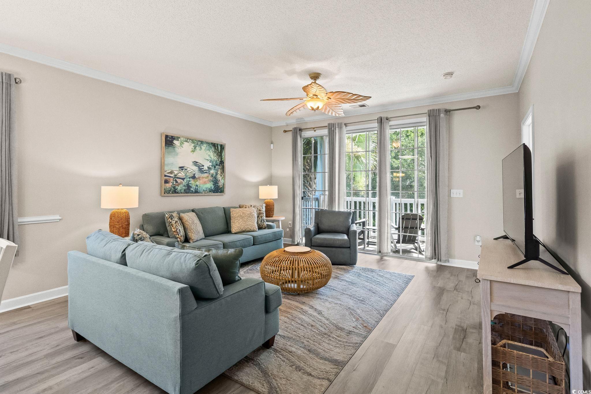 Welcome to unit #121 in Arbor Trace at Barefoot Resort & Golf! This 2 bedroom / 2 bath END UNIT golf villa is situated on the golf course in Arbor Trace at Barefoot Resort. The condo features a new HVAC unit (2024), LVP flooring throughout the main living areas and both bedrooms, and comes fully furnished (ALL furniture is just a little over a year old!) - ready for you to enjoy! Being an end unit, you enjoy extra windows which allow for lots of natural light. The guest bedroom features a Murphy bed, allowing for the option of using the room as a bedroom or office / study. Owners at Arbor Trace have their own community pool, and also have access to Barefoot Resort's world class amenities - including a 15,000 sq. ft. pool located on the ICW, a private beach cabana with parking and seasonal shuttle service, 4 championship golf courses and more!