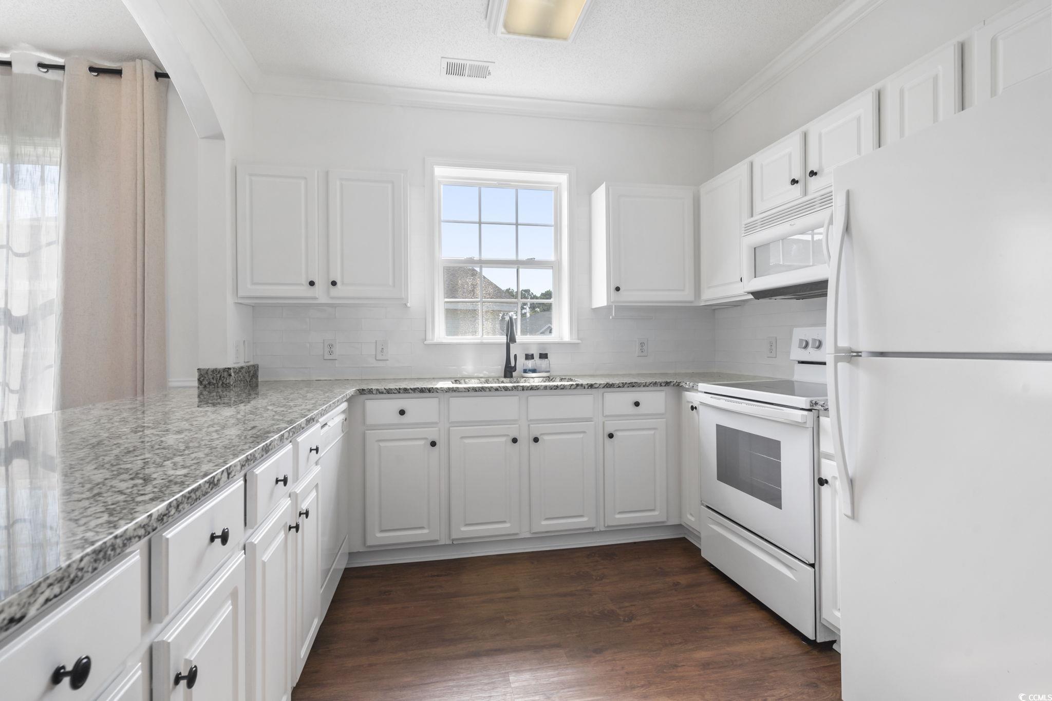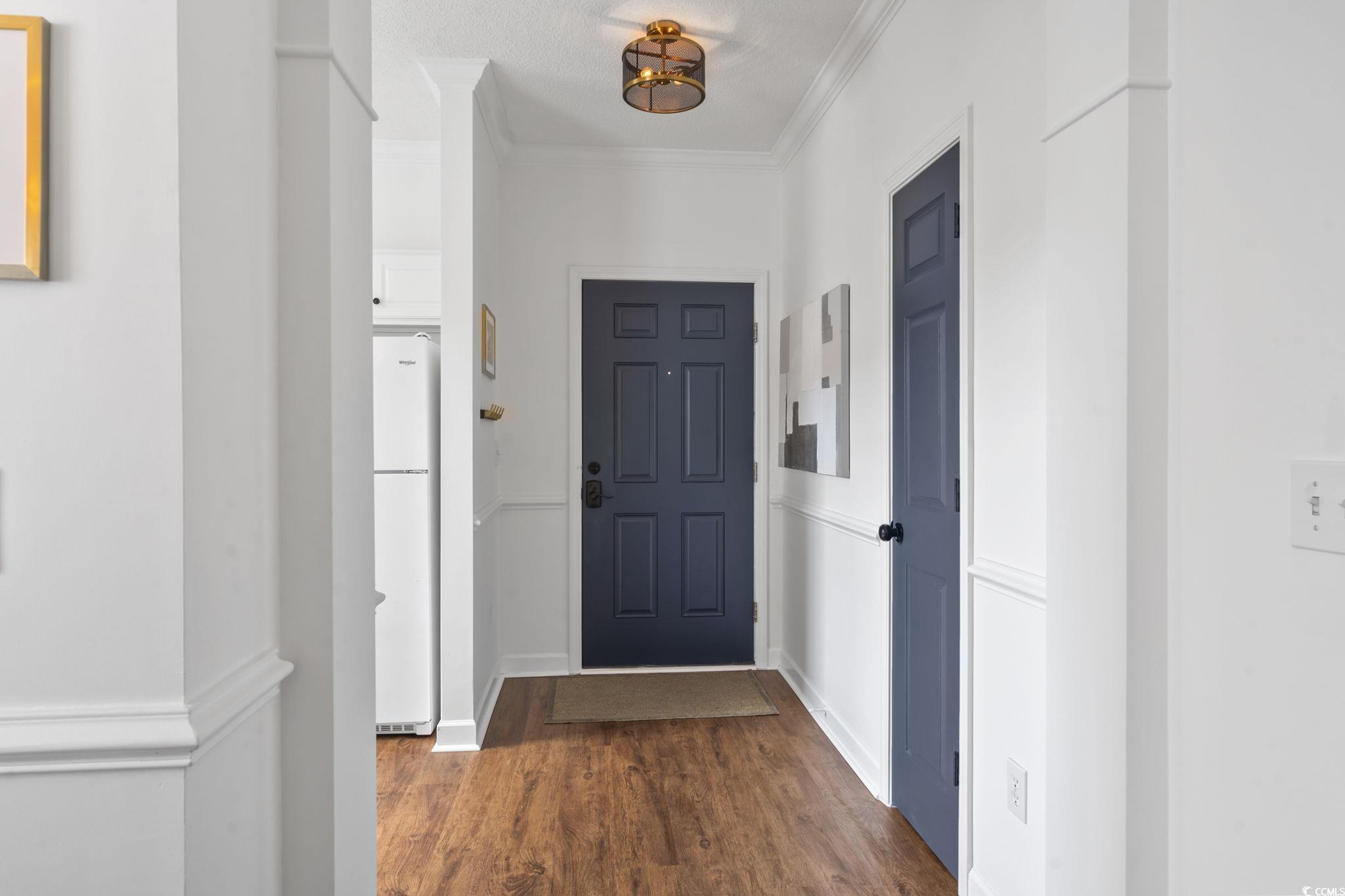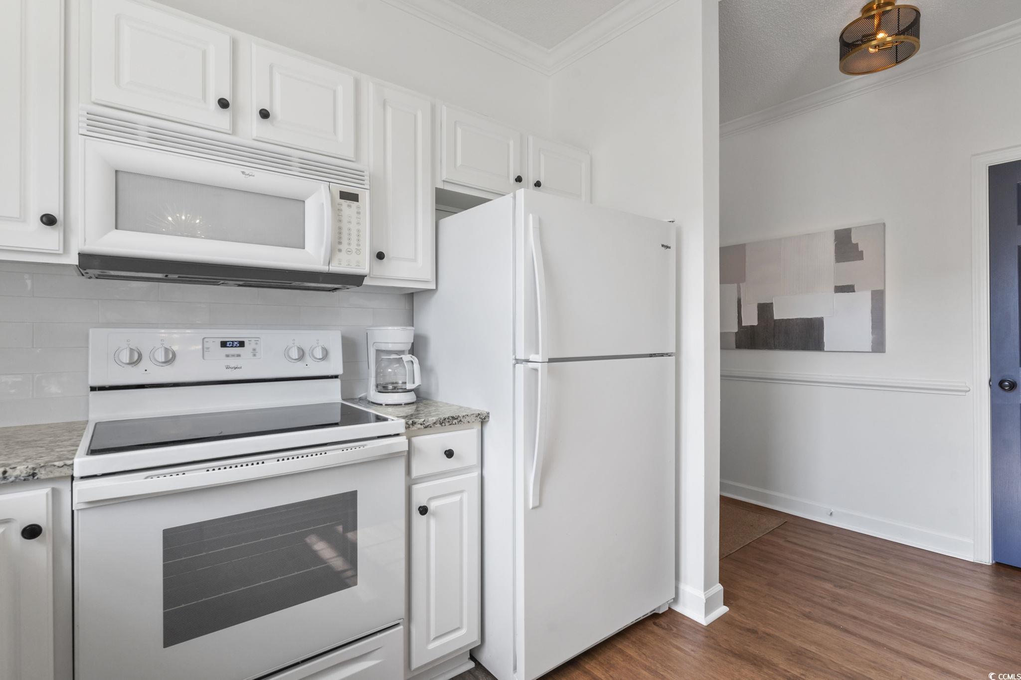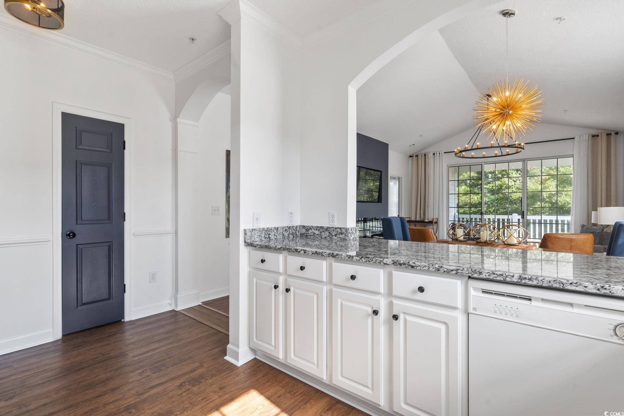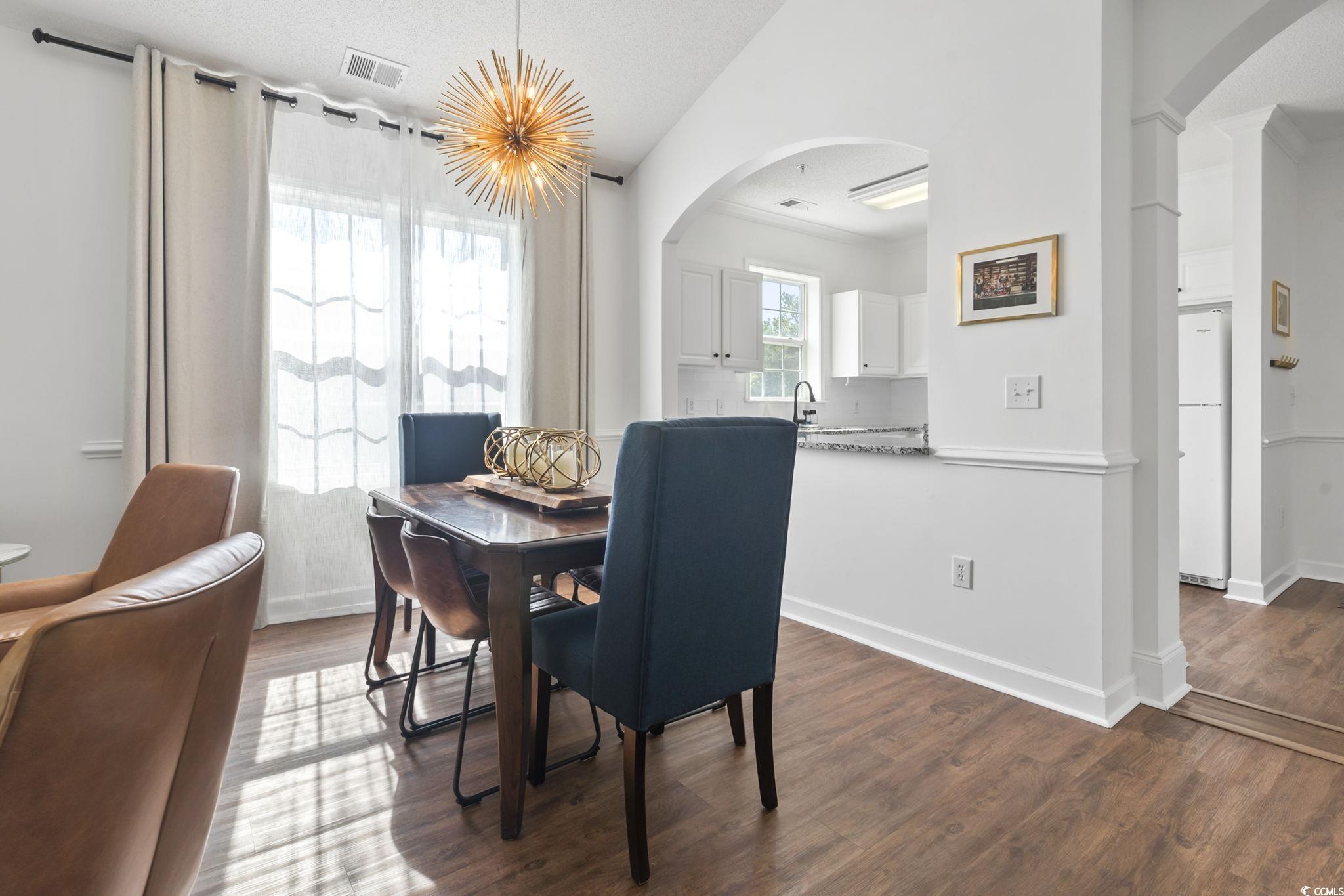 Don't miss this stunning top-floor end unit—truly one of a kind! This beautifully updated condo features two bedrooms, including a spacious primary suite with an ensuite bath. Soaring vaulted ceilings and abundant natural light create a bright, airy atmosphere throughout. Relax on your private porch overlooking the golf course or cozy up in front of the built-in electric fireplace. The kitchen boasts solid surface countertops and a breakfast bar—perfect for casual dining or entertaining. Luxury vinyl plank flooring adds warmth and durability in the main living areas and bedrooms, while tile accents the bathrooms for a clean, modern touch. Tastefully updated and available fully furnished, this unit is move-in ready. A transferable golf membership is available for a fee. Located in the highly sought-after Barefoot Resort, residents enjoy access to four championship golf courses, two on-site restaurants, a marina, convenience store, and liquor store. Relax at the private community pool, or enjoy the expansive North Tower Pool overlooking the Intracoastal Waterway. Owners also have exclusive access to the oceanfront Cabana, with seasonal shuttle service to the beach. With entertainment, shopping, and dining just minutes away, this is your chance to live the Beach Life in style!