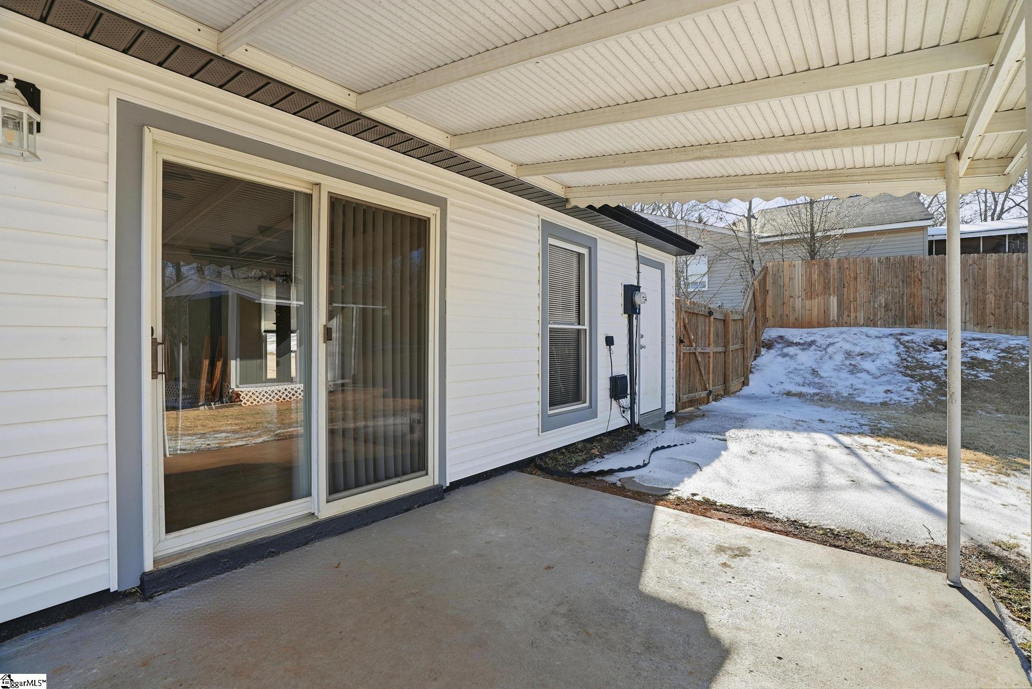 Adorable and move-in ready 3 bedroom, 2 bathroom ranch located just outside of Downtown Greenville, SC! Enjoy NO carpet and NO HOA on this ¼-acre lot featuring a covered patio and fully fenced backyard. Brand new vinyl siding installed in 2026 adds to the home’s fresh exterior appeal. Step onto the covered front porch and into the inviting living room with vaulted ceiling, ceiling fan, and sliding glass doors leading to the covered patio. The living area flows seamlessly into the eat-in dining space and updated kitchen, complete with refreshed countertops, cabinetry, and new appliances — including refrigerator and microwave — all of which convey with the sale. Just off the kitchen you’ll find a convenient laundry room, storage/pantry area, and an additional side entry providing easy access to the driveway. Down the hall is the freshly painted primary bedroom with a full bathroom featuring a vanity and tub/shower combo. Two additional bedrooms and a second full bathroom with vanity and tub/shower combo complete the layout. The backyard offers great outdoor space along with a wood stove and storage shed, both being sold AS-IS, WHERE IS. Seller has never occupied the property. Taxes are based on the 6% non-owner occupant rate.