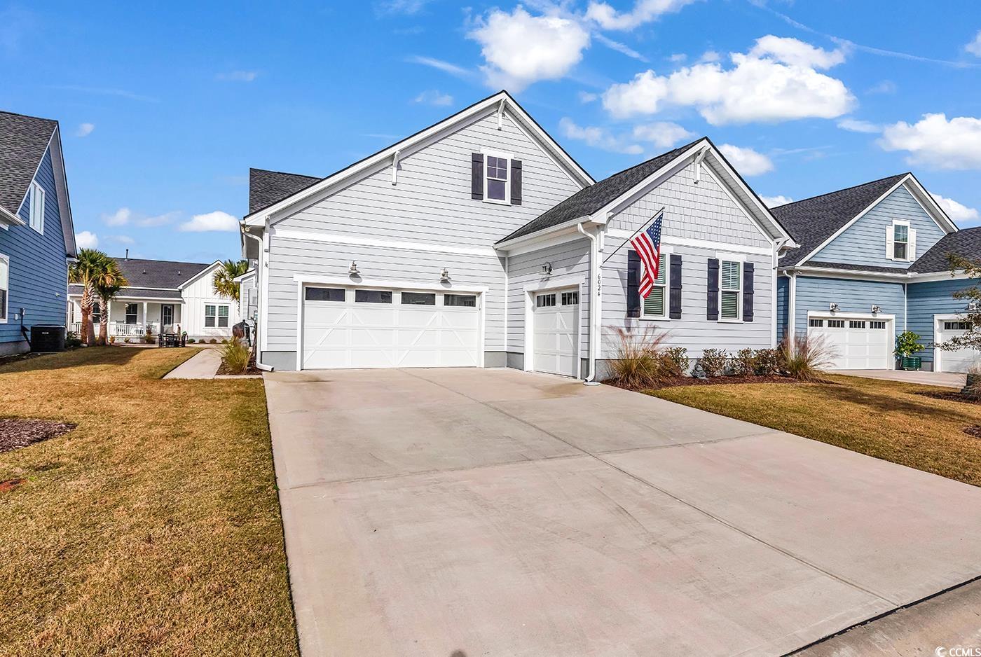 Wow! This stunning home in Longwood Bluffs’ Parkview section offers the ideal blend of comfort, convenience, and coastal living. It may just be the ideal floorplan with open concept living and primary bedroom suite on the main floor, with guest areas upstairs. Enjoy a low-maintenance lifestyle with HOA-managed lawn care, annual power washing, and fresh mulch—perfect for full-time residents or a worry-free second home. Designed for a strong sense of community, the Parkview section features front sidewalks, shared green spaces, cozy sitting areas, and an outdoor fireplace. Residents also enjoy resort-style amenities including two pools, multiple pickleball & tennis courts, basketball, and nearby walking paths. Like new, this upgraded home features 3 oversized bedrooms, 2.5 baths, and a large upstairs bonus room ideal for a home office or additional guest space. The chef’s kitchen stands out with white quartz countertops, a beautiful tile backsplash, a custom walk-in pantry, and extensive cabinetry—including storage under the island. A privately located screened-in porch with epoxy flooring offers year-round enjoyment of the coastal climate. Or relax on the front porch. The first-floor primary suite features two spacious walk-in closets and an ensuite with a large tiled & glass enclosed shower and double vanity. Highlights include a Rinnai tankless water heater, natural gas fireplace, range, Kitchen Aid convection oven/microwave combo, gas heat, ceiling fans with lights in every room, and abundant natural light from the oversized windows. All appliances are included. At the rear of the home is a two-car garage PLUS an additional full garage that provides ample storage and is perfect to house a golf-cart. Located minutes from top golf courses, popular beaches, shopping, dining, and everyday conveniences, this home truly offers it all.