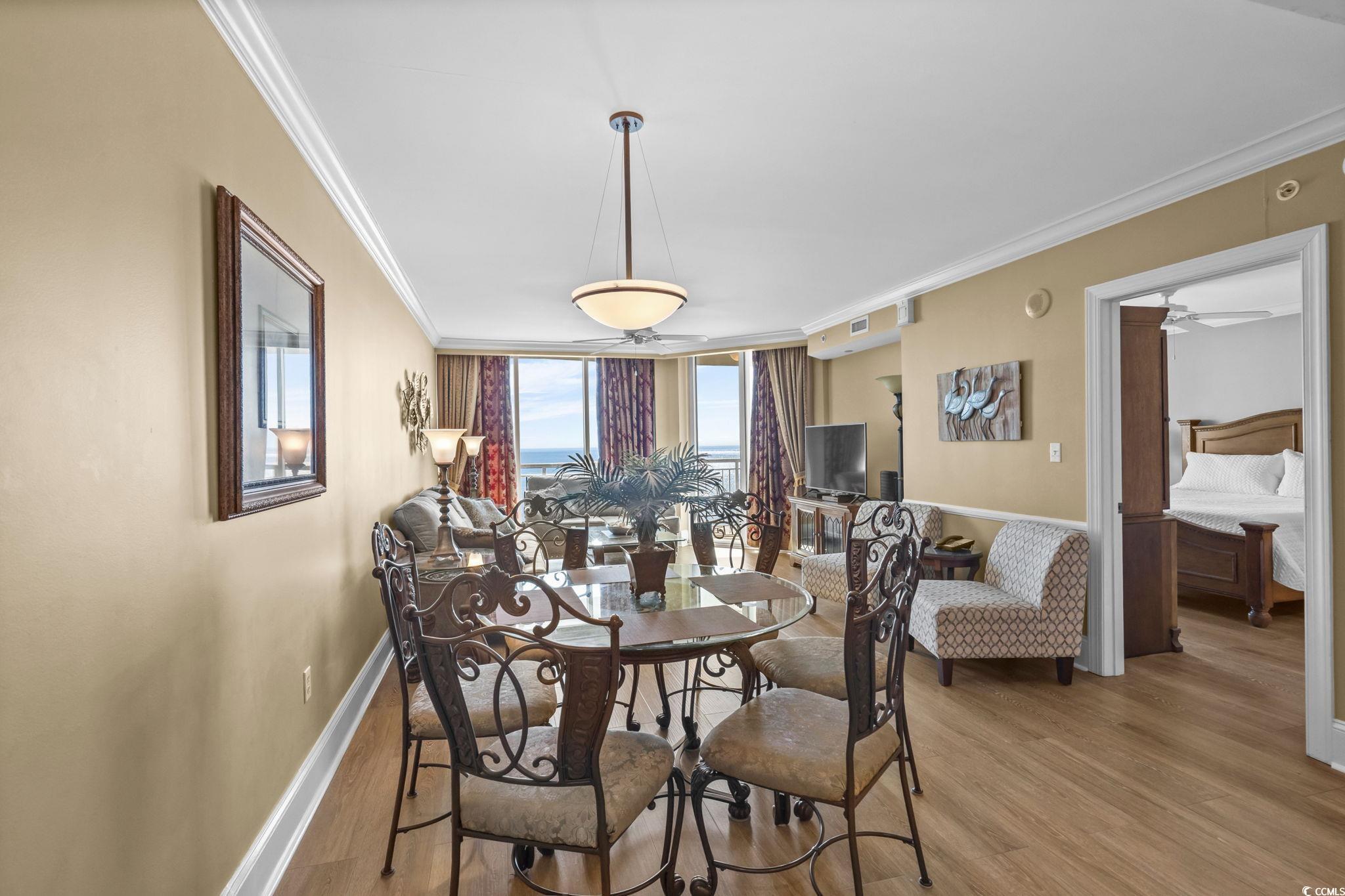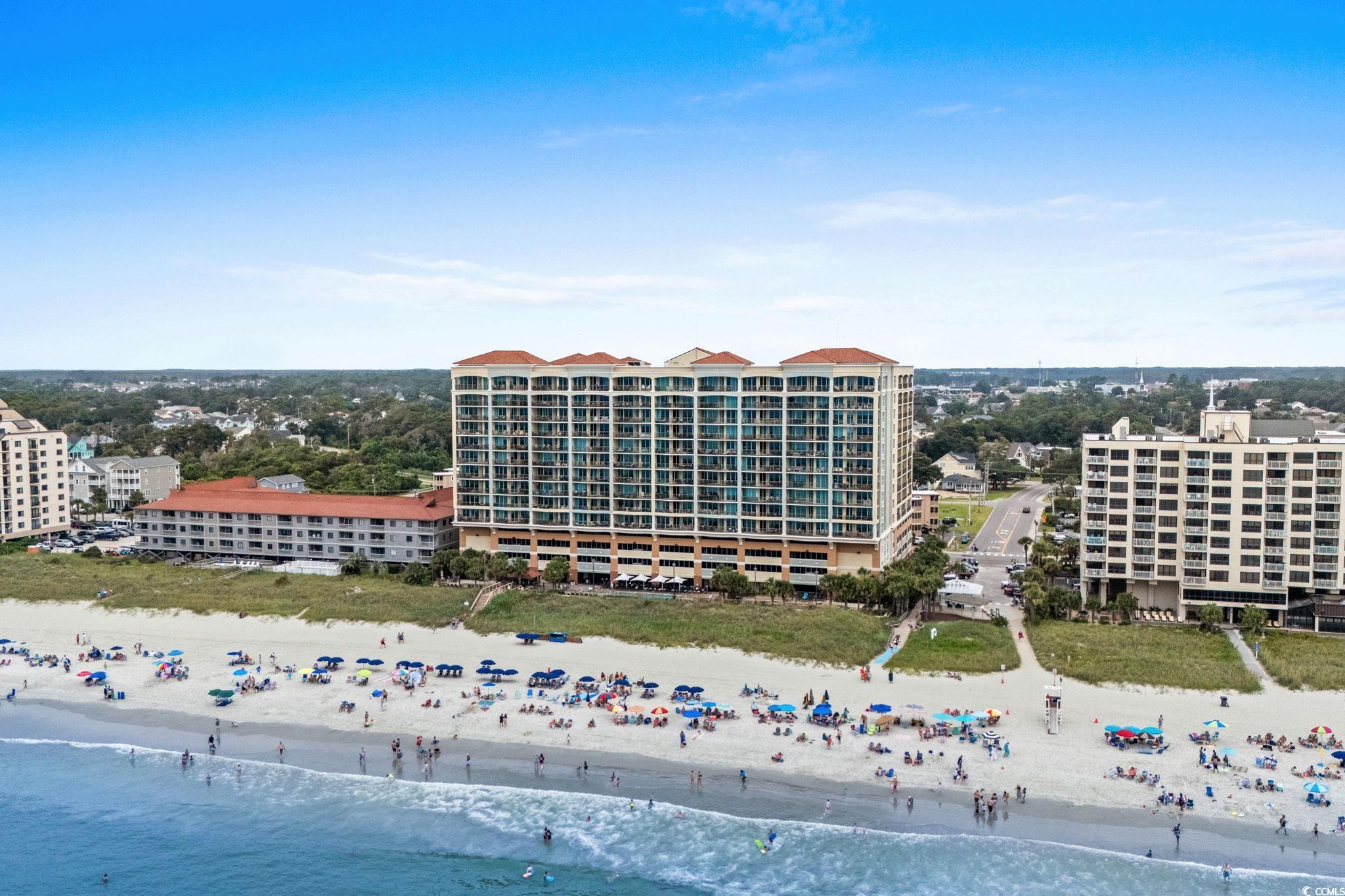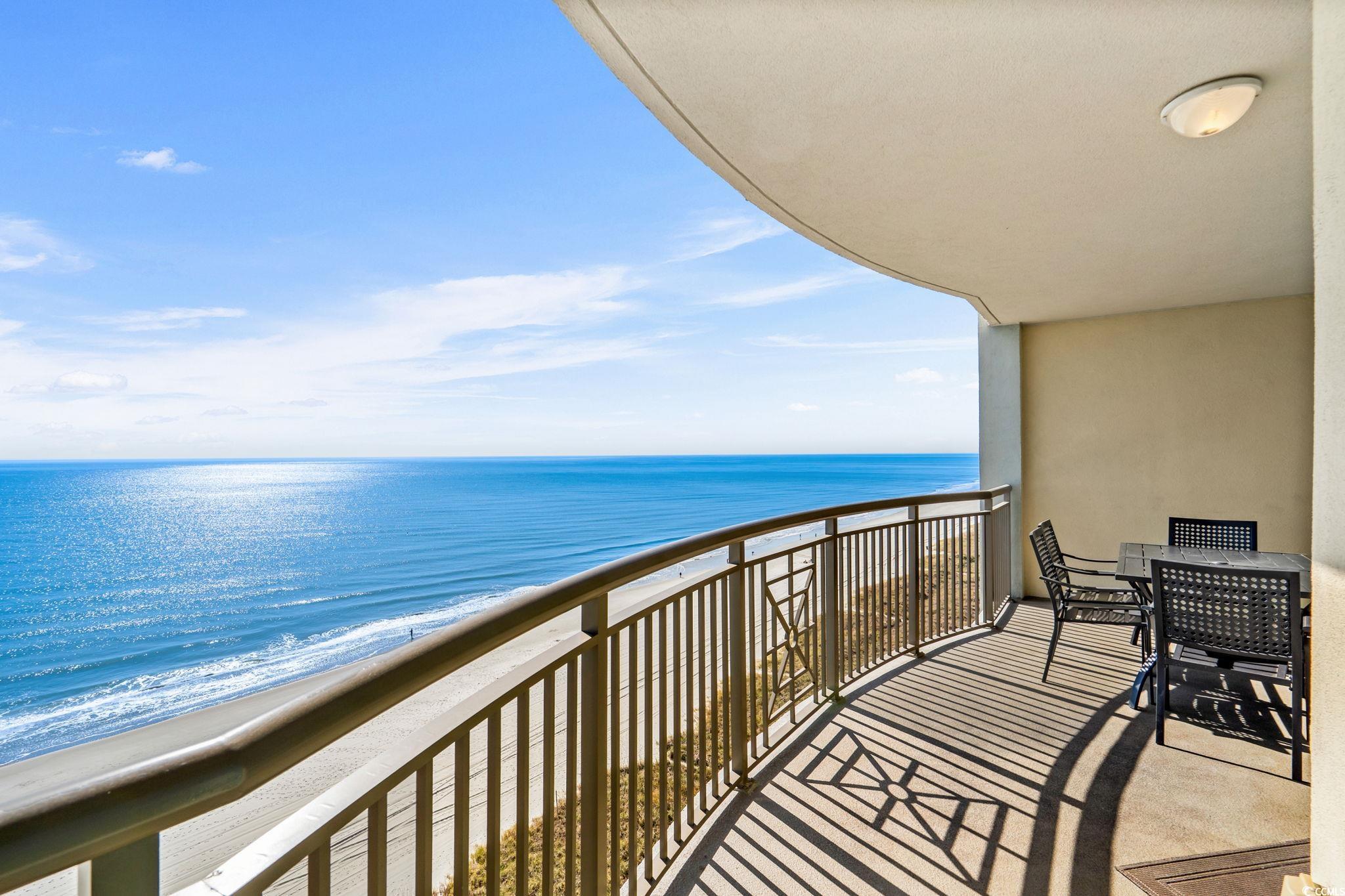 Incredible opportunity to purchase this pristine 3 bedroom 3 bath luxury oceanfront unit in the highly sought after Mar Vista Grande of North Myrtle Beach! Located on the 12th floor, Unit 1205 offers stunning 180 degree unobstructed views of the Atlantic Ocean from the expansive 195 sq ft private balcony. As you enter through the foyer, you will be greeted with a fully equipped kitchen overlooking the ocean that features granite countertops, top of the line stainless steel appliances, breakfast bar, and plenty of cabinet space. Adjacent to the kitchen is the dining area and spacious living room with slider access to the oceanfront balcony, where you can enjoy sunrise with your morning coffee or sunset with your favorite evening cocktail. This can also be your premium seat for dinner while watching the 4th of July fireworks show! As of Nov 2025 - fresh paint in the kitchen and new bed spreads in each bedroom! The primary oceanfront suite includes a king bed, walk-in closet, and slider access to the balcony. Additionally, the primary bath features a double sink granite top vanity, walk-in tile shower, and a whirlpool tub for relaxing after a long day at the beach. Both of the 2 guest bedrooms have two queen beds and they each have their own private full baths. Additional features include: LVP flooring throughout, new HVAC Aug 2023, new water heater Aug 2024, full set interior washer/dryer for added convenience, 12th floor storage locker for all your beach equipment, tasteful decorations throughout w/custom draperies, & high-end furnishings/decor in each room. Excellent Rental history with consistent high-demand repeat tenants each year and a professional cleaning service that is ready for the transition to the new owner. Mar Vista Grande provides unmatched resort-style amenities that include: indoor & outdoor pools, lazy river, hot tubs, seasonal poolside tiki bar. state-of-the-art fitness center, 4 level private parking garage, electric vehicle charging station, and a private homeowner's lounge known as the "Anchor Club" that also includes an optional members only area inside called "Captain's Quarters". Conveniently located to all of the shopping, dining, entertainment, golf, Tanger Outlets, Main St NMB attractions, Barefoot Landing, Broadway At The Beach, Cherry Grove Pier, and all the Grand Strand has to offer. This would make the perfect primary residence, vacation home, or rental investment property! Call the listing agent today for a showing!