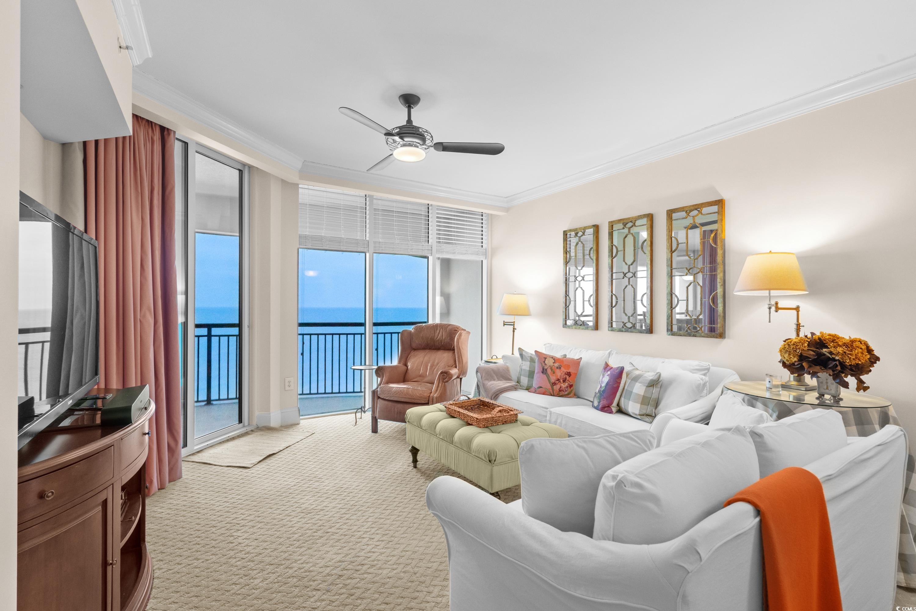 Welcome to Unit 1406 at the illustrious Mar Vista Grande — an OCEANFRONT PENTHOUSE where refined luxury meets the ultimate coastal lifestyle. This exceptional 3-bedroom, 3-bath sanctuary offers soaring high ceilings, elegant crown moulding, and classic wainscoting, creating an atmosphere of timeless sophistication above the Atlantic. Wake each morning in your oceanfront primary suite as sunlight pours through expansive windows, illuminating breathtaking, unobstructed views of the shoreline. The open-concept living area flows effortlessly, enhanced by plush Stainmaster carpet, designer furnishings with slipcovered sofas, custom window treatments, and stunning Restoration Hardware ceiling fans that elevate the coastal aesthetic. The beautifully appointed kitchen features sleek stainless steel appliances and opens seamlessly into the main living space—perfect for entertaining or relaxed beachside living. Just beyond, the expansive oceanfront balcony invites morning coffee at sunrise and sunset toasts with the soothing soundtrack of the waves. Designed with entertaining in mind, the sophisticated wet bar includes a wine refrigerator and ice maker, creating the perfect setting for hosting guests or enjoying a quiet evening drink. The residence is professionally decorated and offered fully furnished, complete with three newer TVs, making this penthouse truly turnkey. Residents enjoy resort-style amenities including indoor and outdoor pools, a lazy river, and spa facilities—all within the serene ambiance of this premier Ocean Drive address in North Myrtle Beach. Whether you’re seeking a primary residence, an upscale second home, or a vacation rental, this penthouse delivers elegance, comfort, and unmatched oceanfront views. Don’t just imagine the lifestyle — embrace it. This is your opportunity to own a spectacular piece of North Myrtle Beach paradise above the Atlantic.