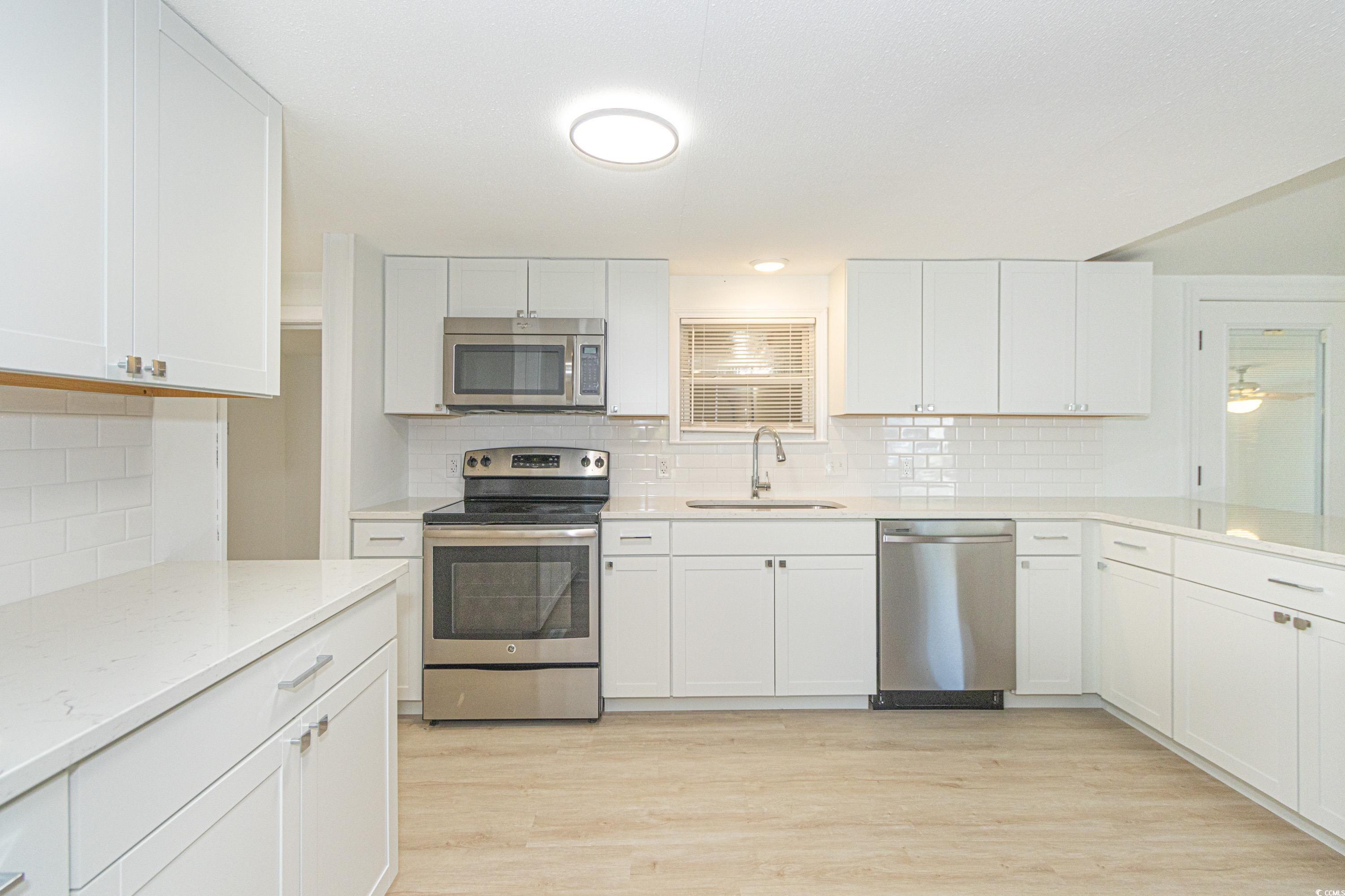 Beautifully Renovated 3BR/2BA Home in Prime Myrtle Beach Location! Welcome to this updated 3-bedroom, 2-bathroom home, nestled at the end of a quiet cul-de-sac in the sought-after Inland Reef community—where there’s no HOA and you're just 10 minutes from Market Common and close to all Myrtle Beach has to offer! Step inside to discover a completely renovated interior, featuring luxury vinyl plank flooring throughout, Quartz countertops, brand-new cabinetry, and stainless steel appliances in the gorgeous kitchen. Thoughtfully updated lighting fixtures and modernized bathrooms bring a fresh, contemporary feel to every room. The home offers desirable layout with a generous living room that flows into the dining area and kitchen, plus a large bonus room—perfect as a second living space, media room, or play area. You'll also love the separate laundry room and the flex space ideal for an oversized pantry, small office, or craft/playroom. Key updates include a new HVAC system (2021) and a roof that's approximately 7 years old—giving you peace of mind and a move-in-ready experience. Enjoy the fully fenced backyard, ideal for entertaining, pets, or relaxing in privacy. Homes like this in this price range are hard to find—don’t miss your chance to own this turnkey gem!
