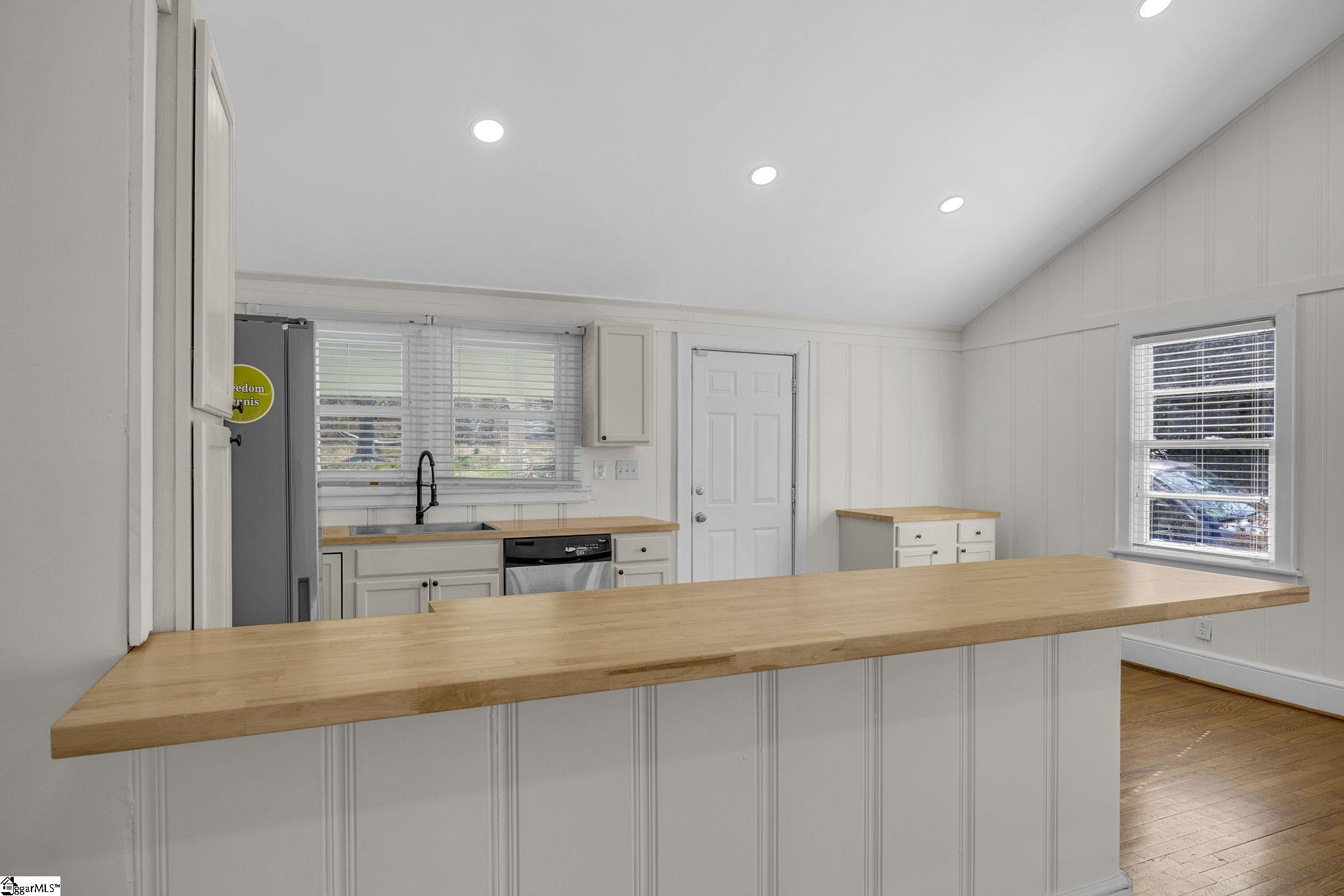 Charming 2 bedroom, 2 bath bungalow in Greer, SC offering character, comfort, and a convenient Upstate location. This inviting home features an open floor plan with cathedral ceilings, creating a bright and spacious living area ideal for everyday living and entertaining. Beautiful painted tongue-and-groove paneling throughout the home adds warmth and classic bungalow charm, while hardwood floors enhance the main living spaces. The large primary suite provides a private retreat with its own ensuite bath and conveniently located washer and dryer, making daily living easy and efficient. The updated hall bathroom offers modern touches and functionality for guests or additional household members. Step outside to enjoy a large covered deck overlooking the spacious backyard, perfect for relaxing or hosting gatherings. The outdoor space features a firepit area and an additional outdoor building, providing extra storage or workspace possibilities. Located just minutes from downtown Greer, this home offers quick access to local dining, shopping, and community events while being conveniently situated between Greenville and Spartanburg, making commuting simple. A great opportunity to enjoy bungalow-style living in the growing Greer area with comfort, character, and convenience.