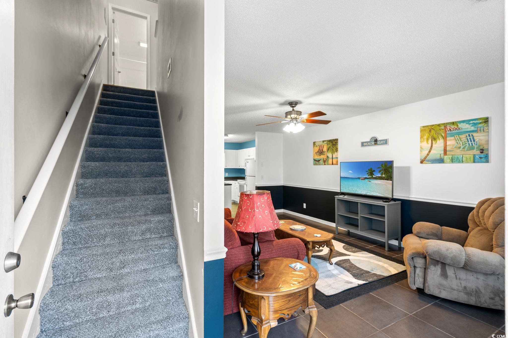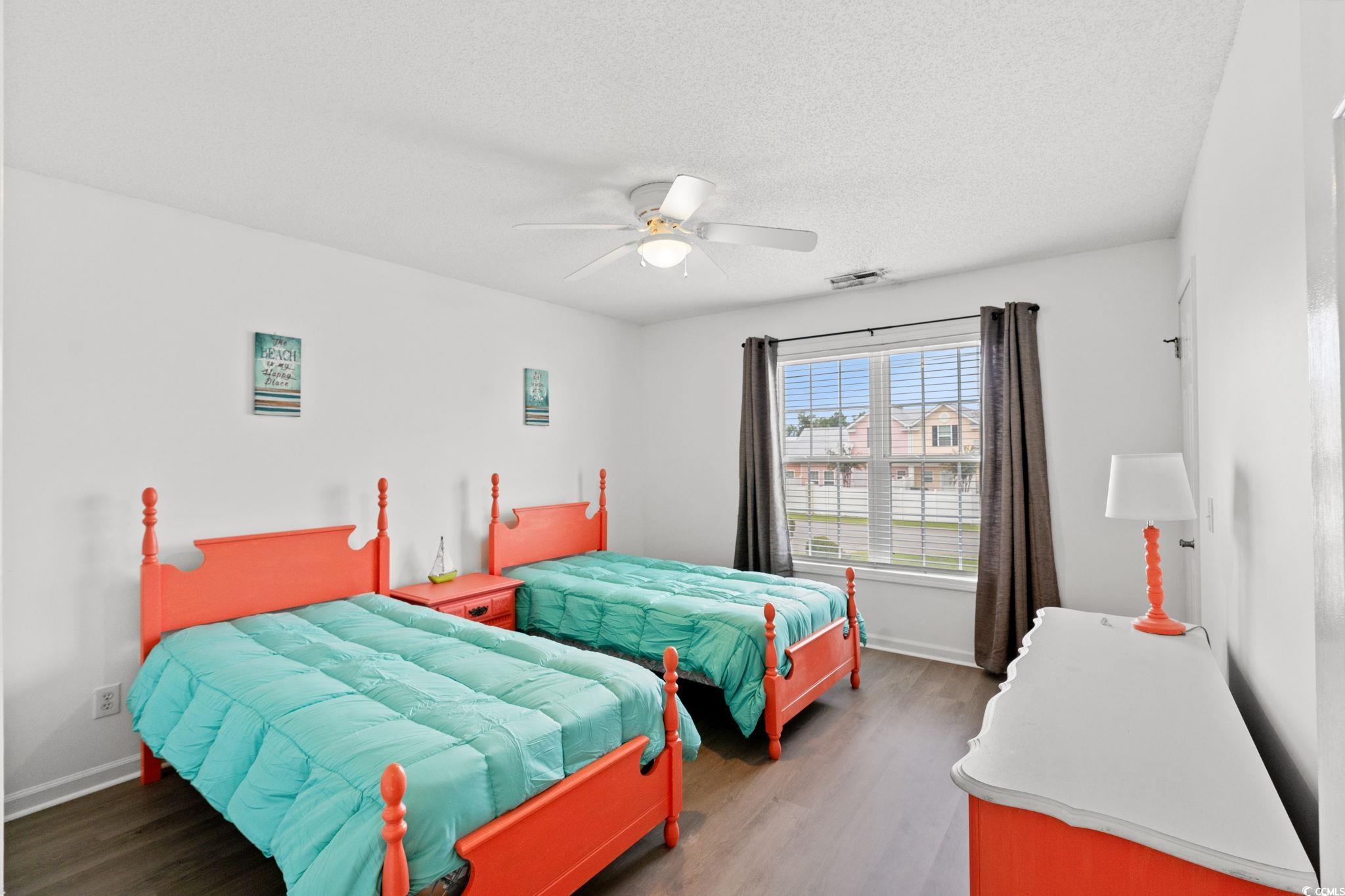 Enjoy privacy, natural light, and easy access to the Ocean in this two-story, end unit condo just half a mile from the beach! This furnished two bedroom, one and a half bath, townhouse-style condo features a private fenced-in patio, private second floor balcony, lots of natural light with large windows throughout, and an open floor plan downstairs. Located east of Hwy 17 business in the Ocean Drive Beach area of North Myrtle Beach, only minutes from Main Street and the best restaurants, shopping, nightlife, and attractions the North Strand area has to offer. Brand new vinyl plank flooring was installed in both bedrooms and new carpeting on the stairs in 2025, and the downstairs is tiled throughout with large, elegant tiles. The community property features a fenced-in back yard, two parking lots, metal roofing, individual unit mailboxes, a private dumpster (no rolling cans out to the road), and only twelve total units in the complex. Condos rarely come up for sale in this complex, do not miss out on this incredible opportunity!